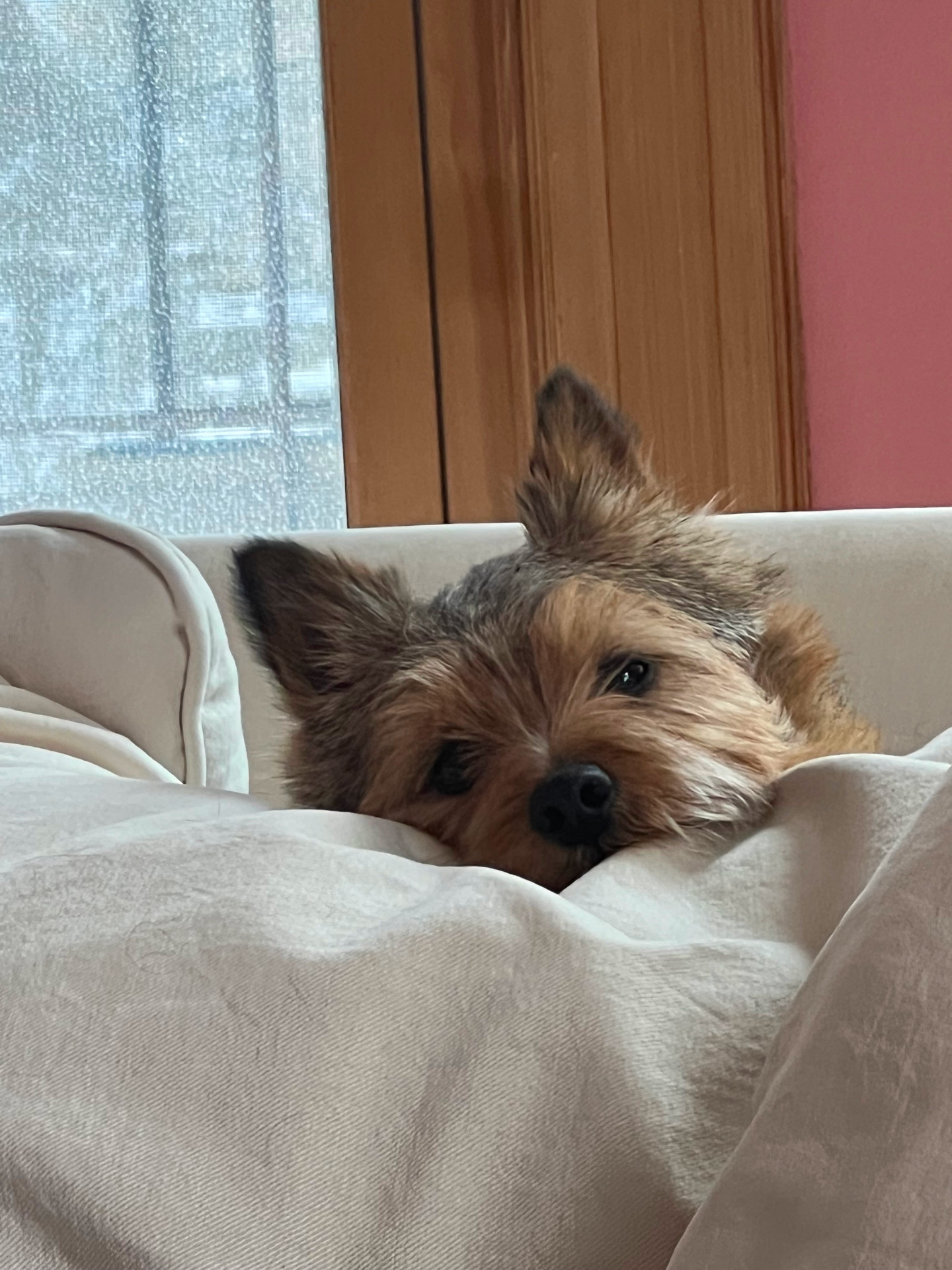 Emily sent me a picture of Wally ("Shaksper Hamnet Barker") enjoying his first snow.