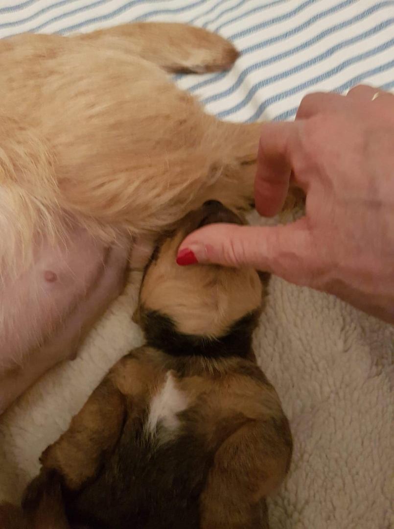 A few Norwich who are "true for red" (i.e., do not carry the black-and-tan allele) also have necklaces.