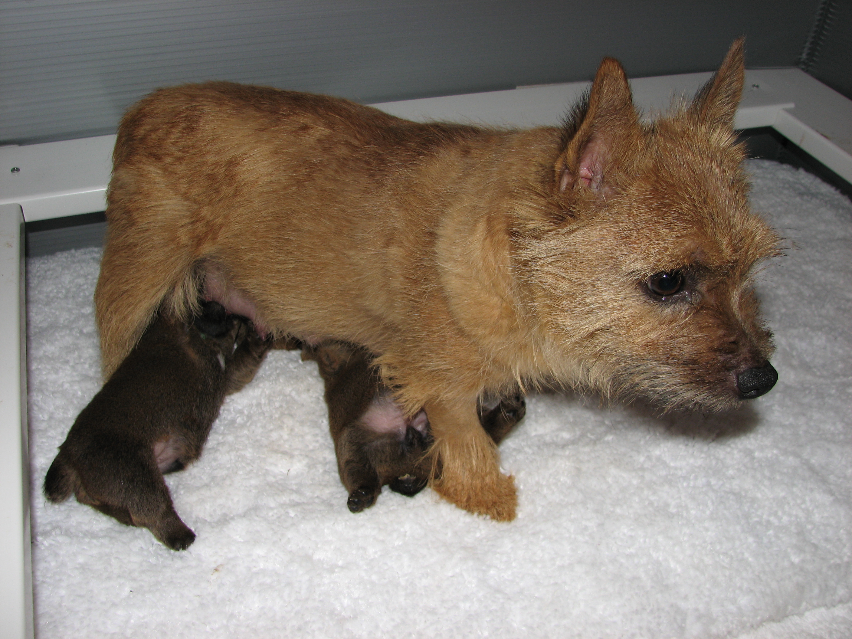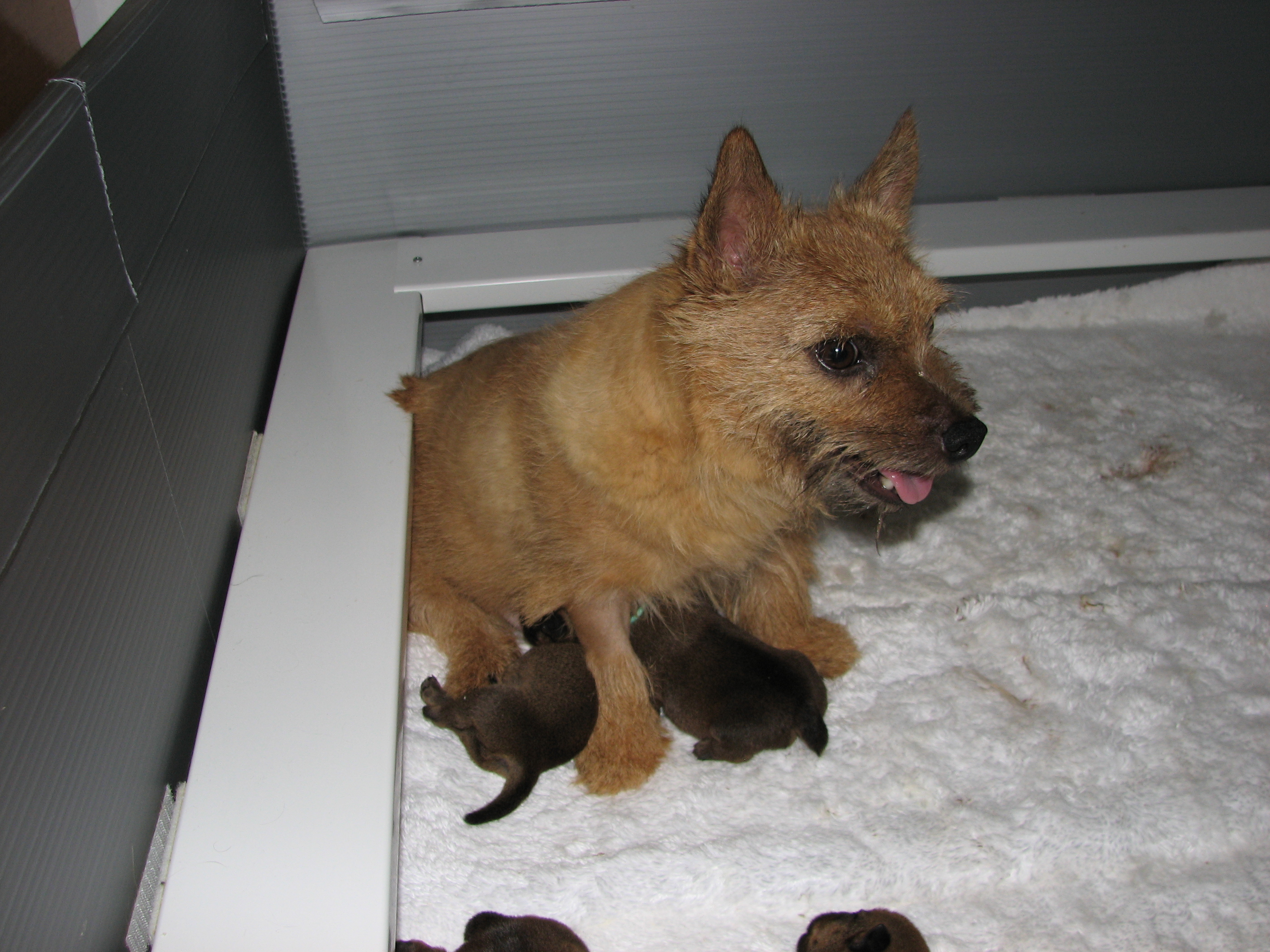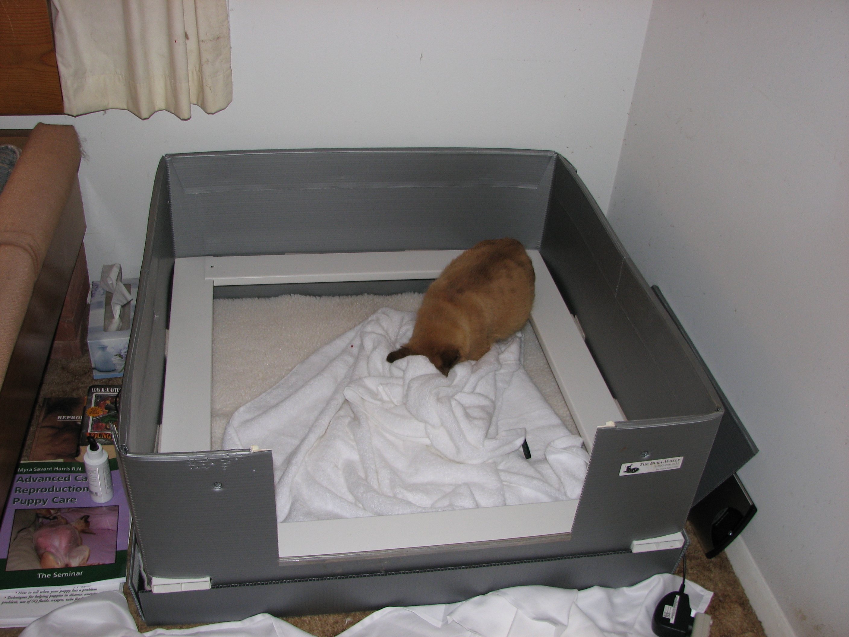 unhappy, and kept trying to jump up the side of the whelping
