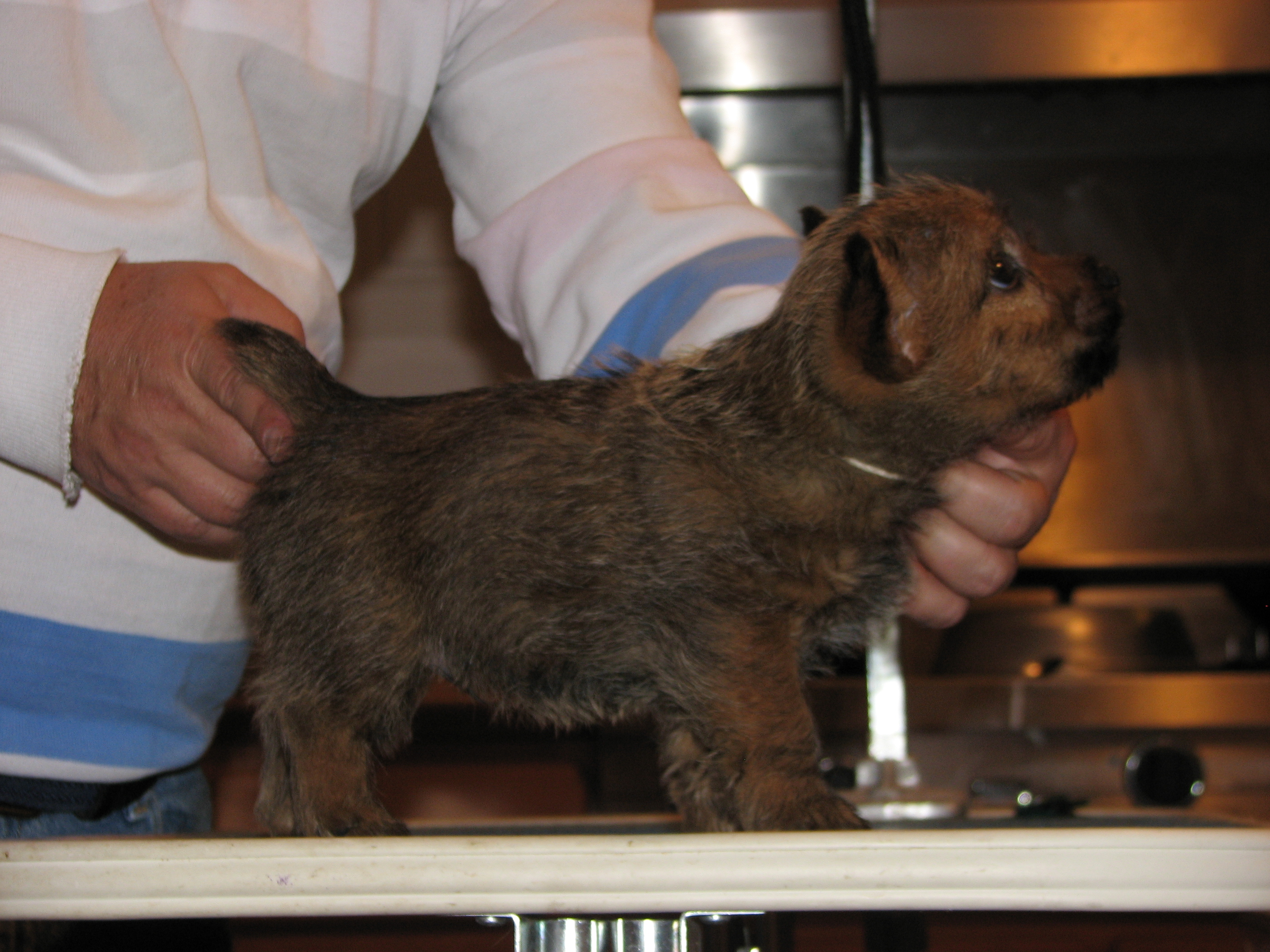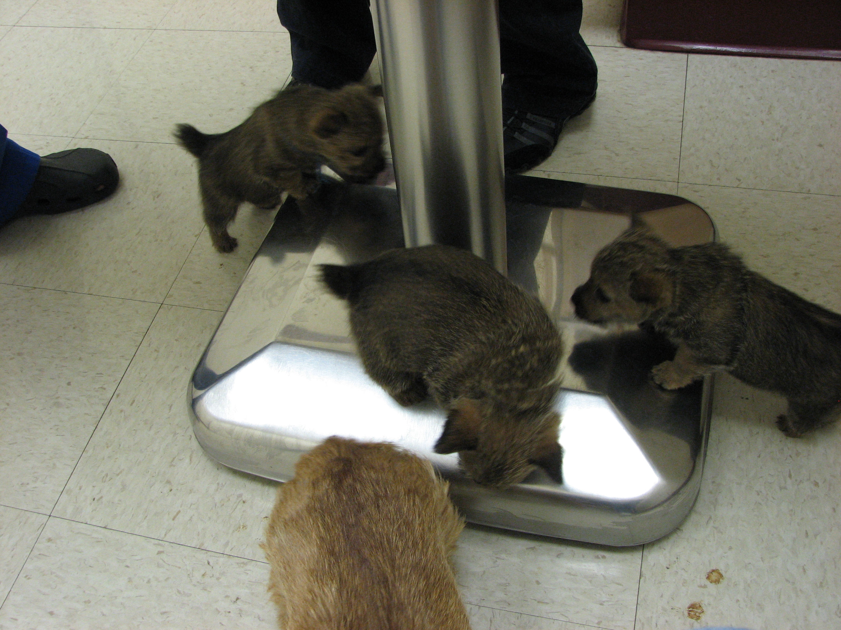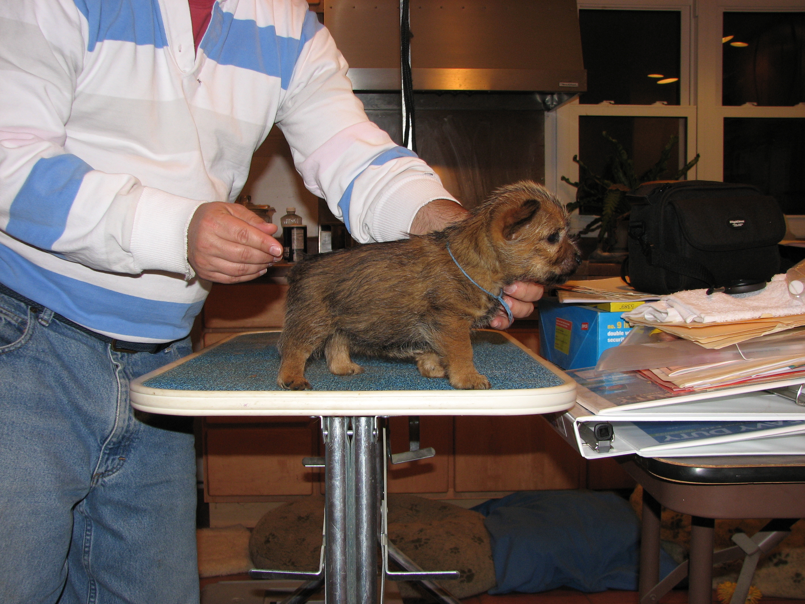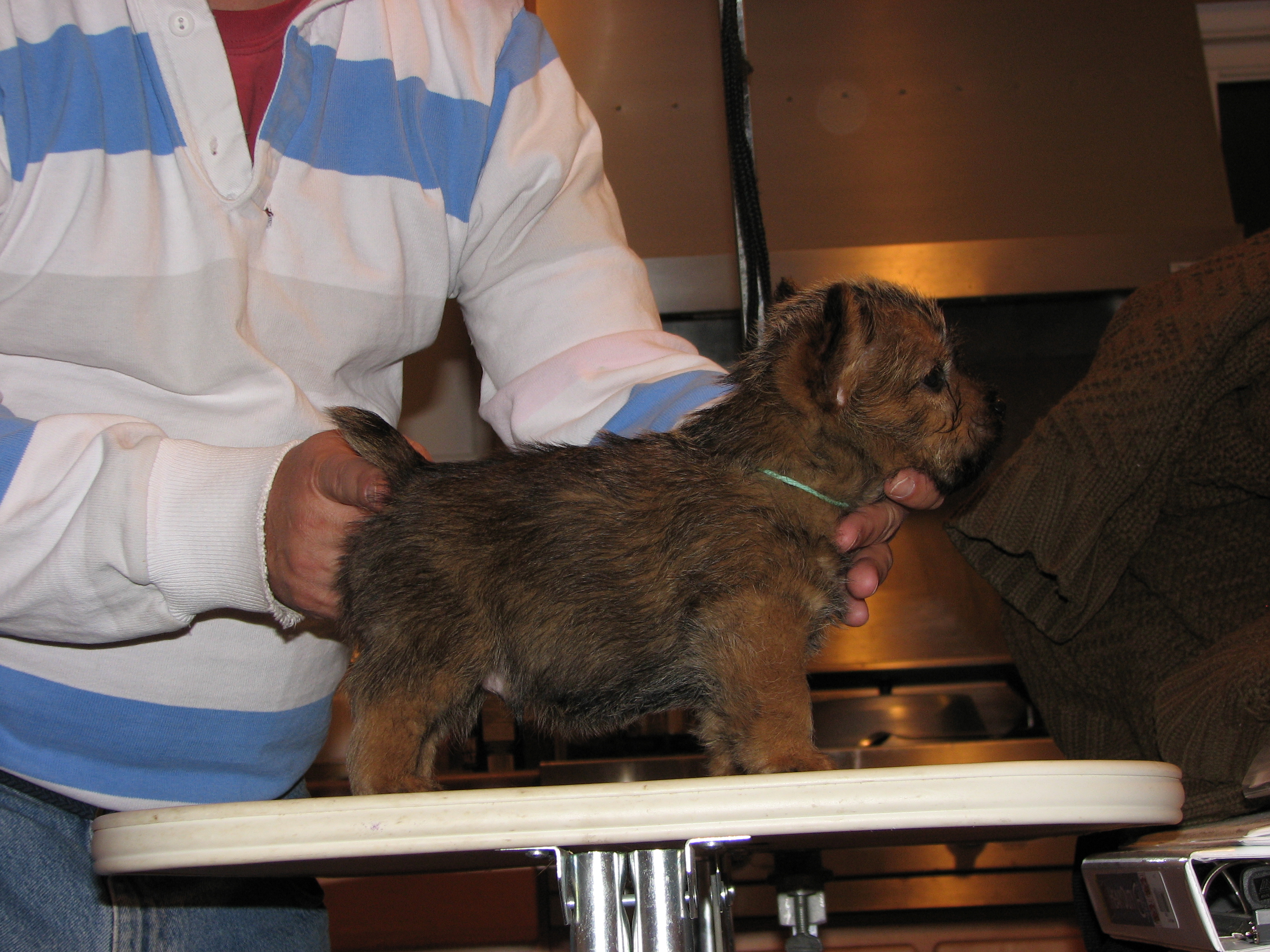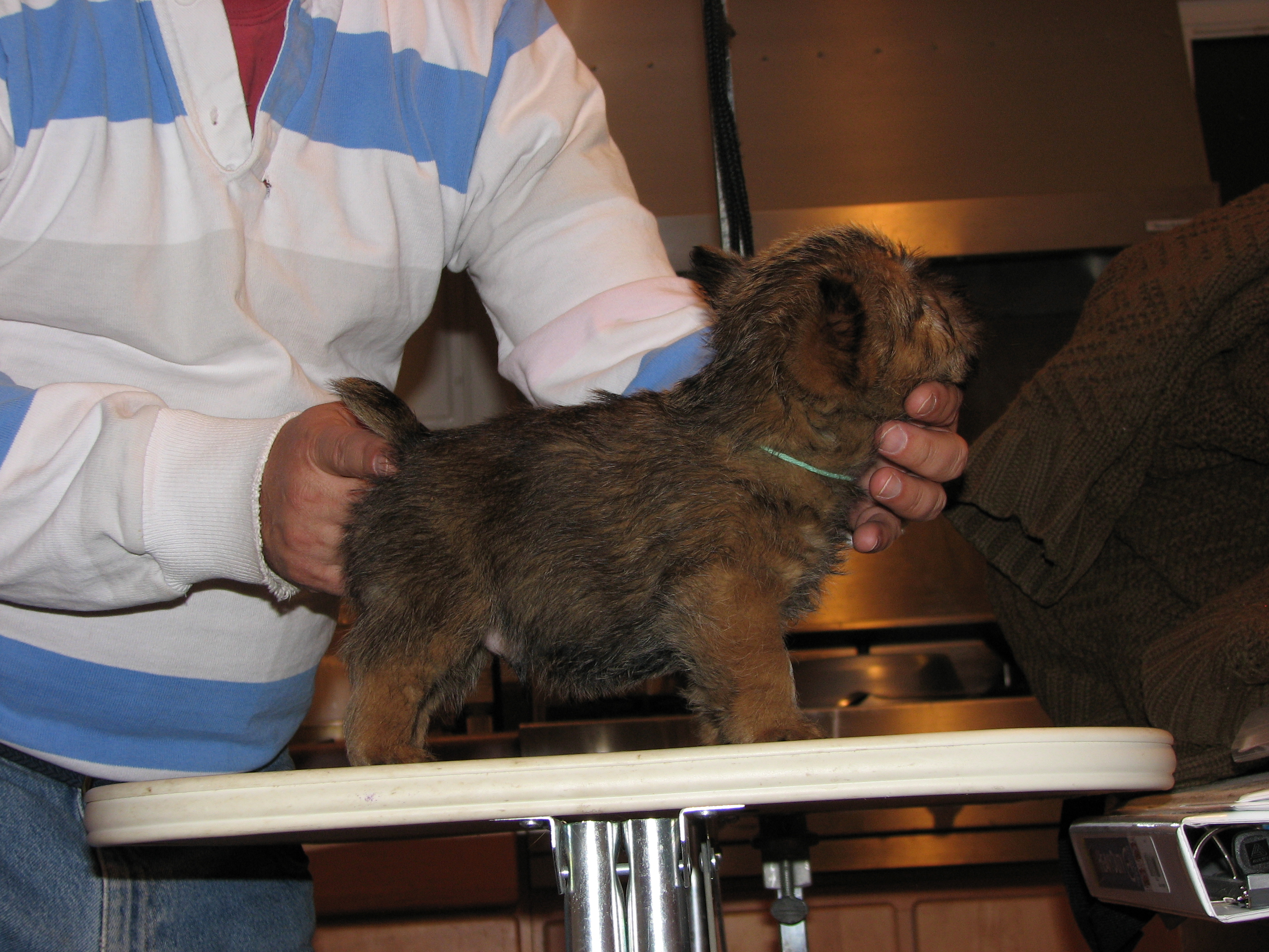 The puppies first visit to the vet. In spite of the hot water