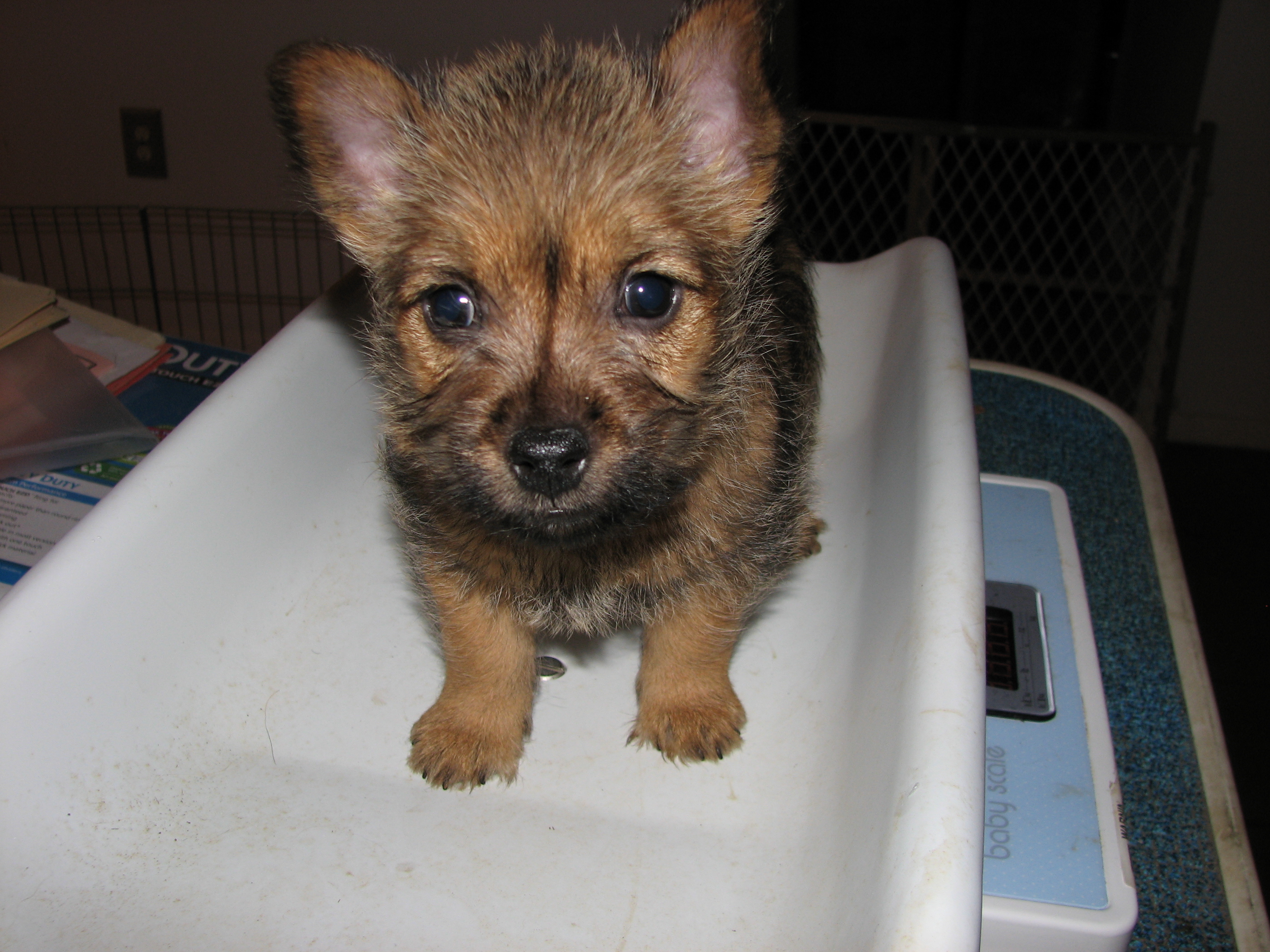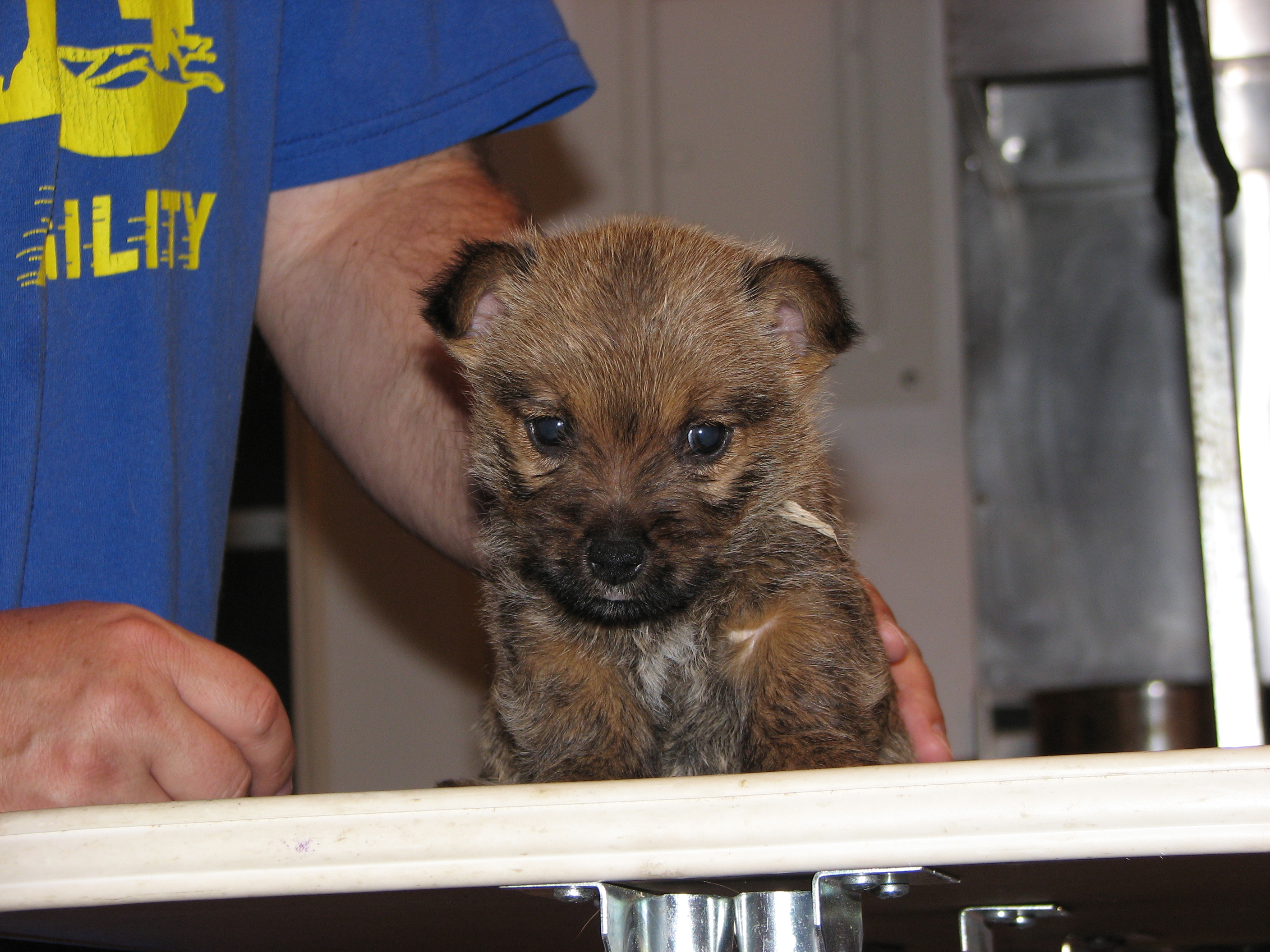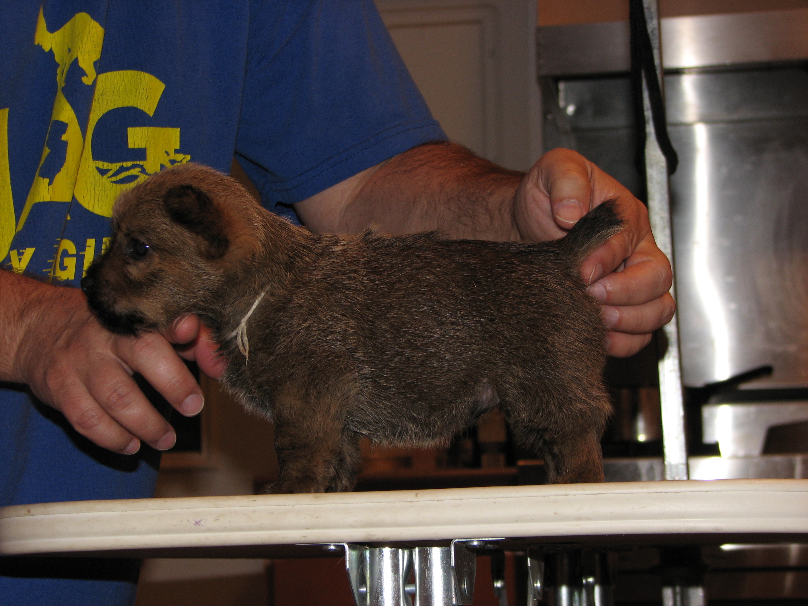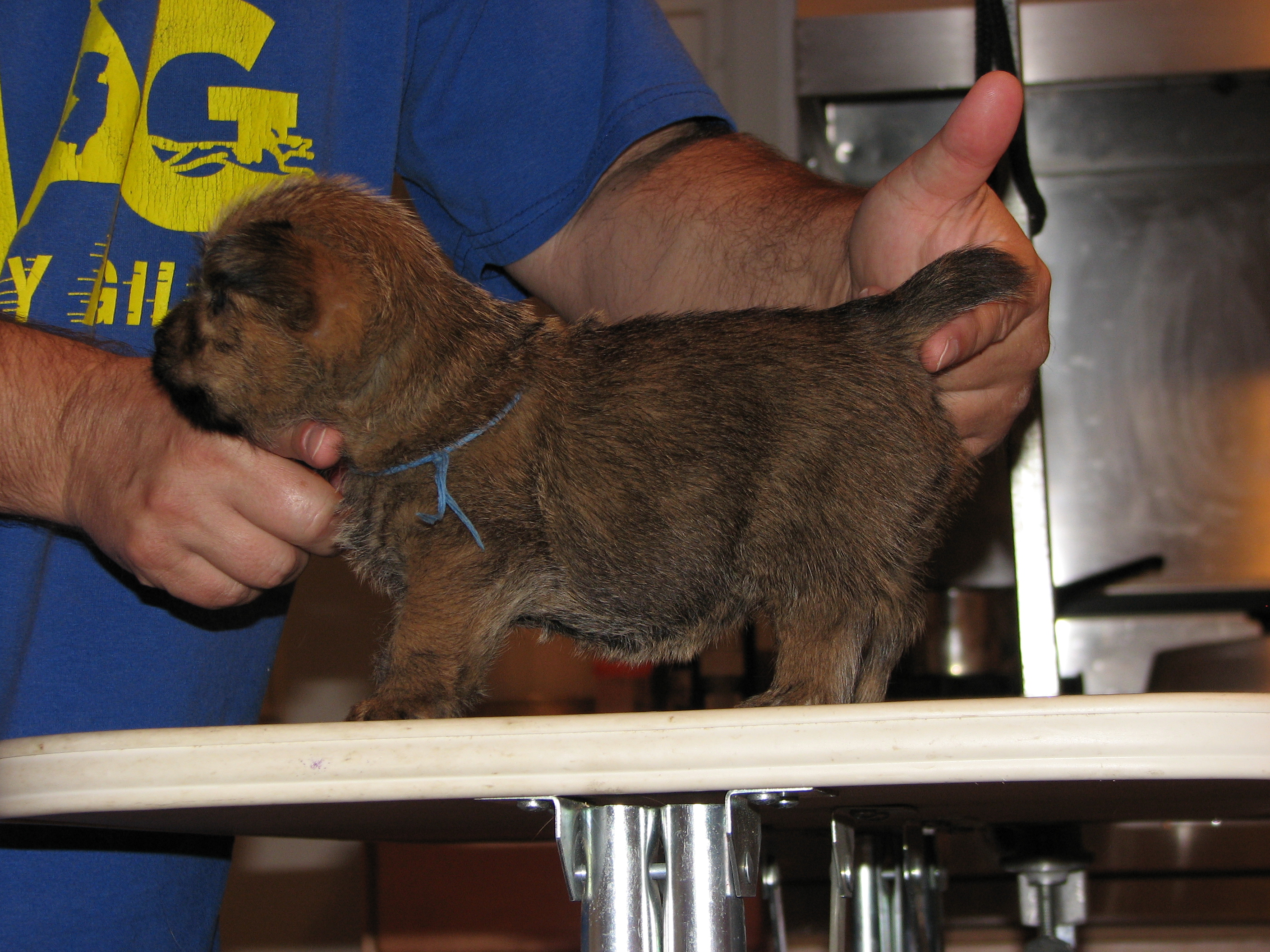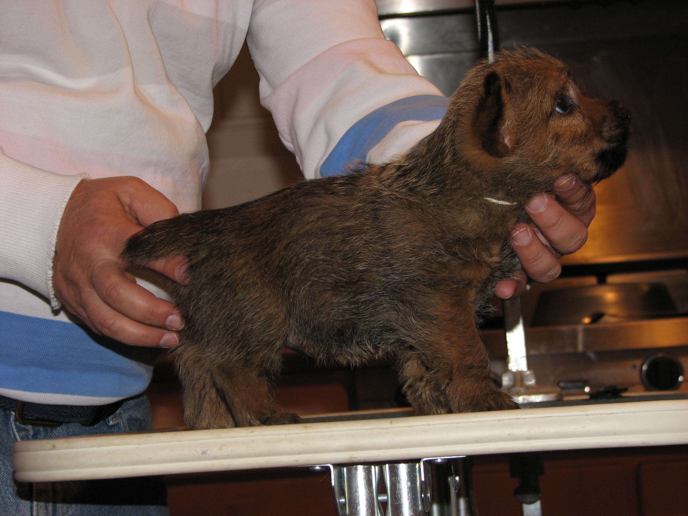 The puppies first visit to the vet. In spite of the hot water