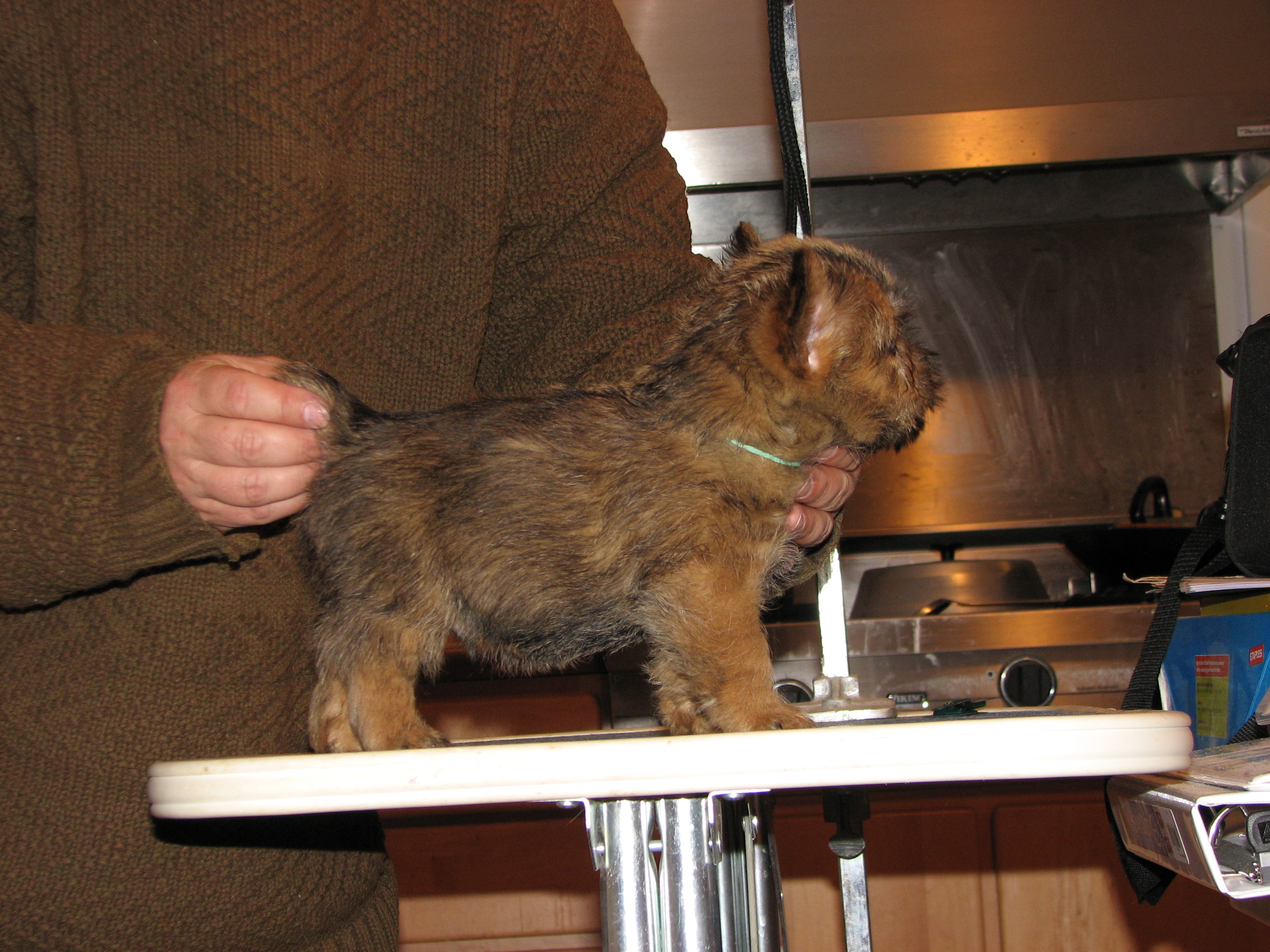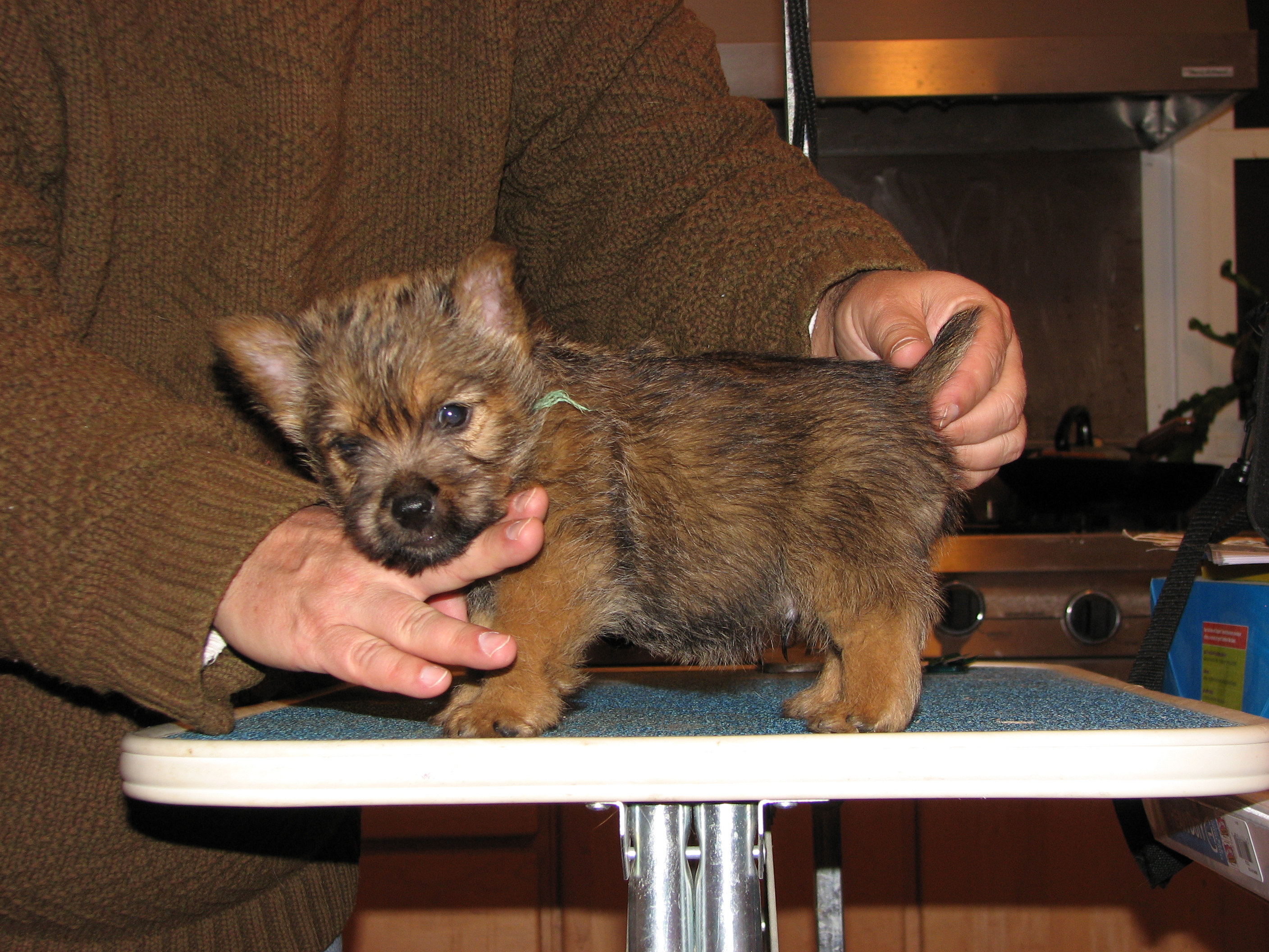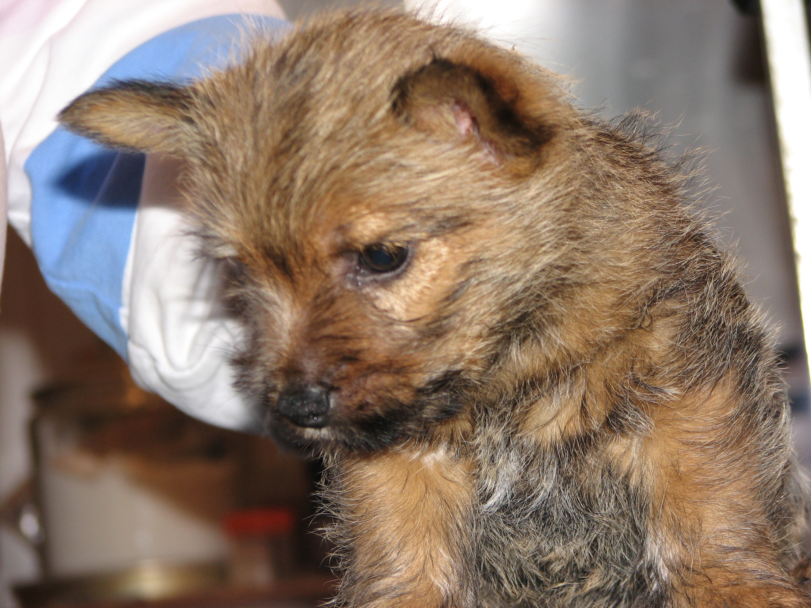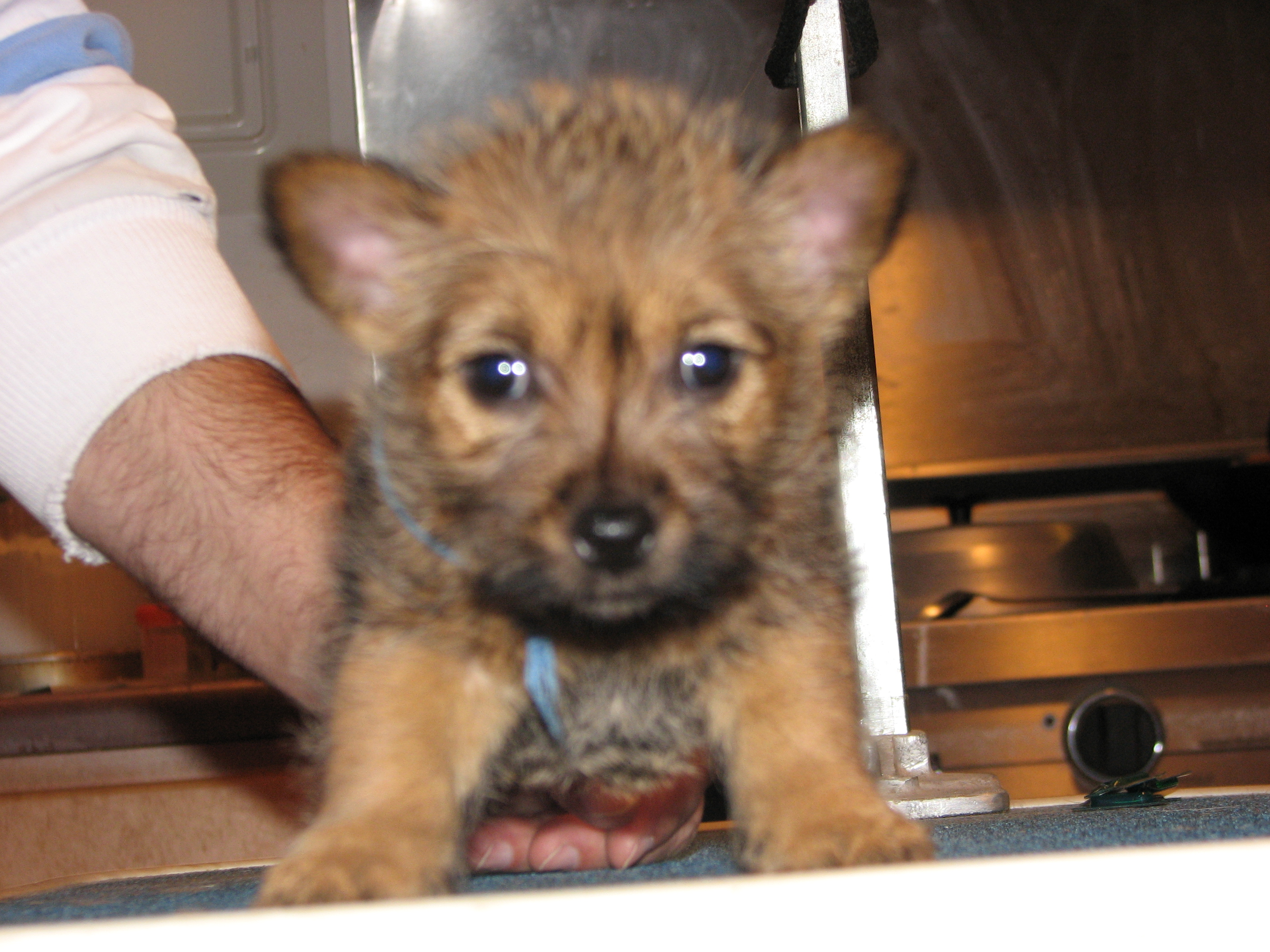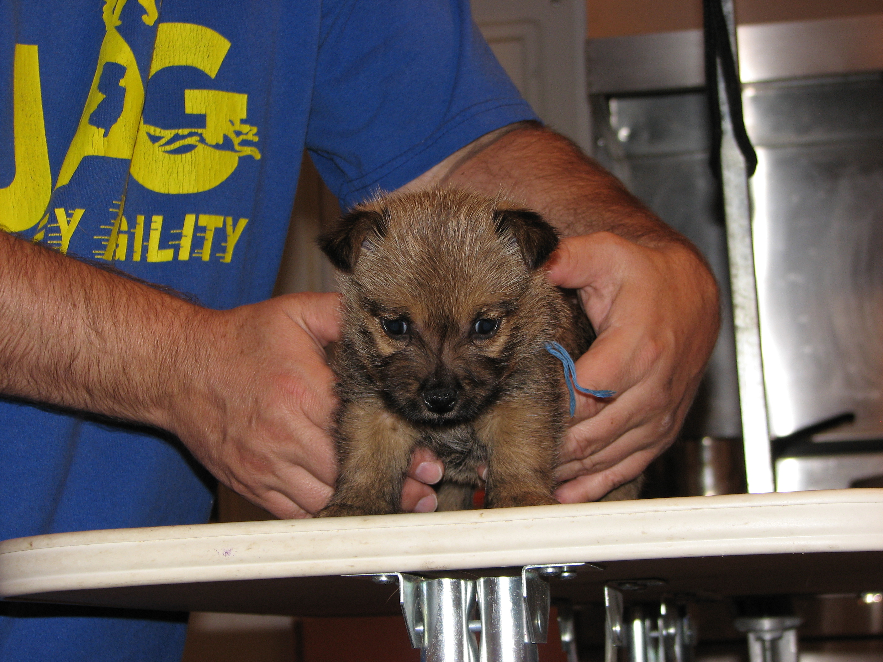 The puppies first visit to the vet. In spite of the hot water