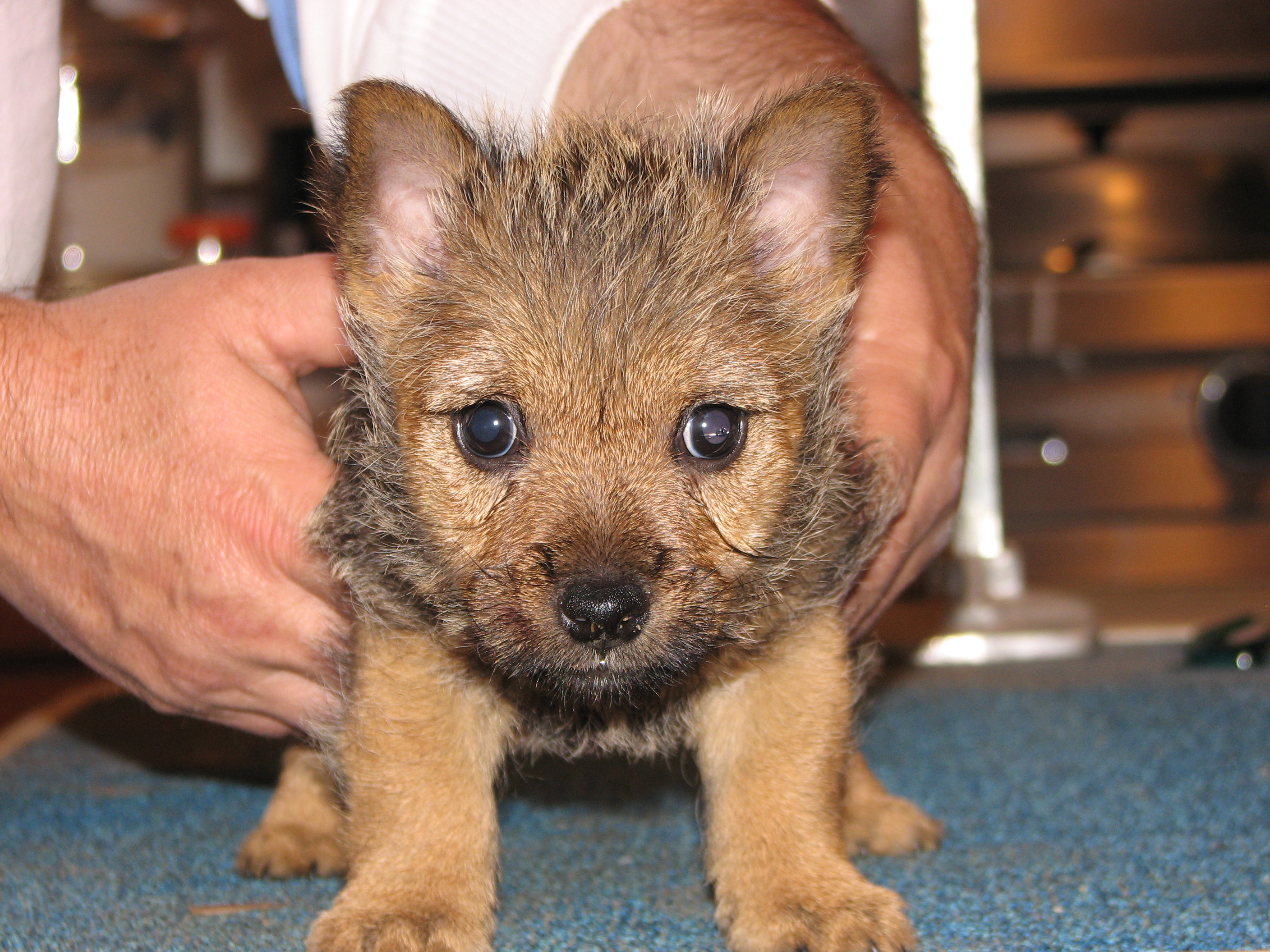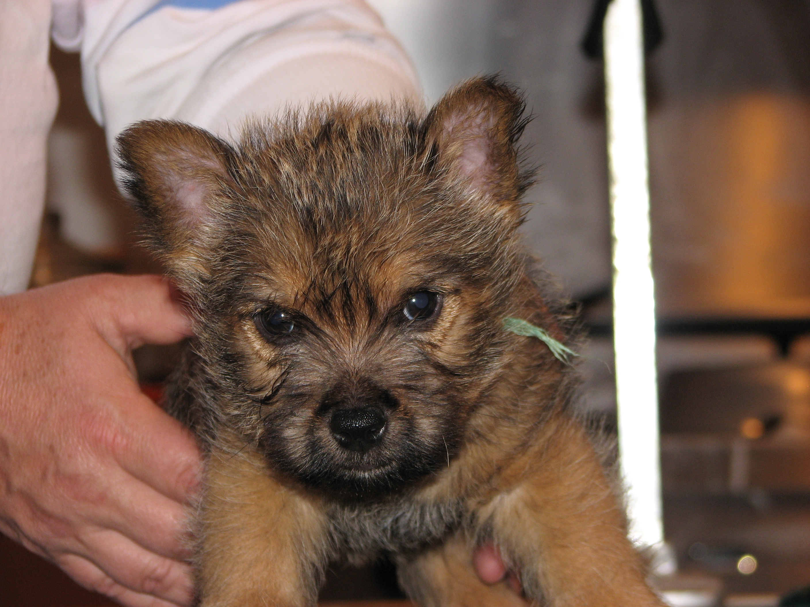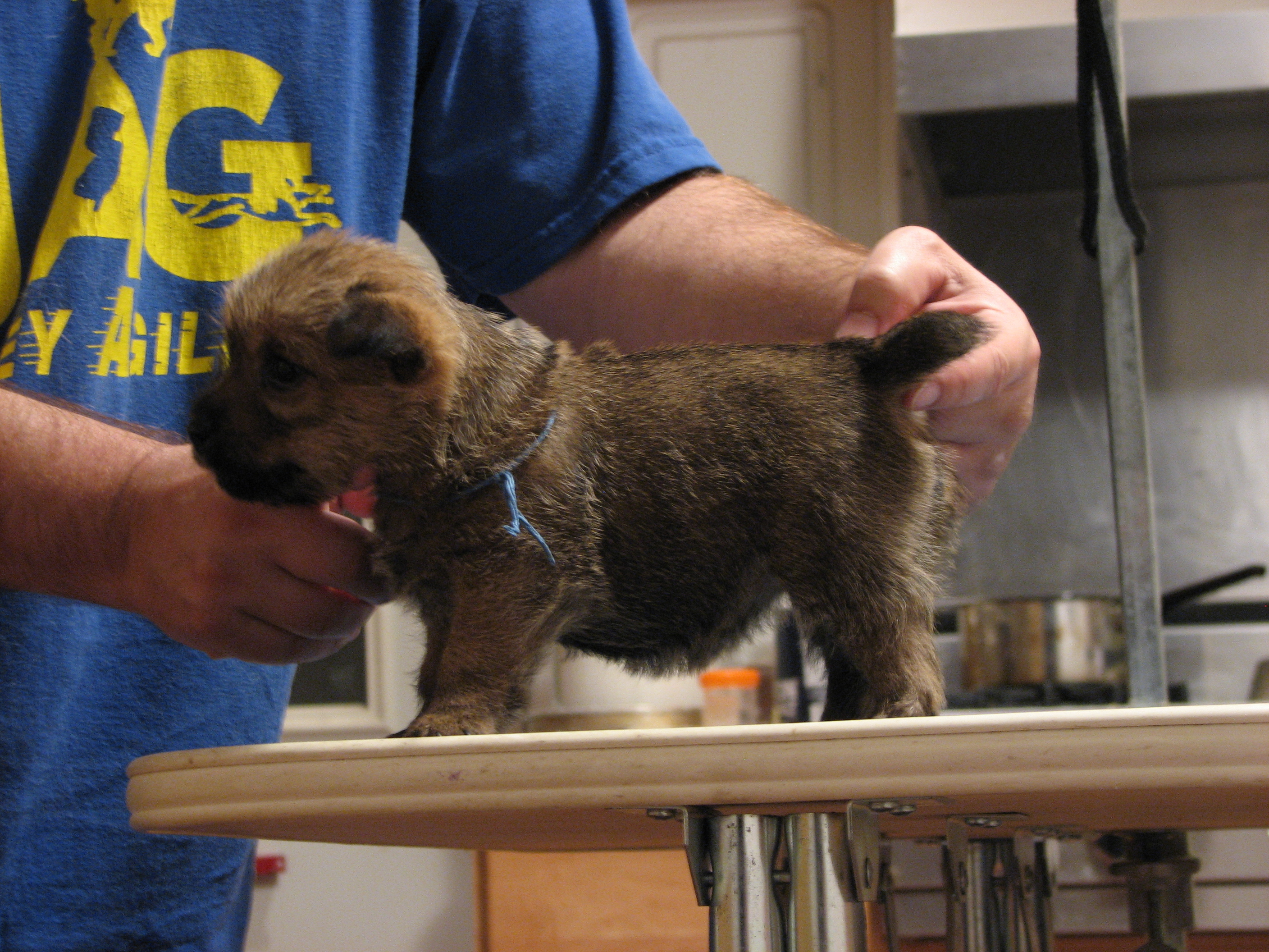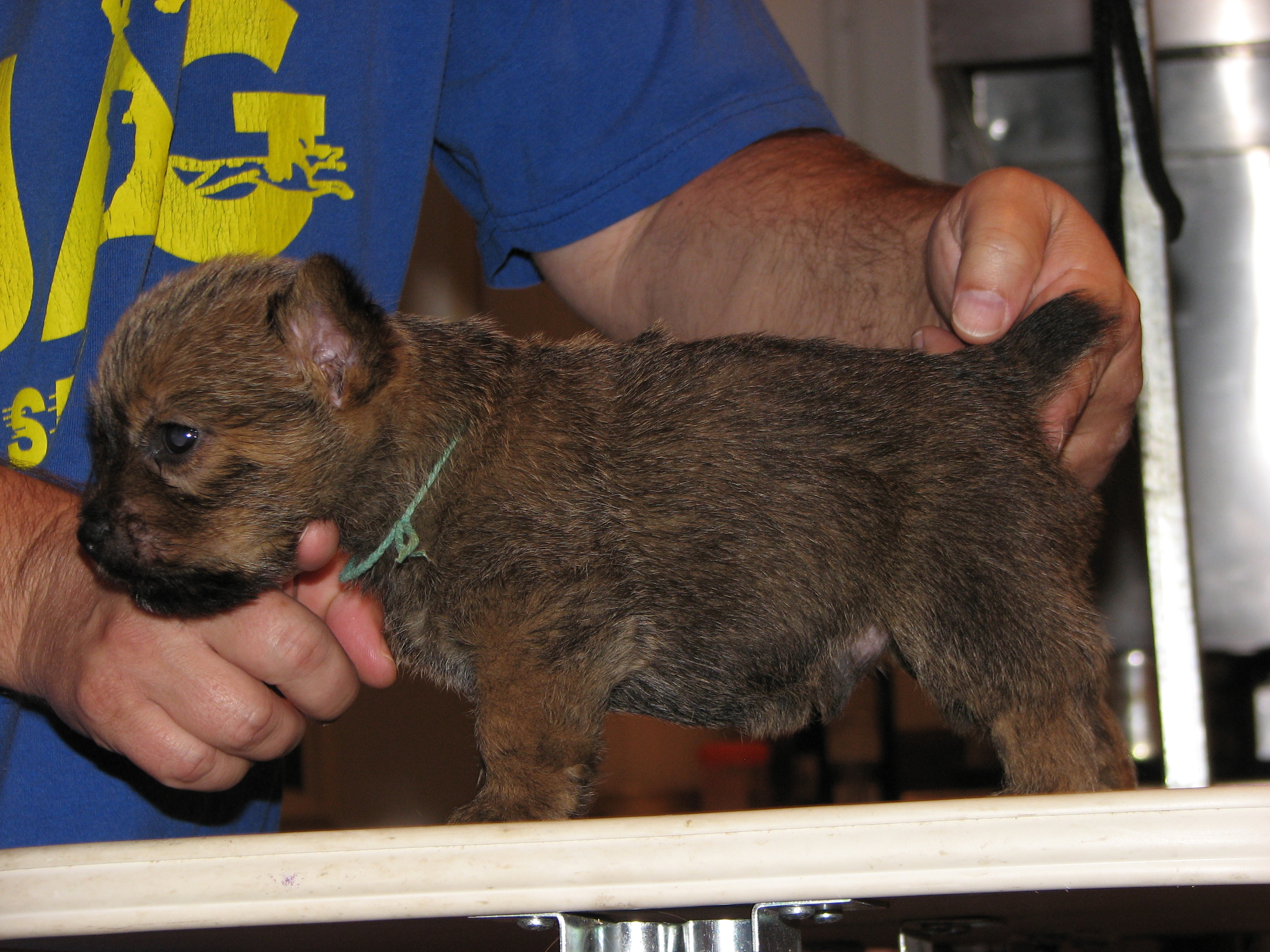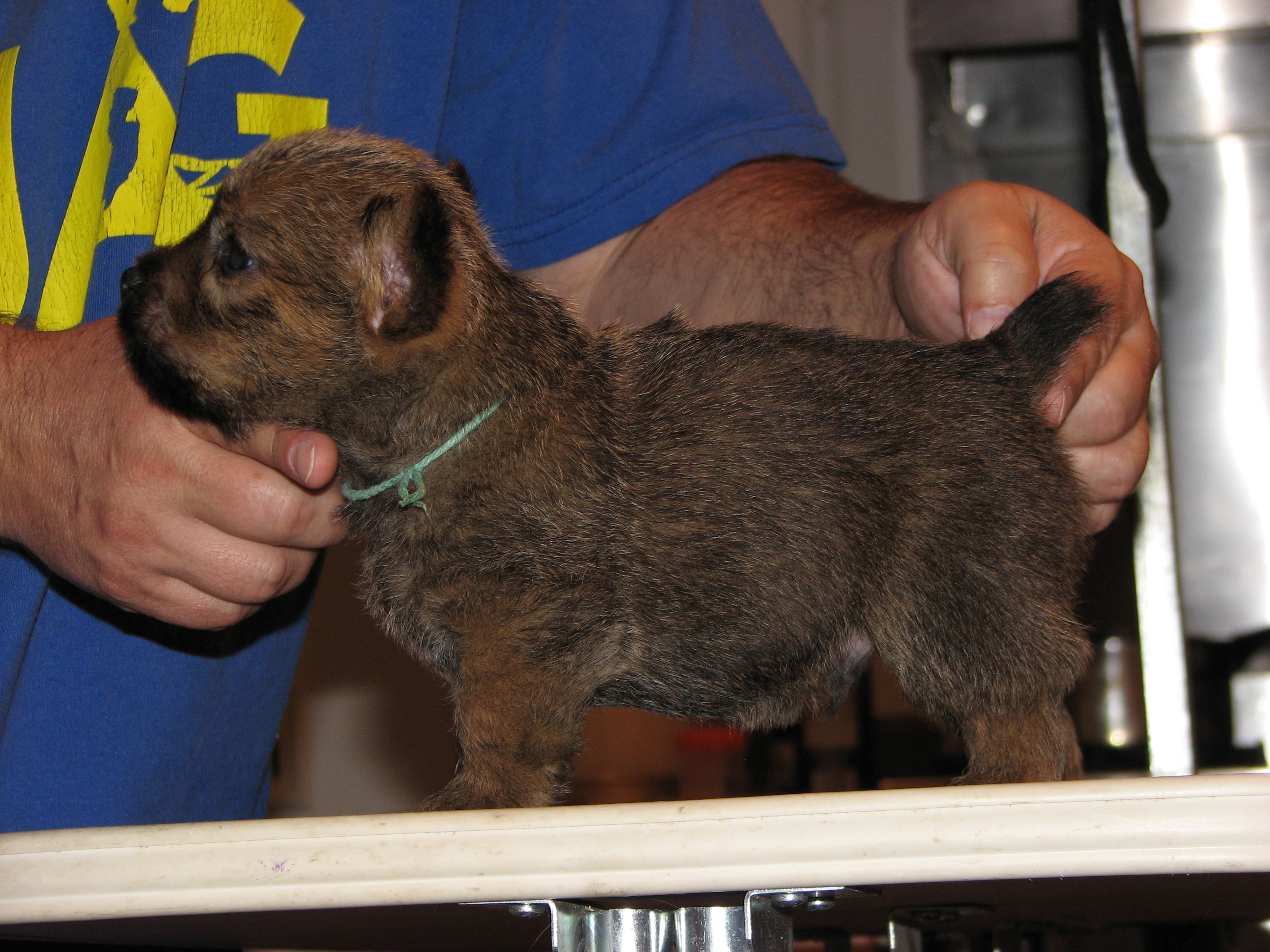 The puppies first visit to the vet. In spite of the hot water