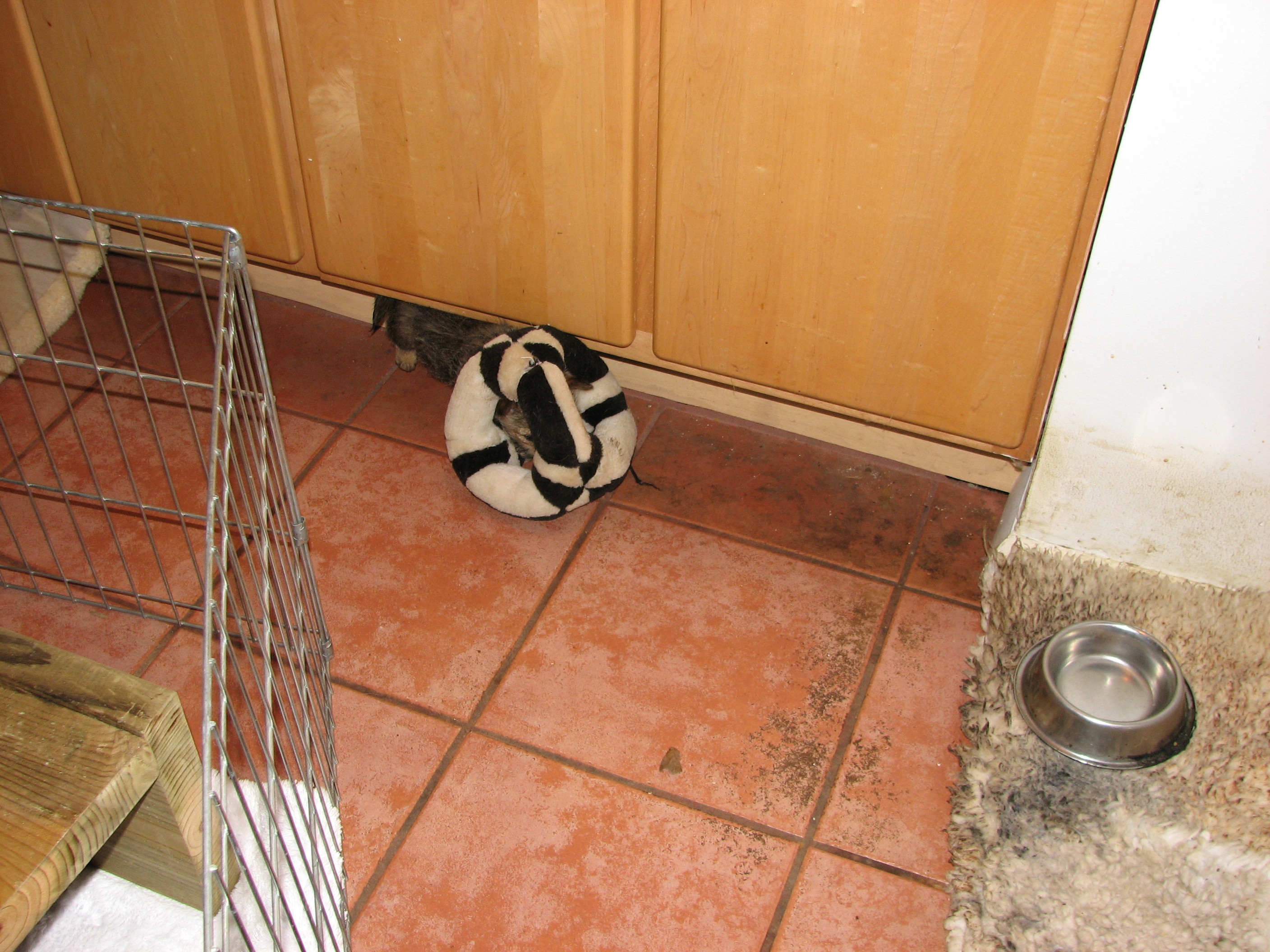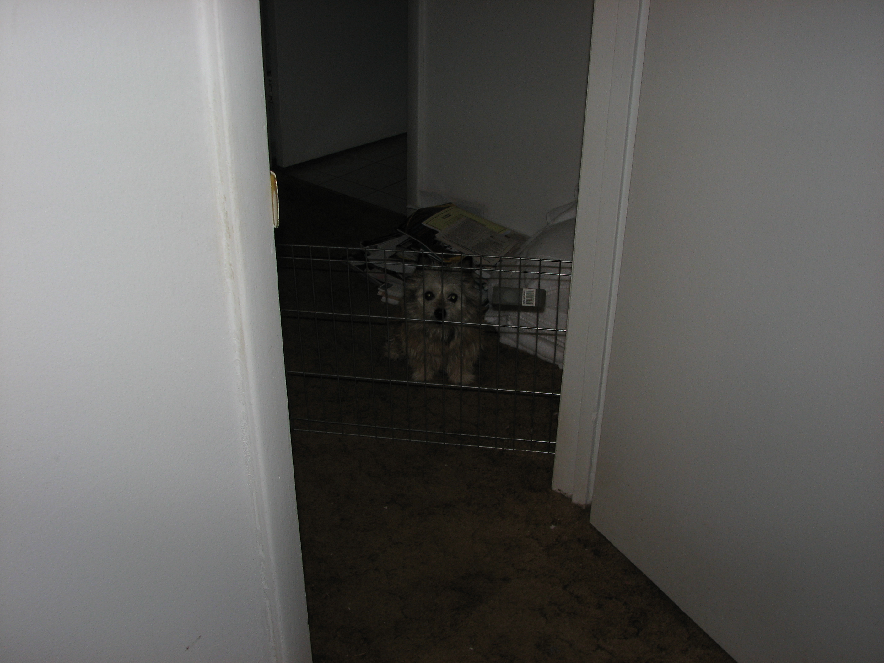 barrier that was keeping puppies inside but letting Mom
