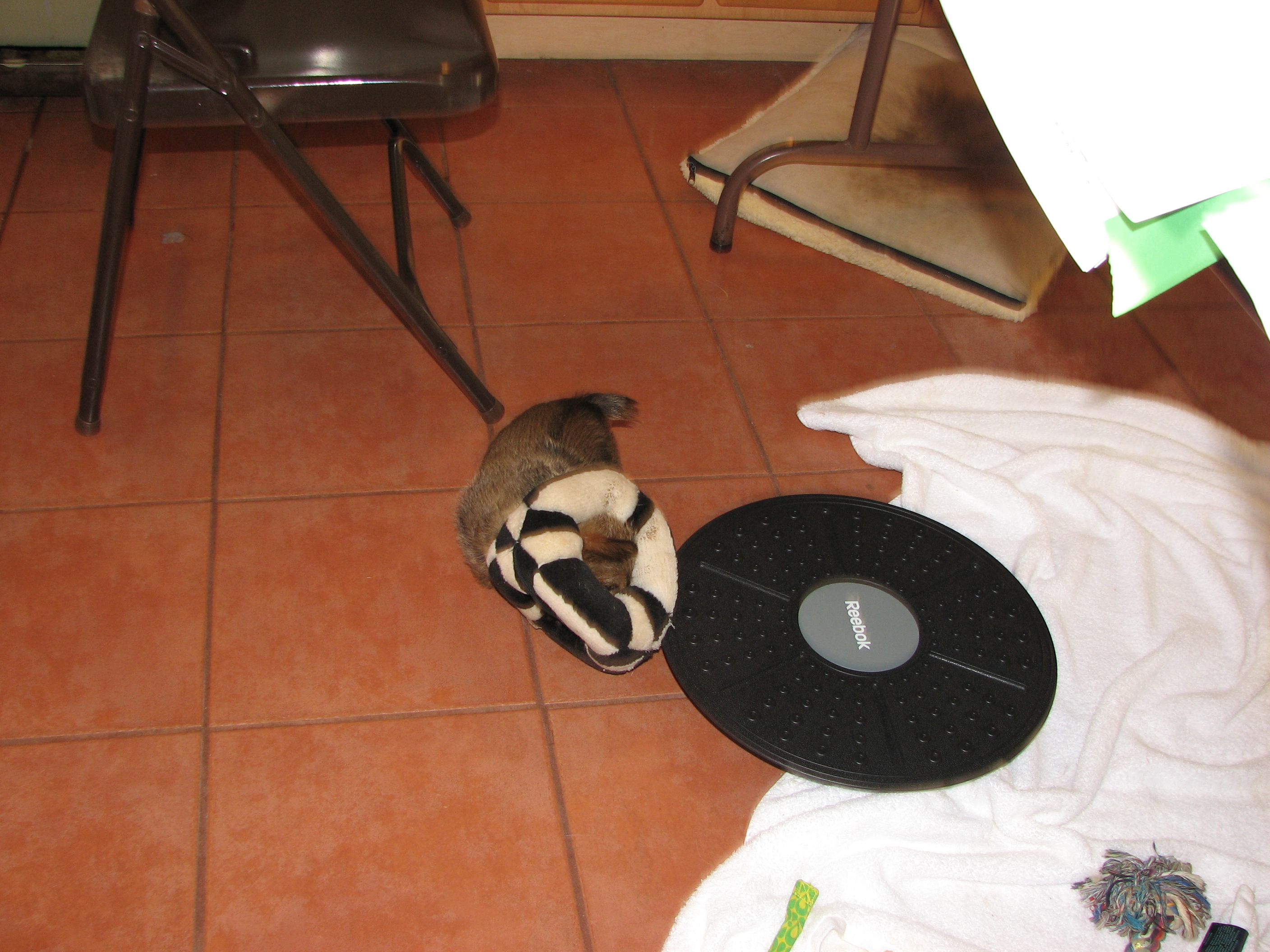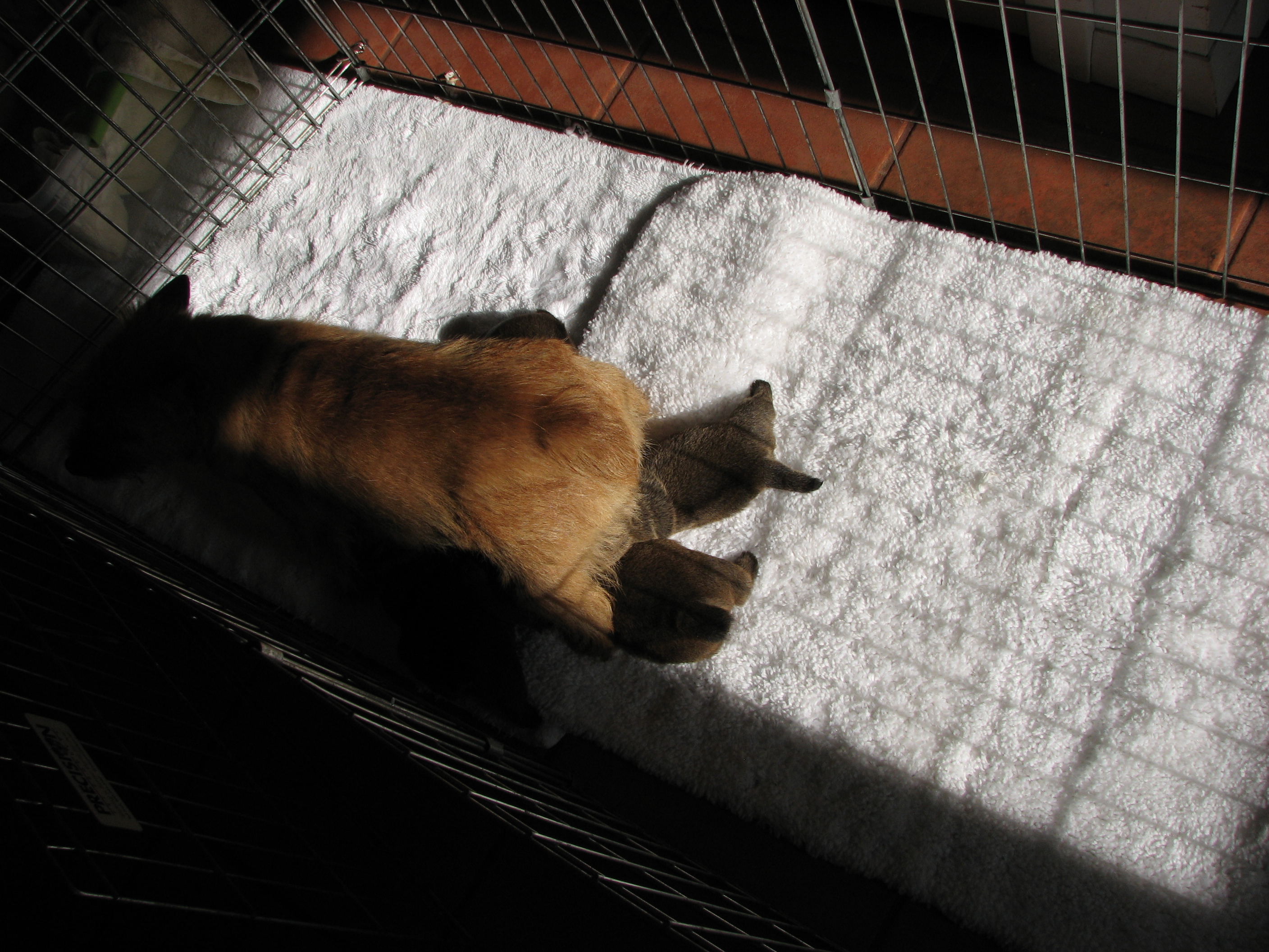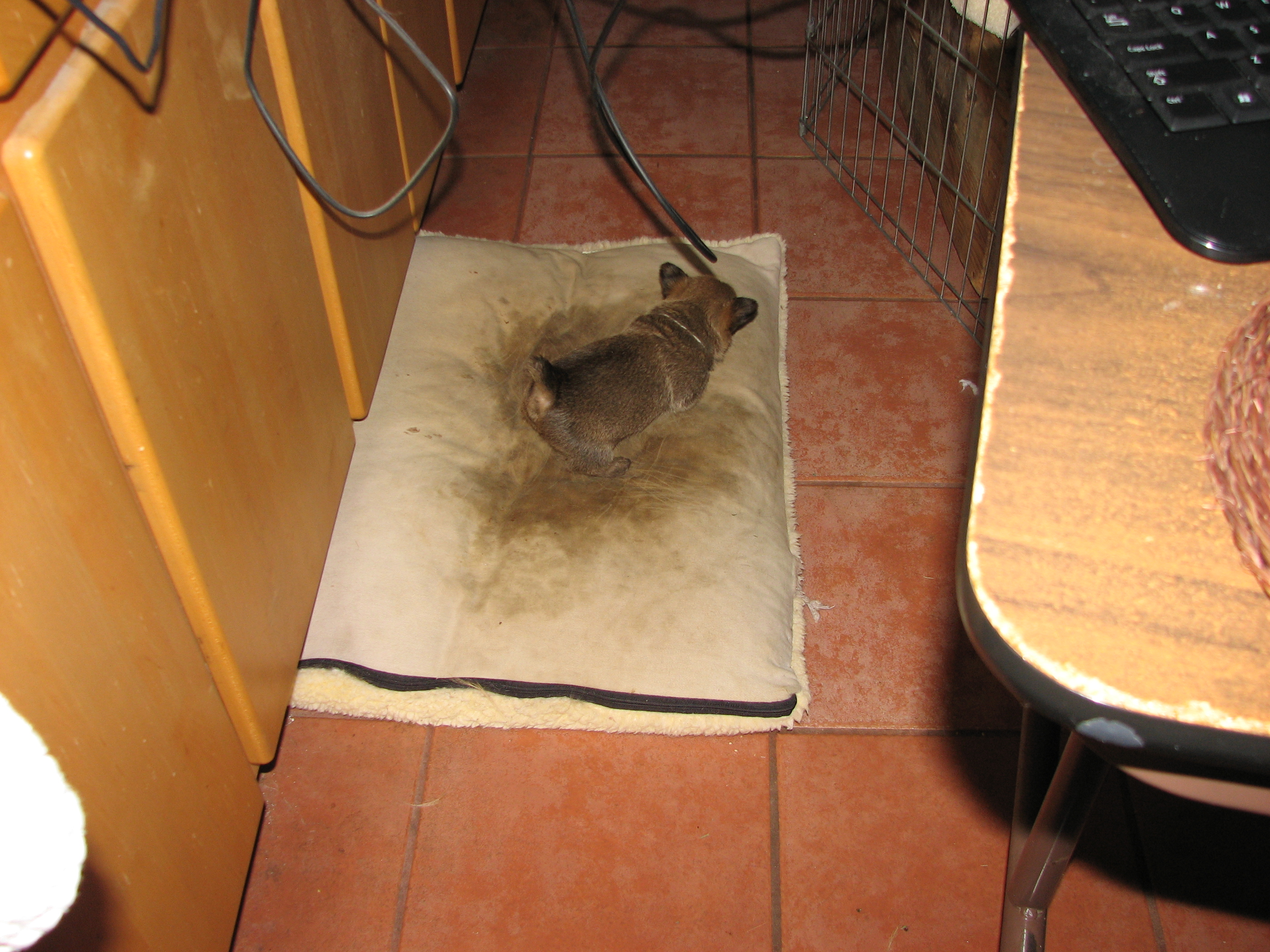 again Blue and White were out, on a dog bed in the kitchen.