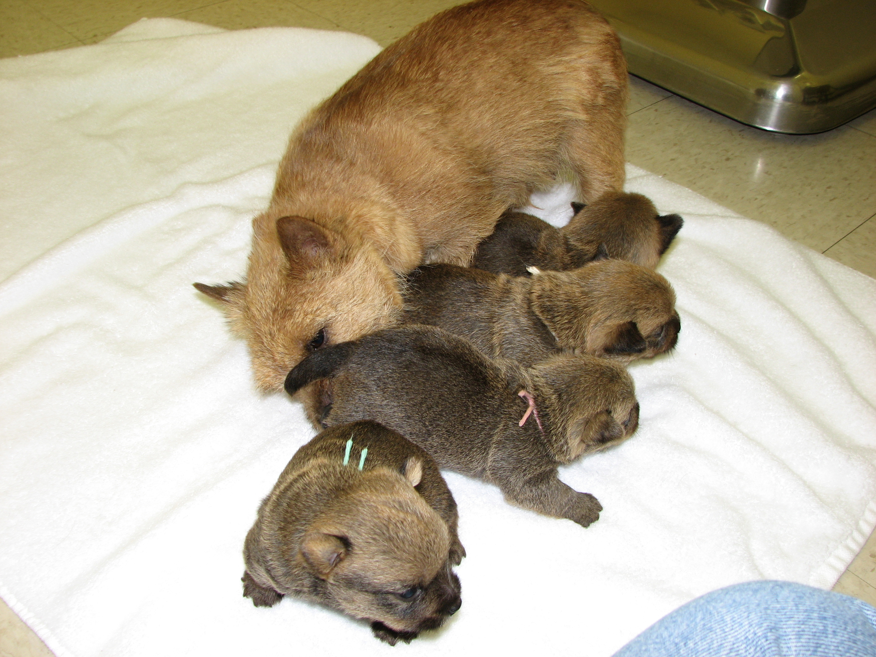 her puppies.