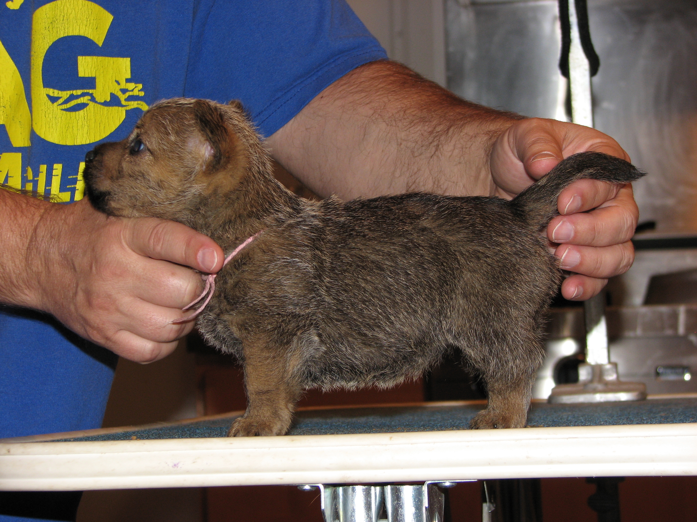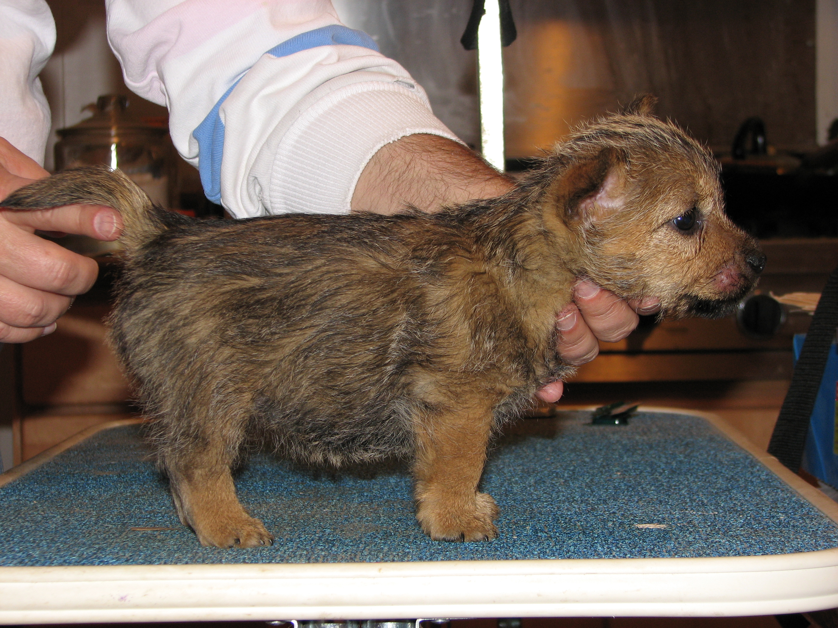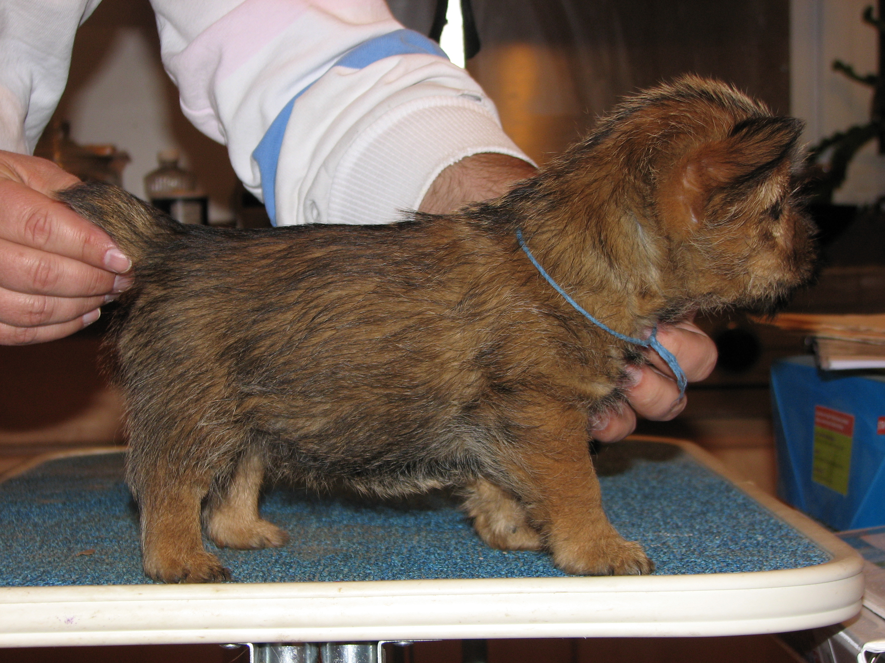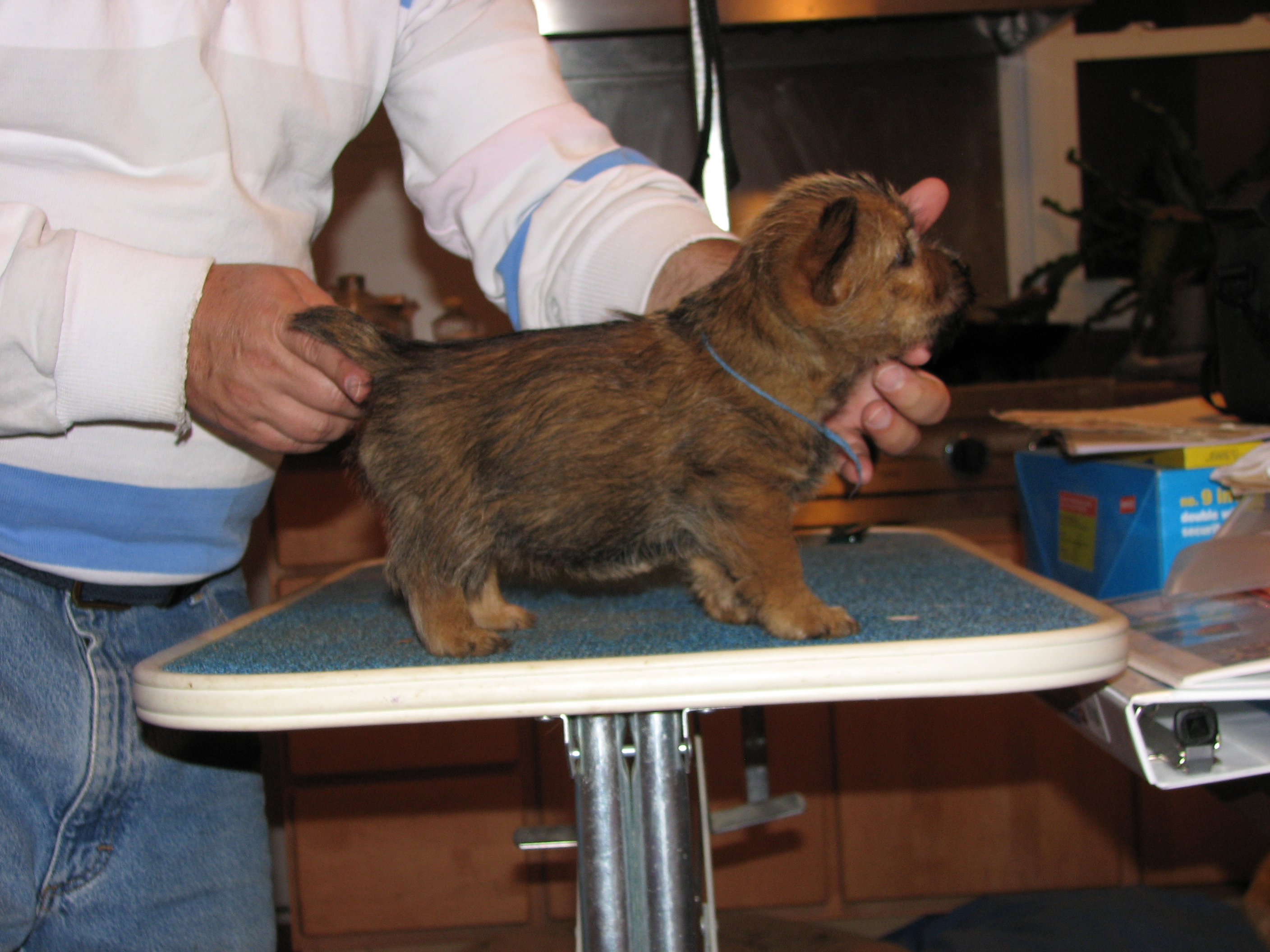 Norwich terriers are a dock-tailed breed. Tails came off