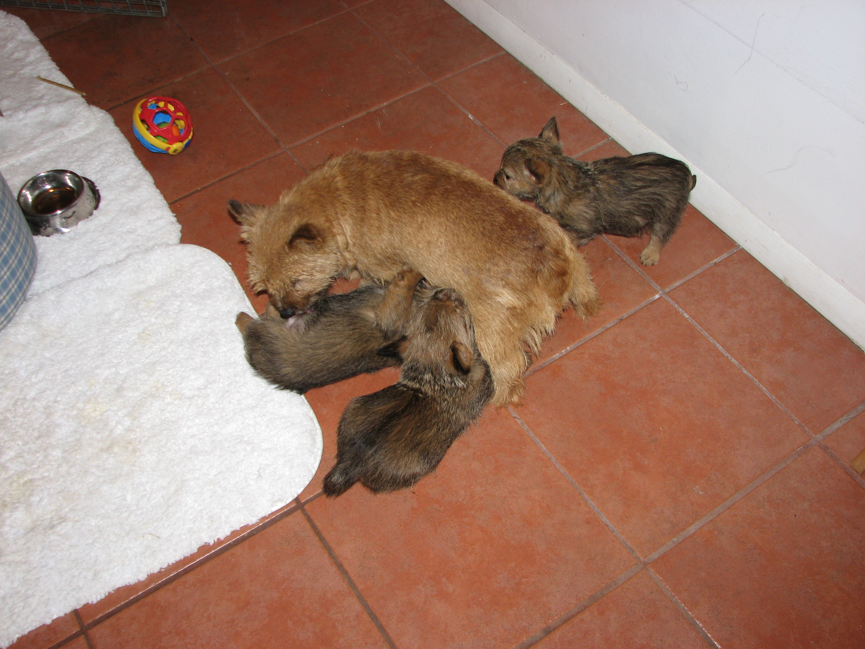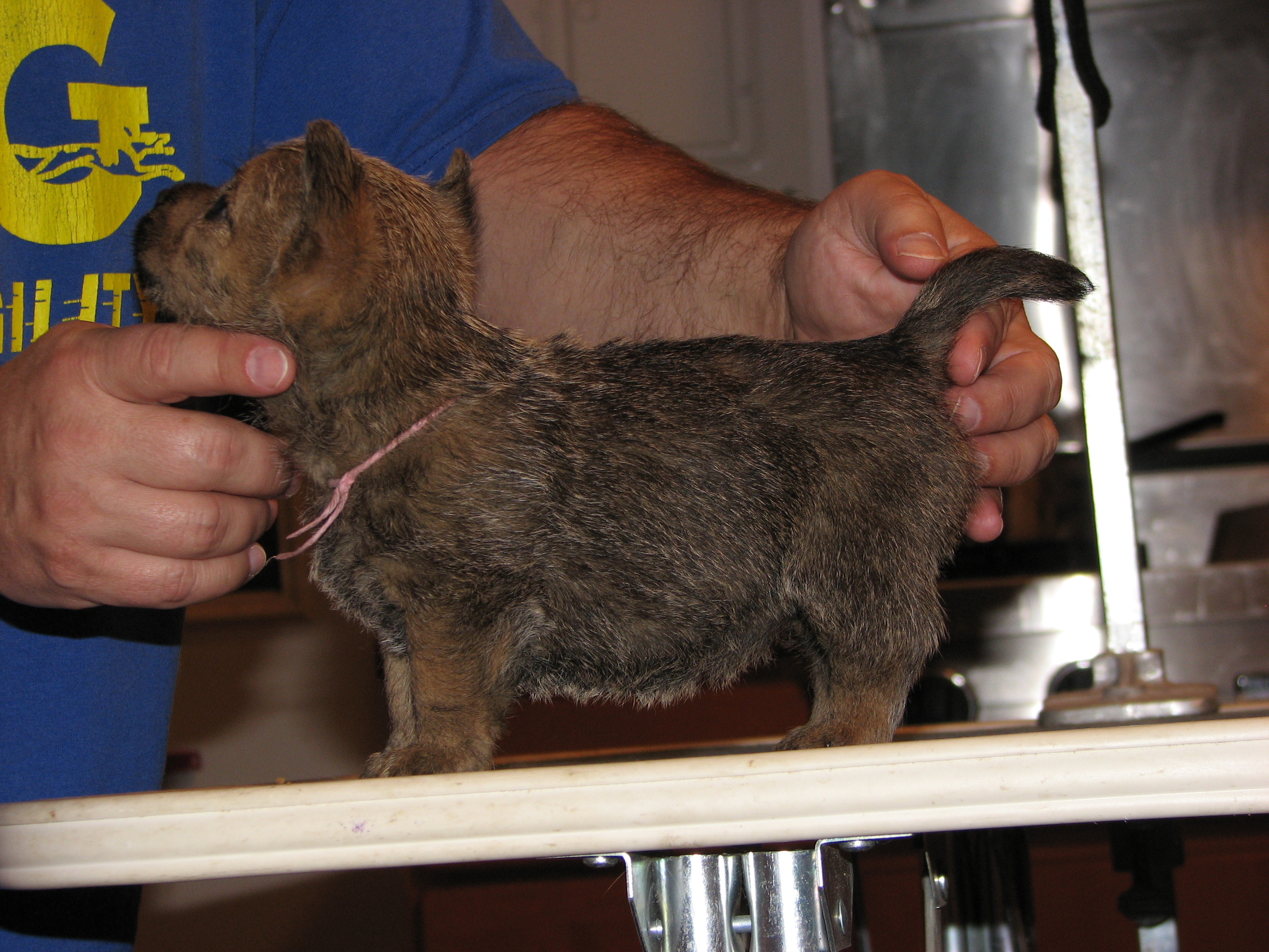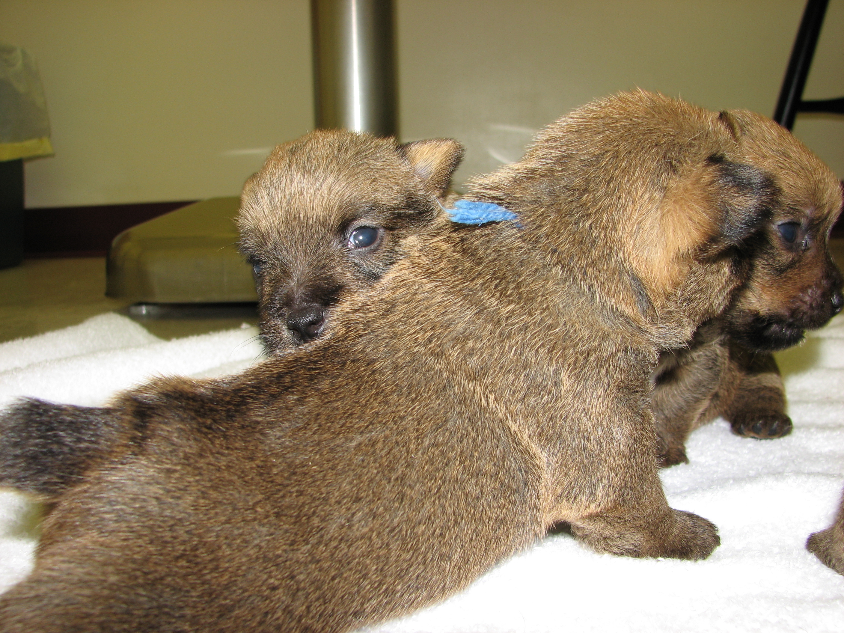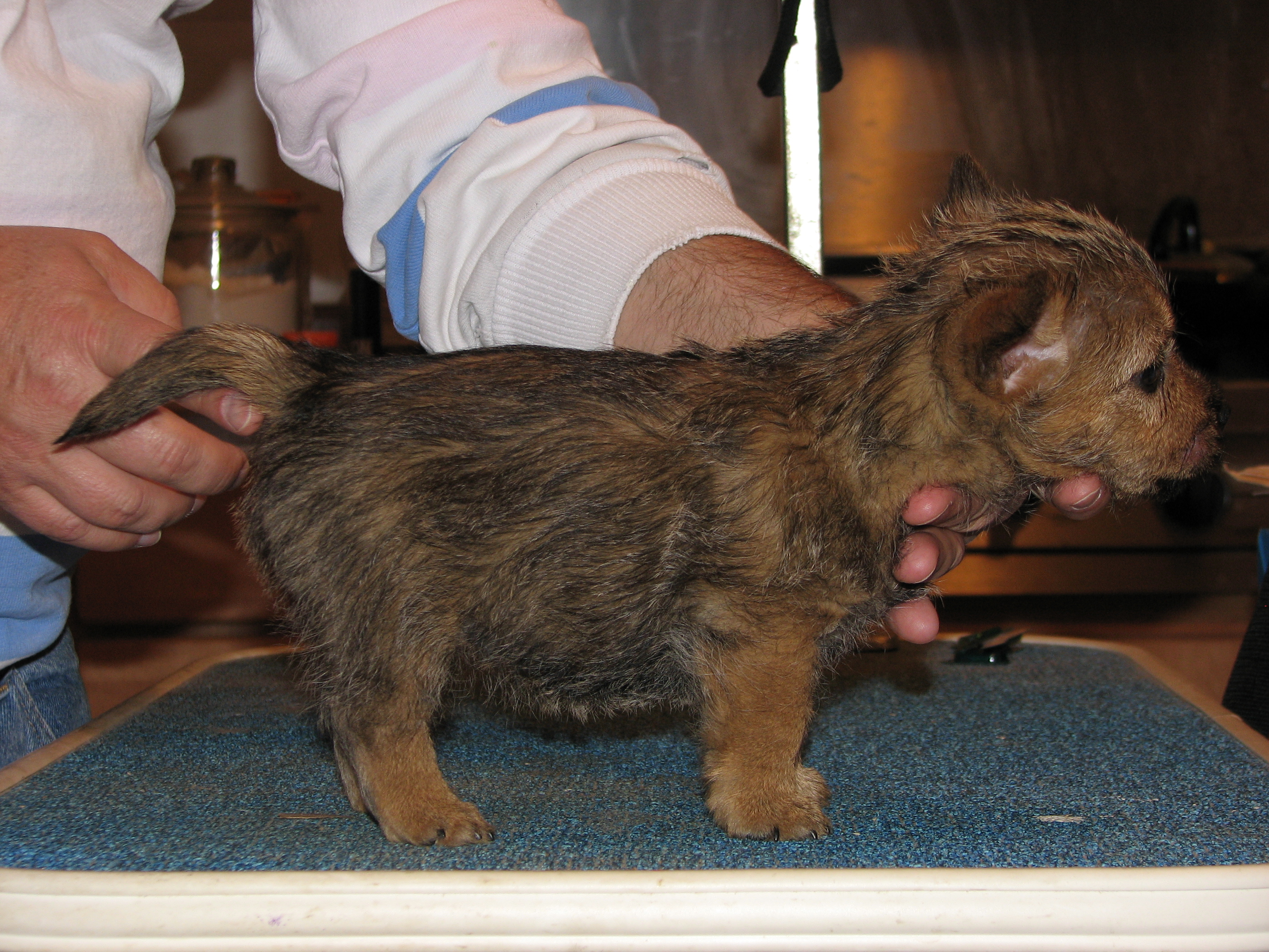 Norwich terriers are a dock-tailed breed. Tails came off