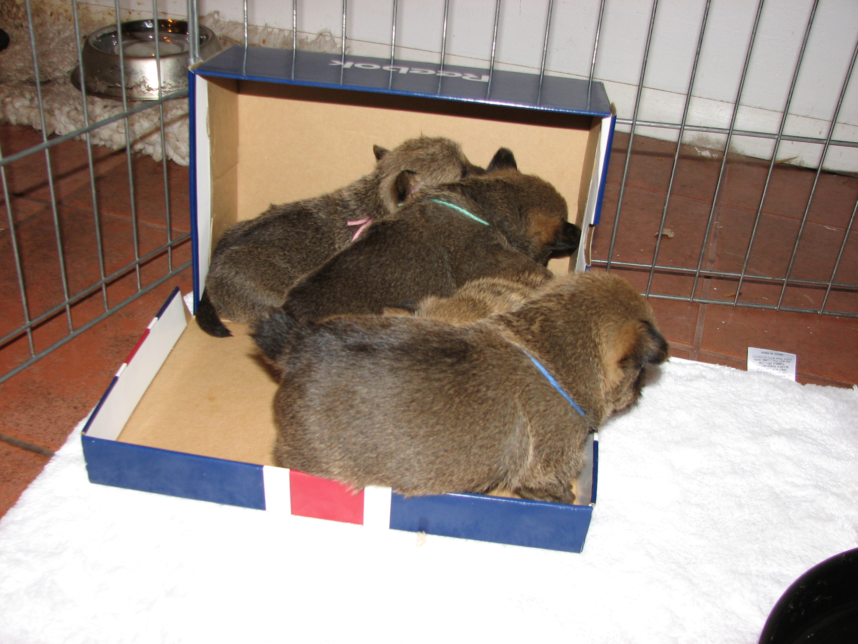I had put him back in the whelping box, but the next thing
