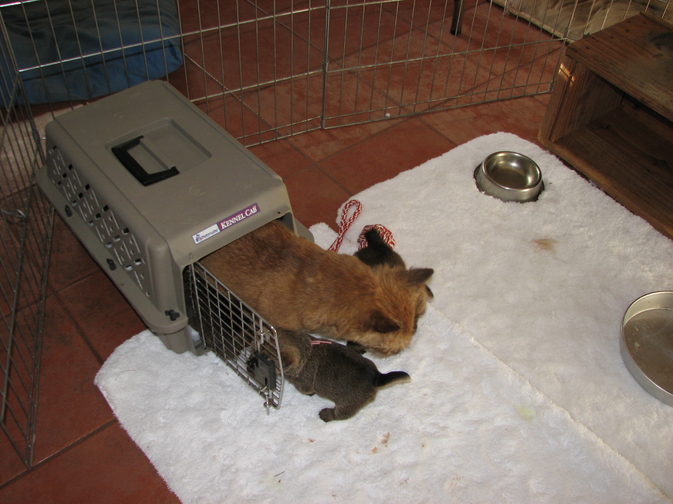 bottle in the box used to transport the puppies, Olivia does not