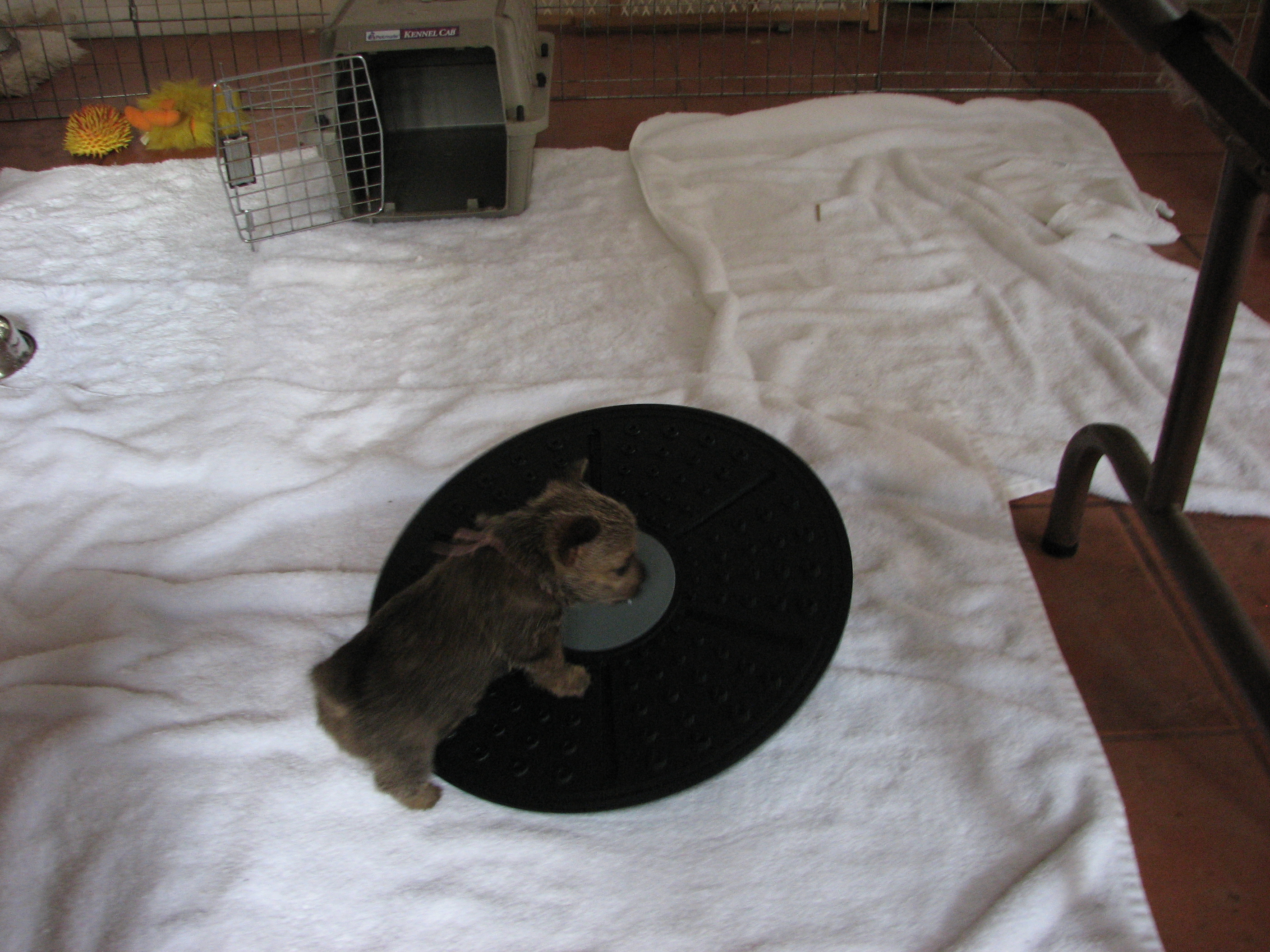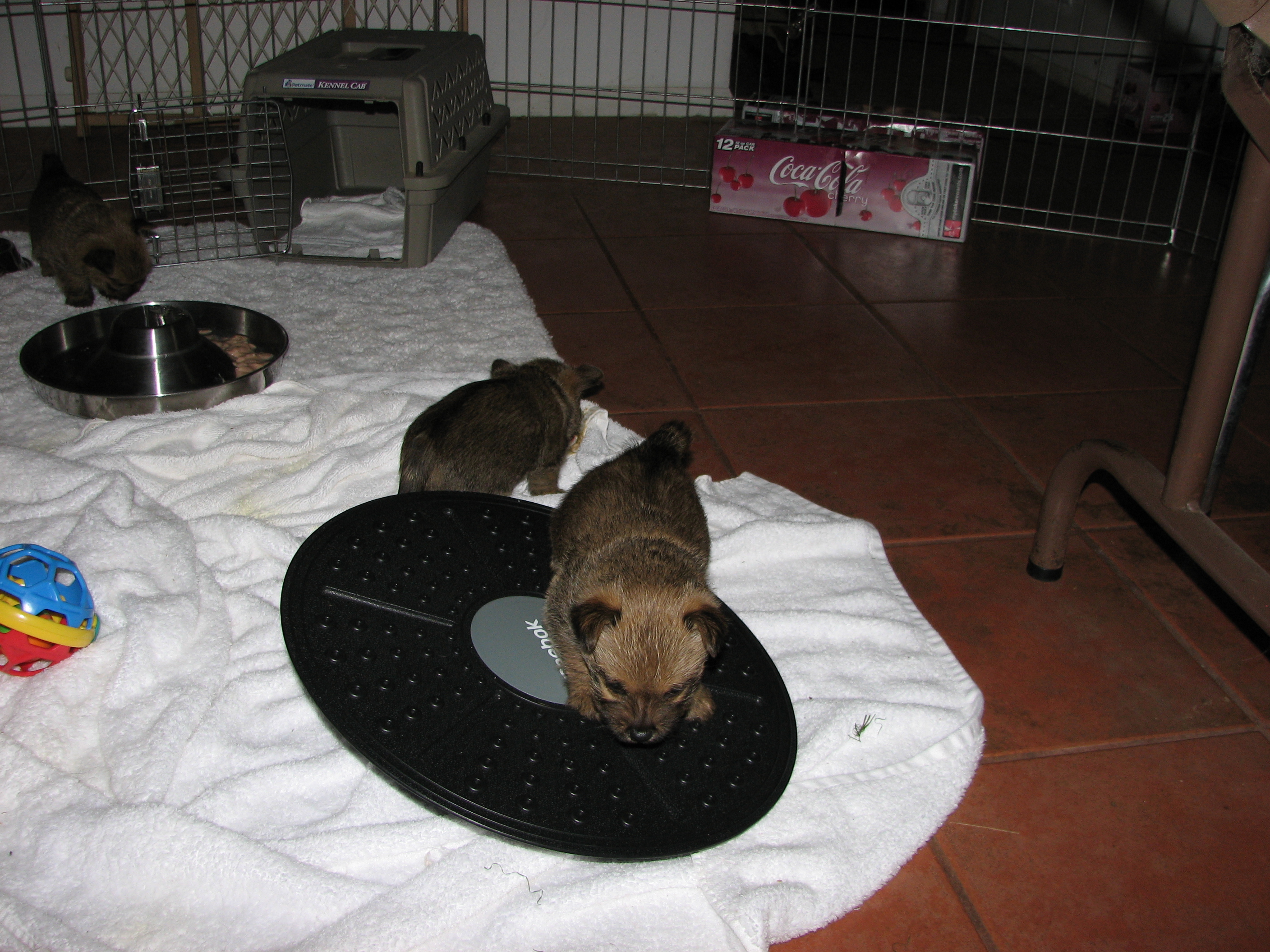 outside to potty, I found only two puppies in the play pen.