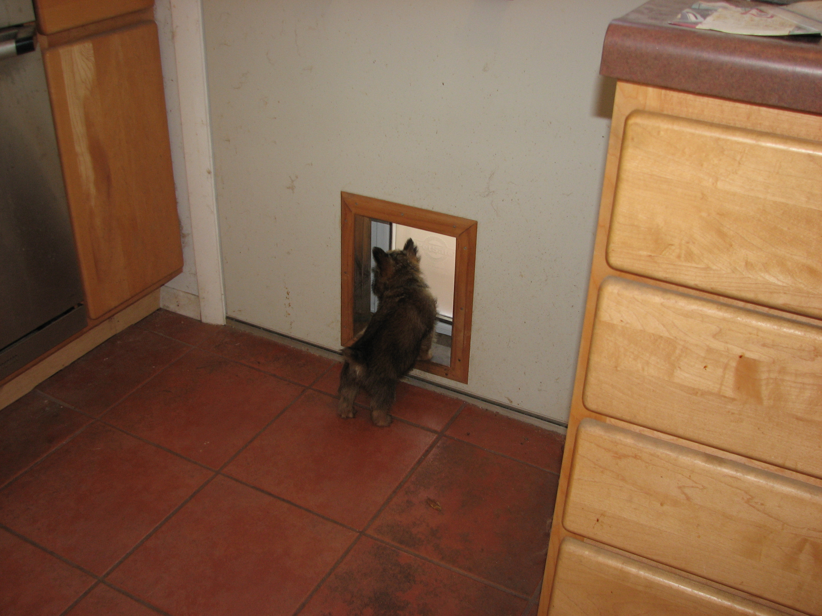 the puppies outside to potty. When we came back inside, all