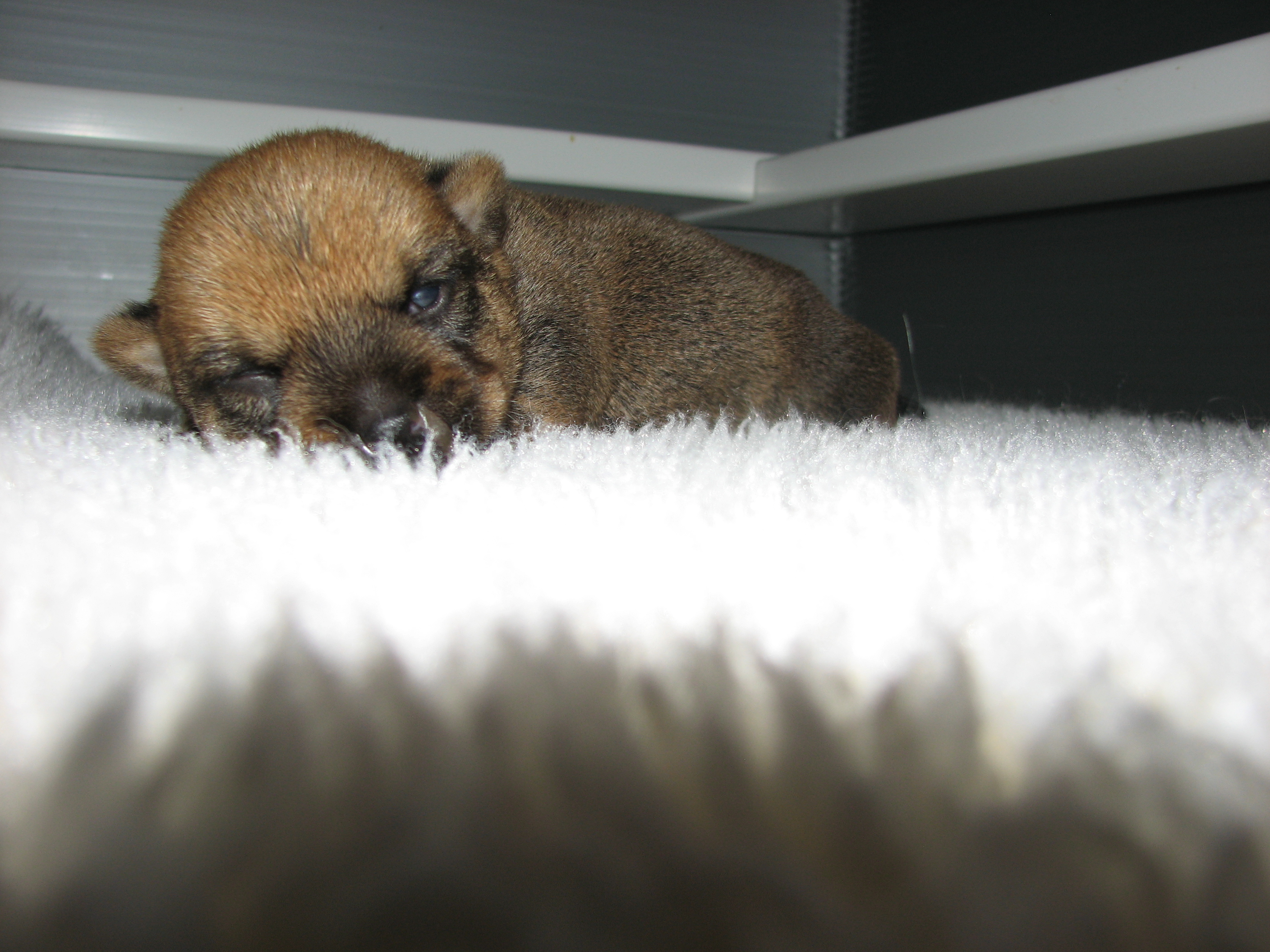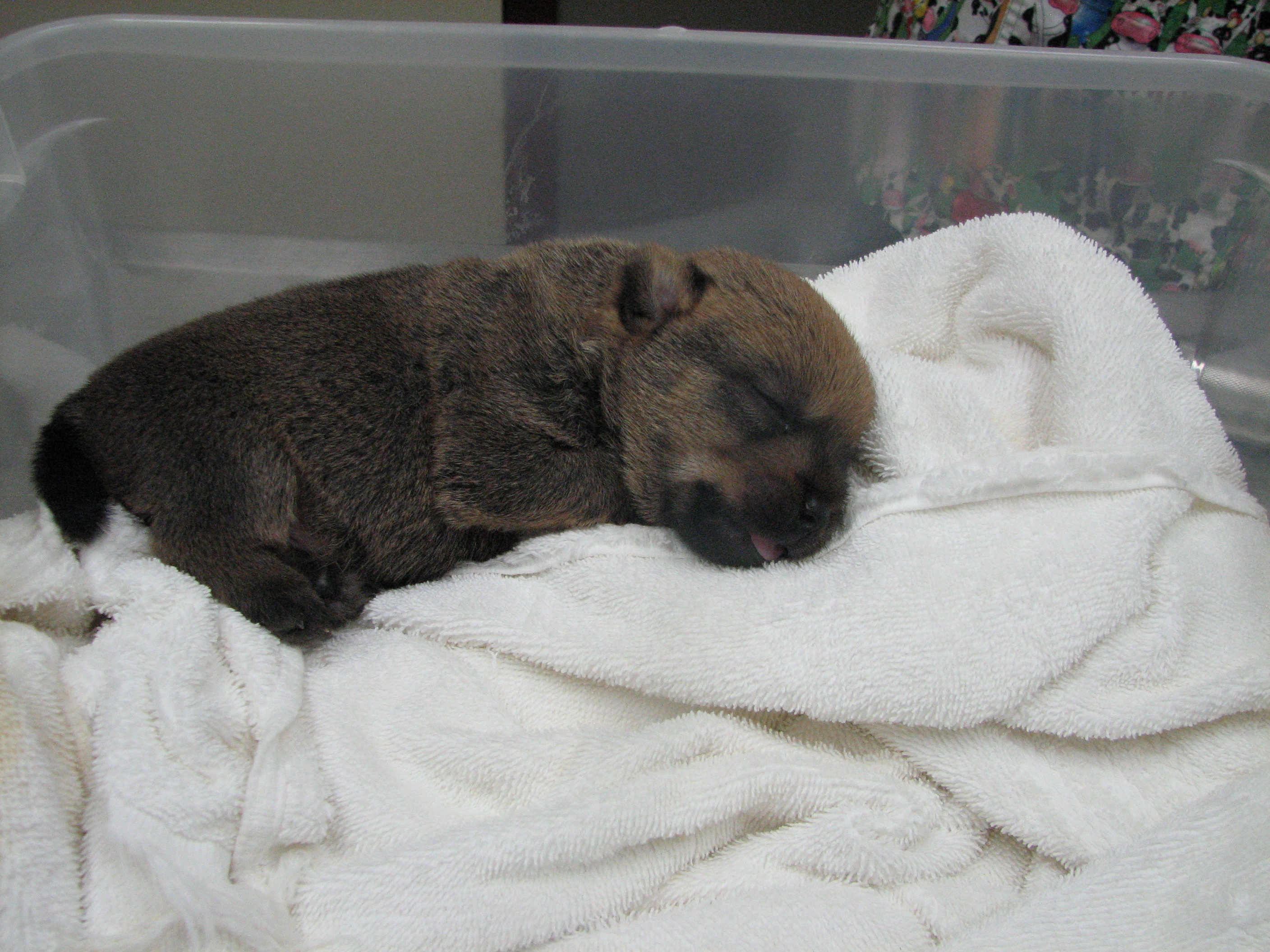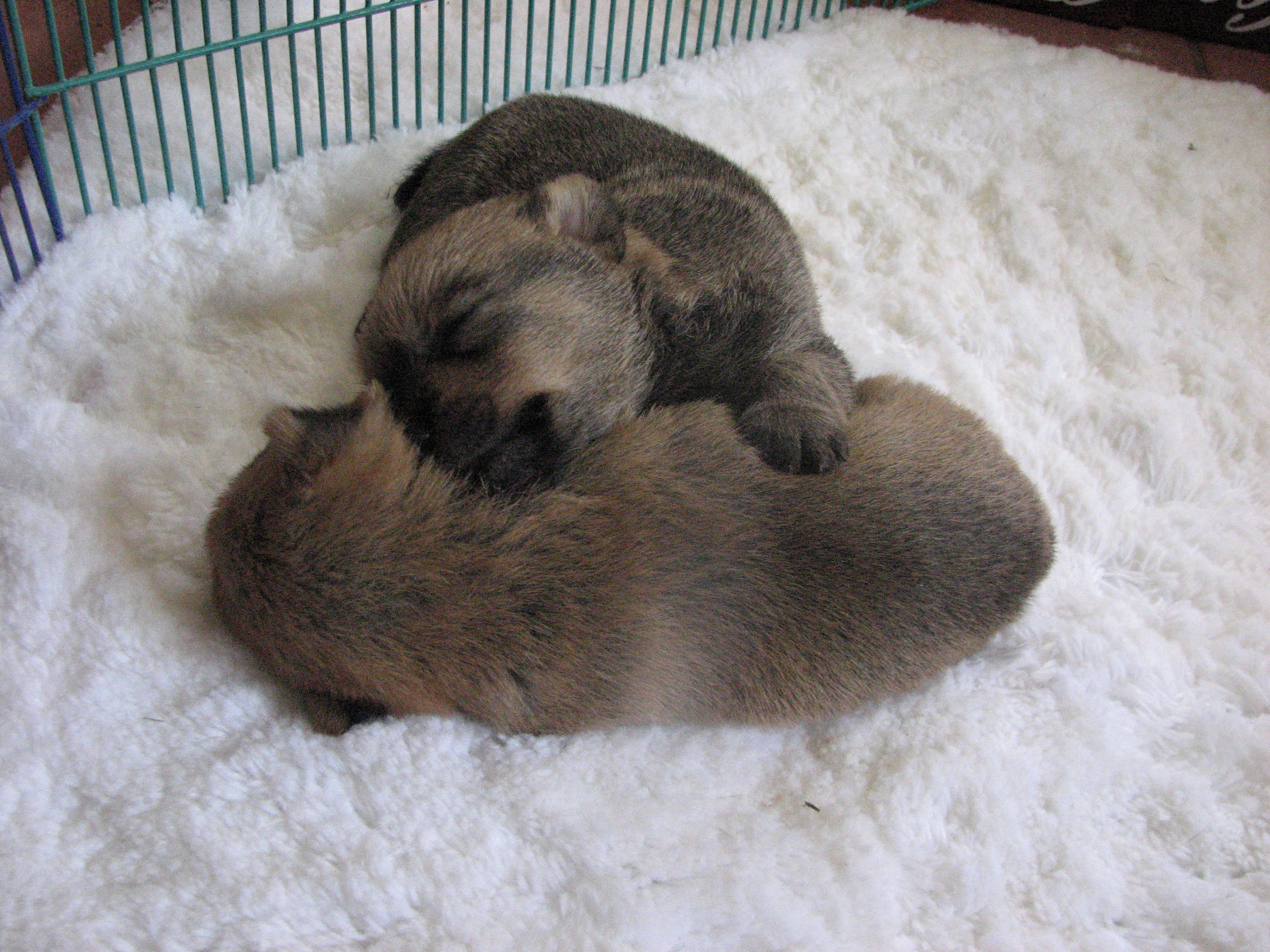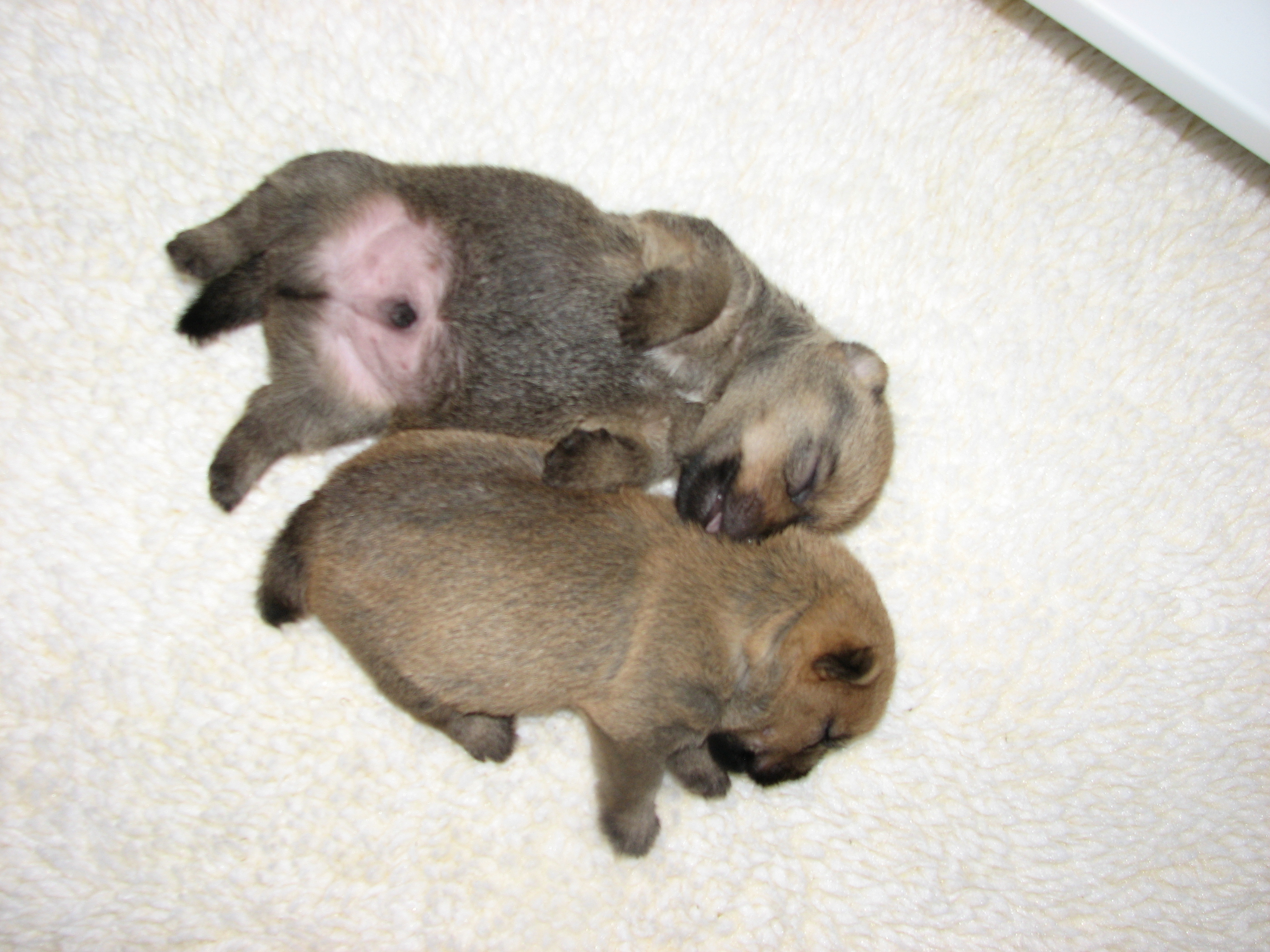- The puppies can not see or hear yet, only smell.