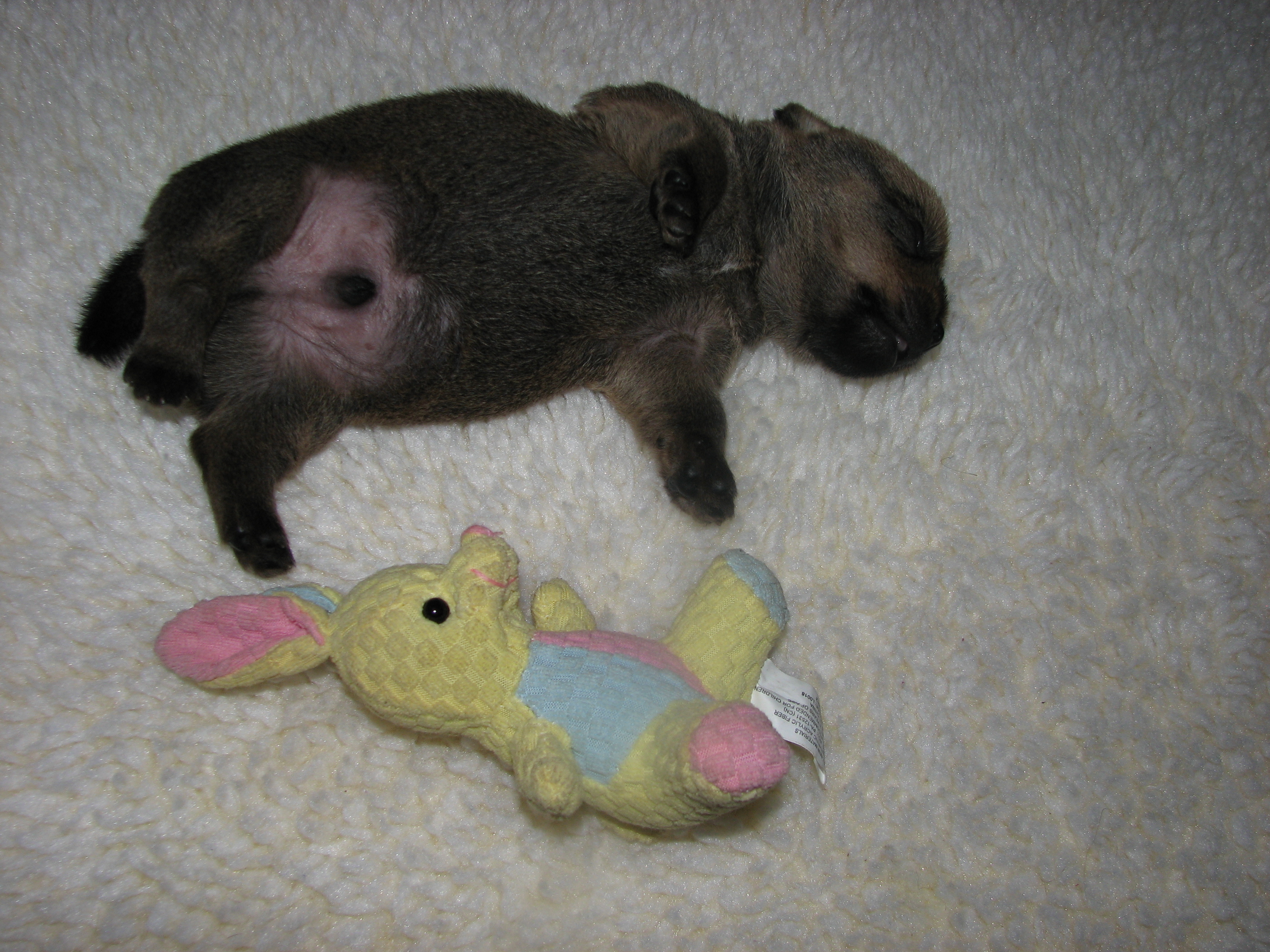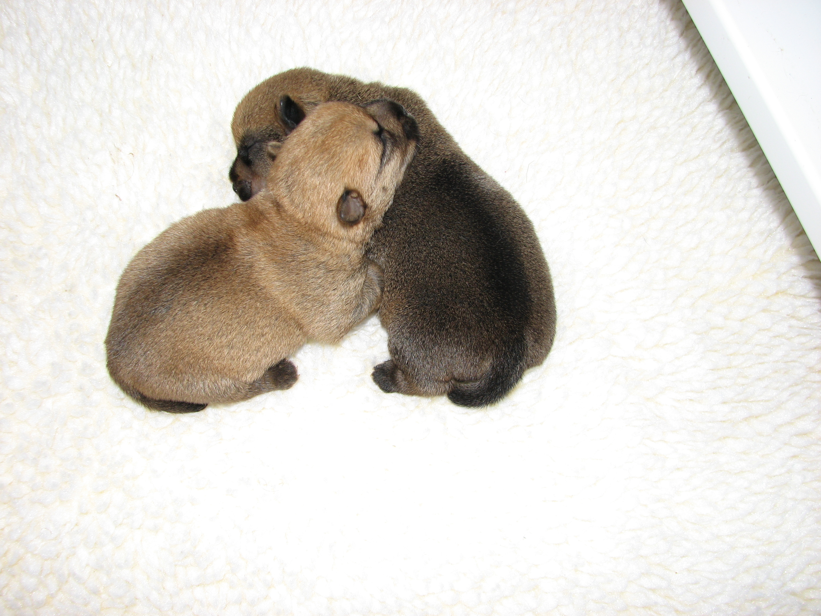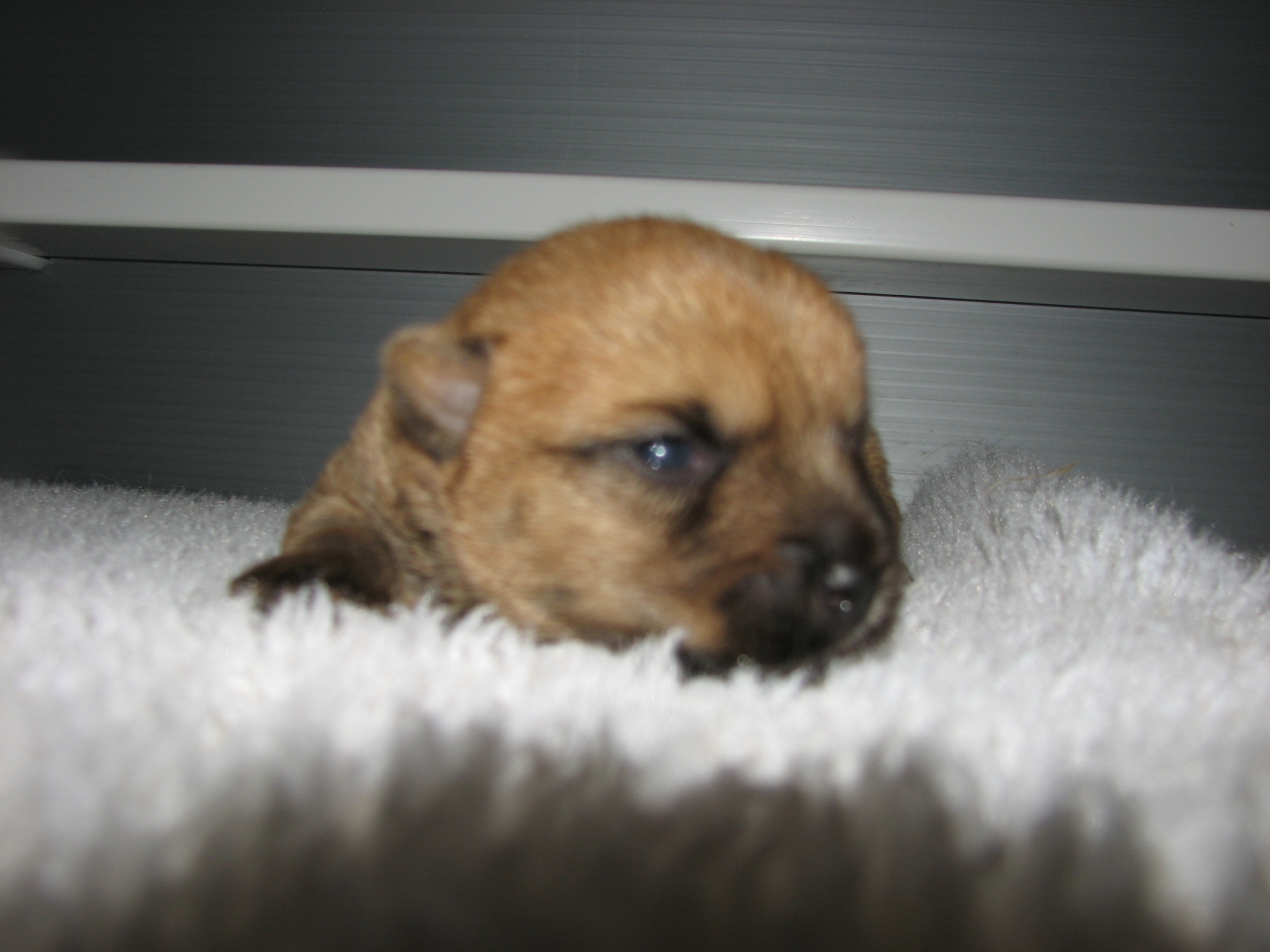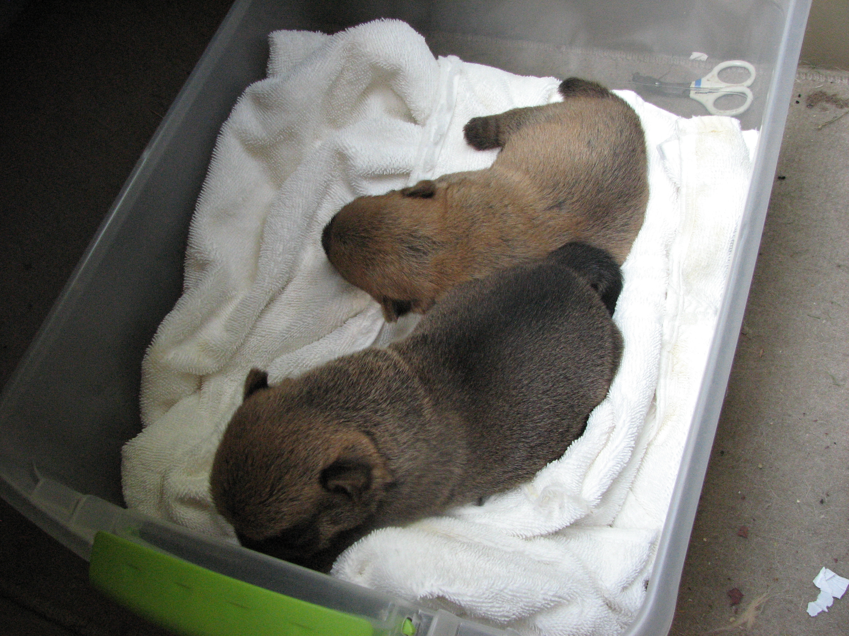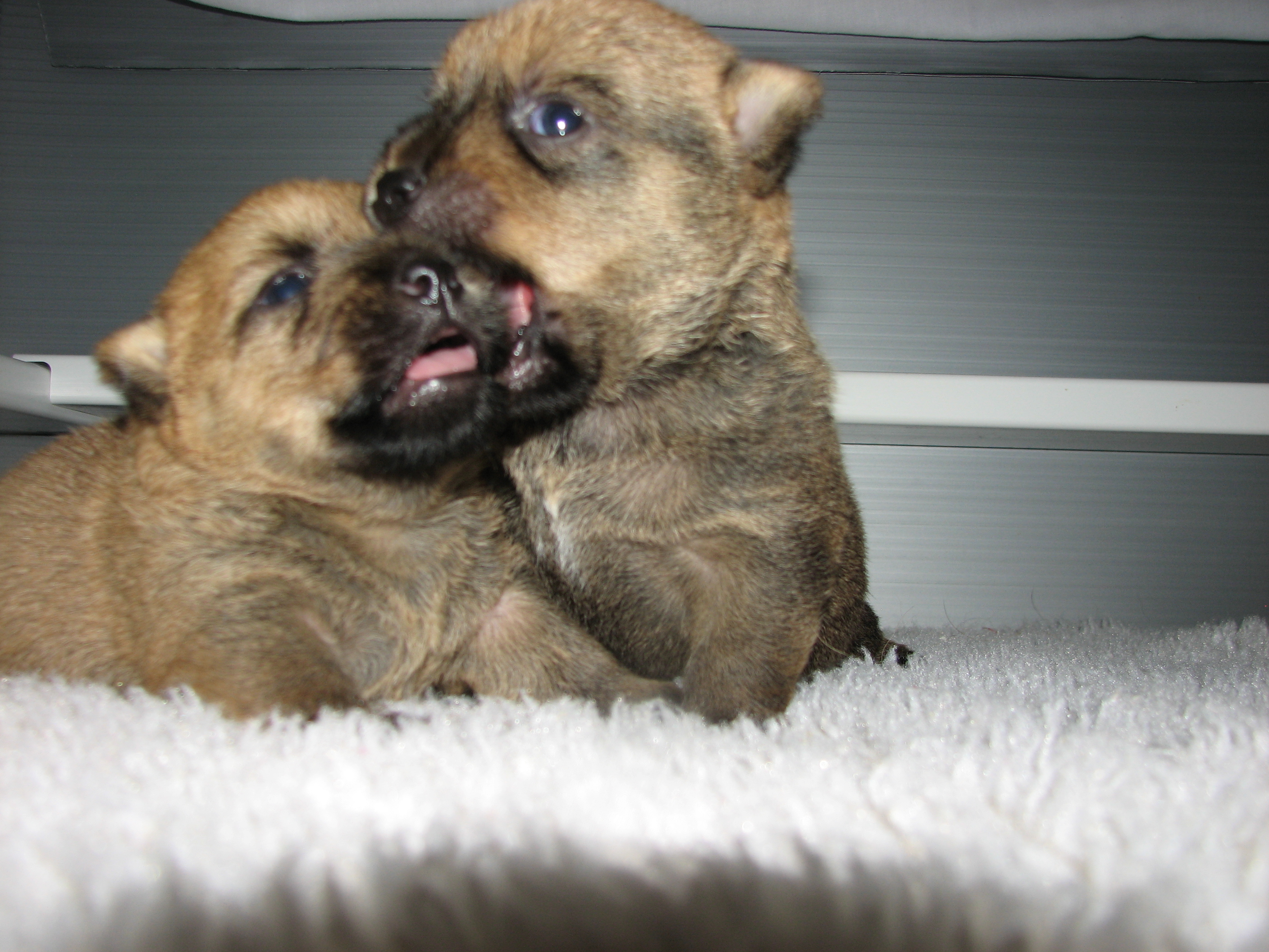 - The puppies can not see or hear yet, only smell.
