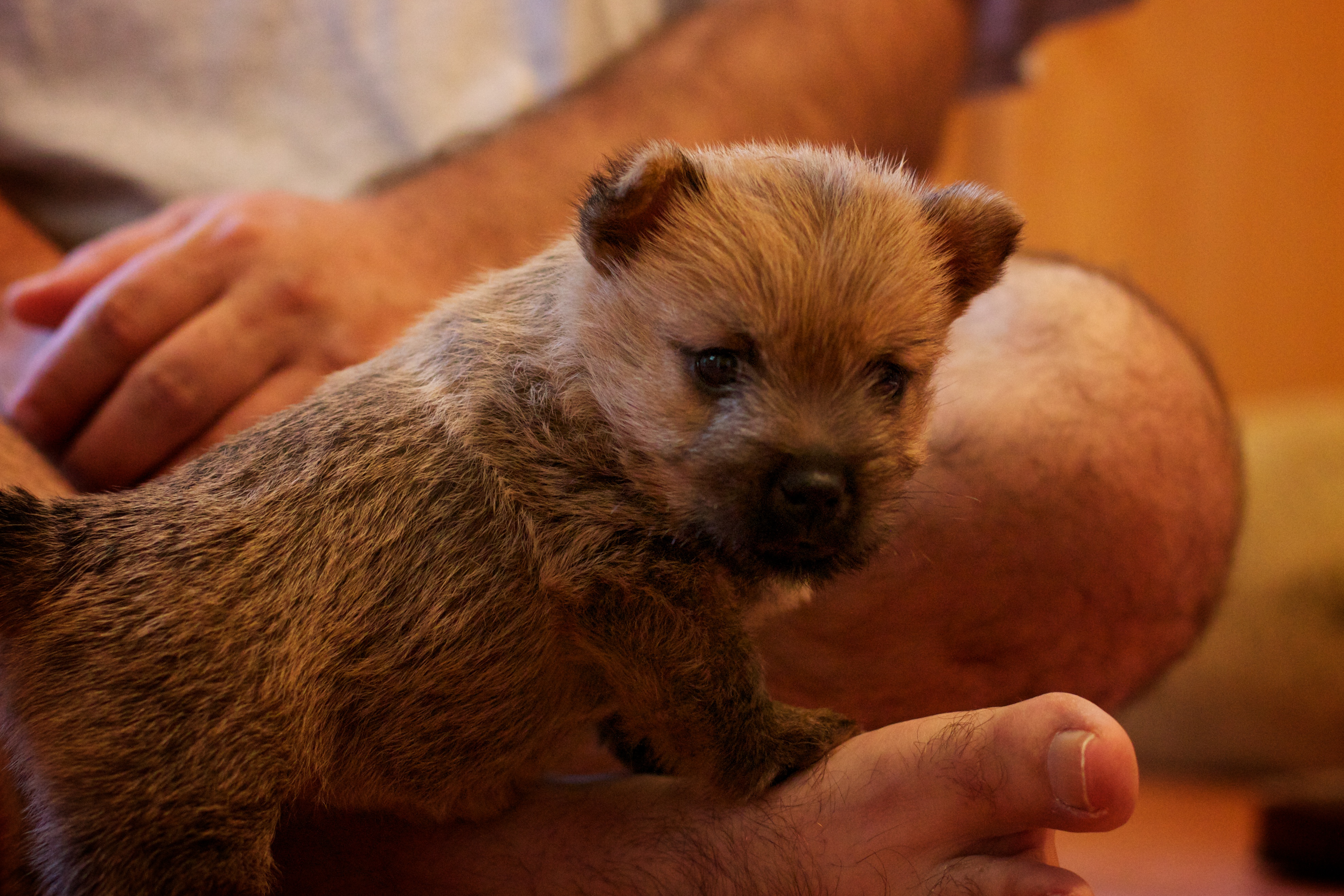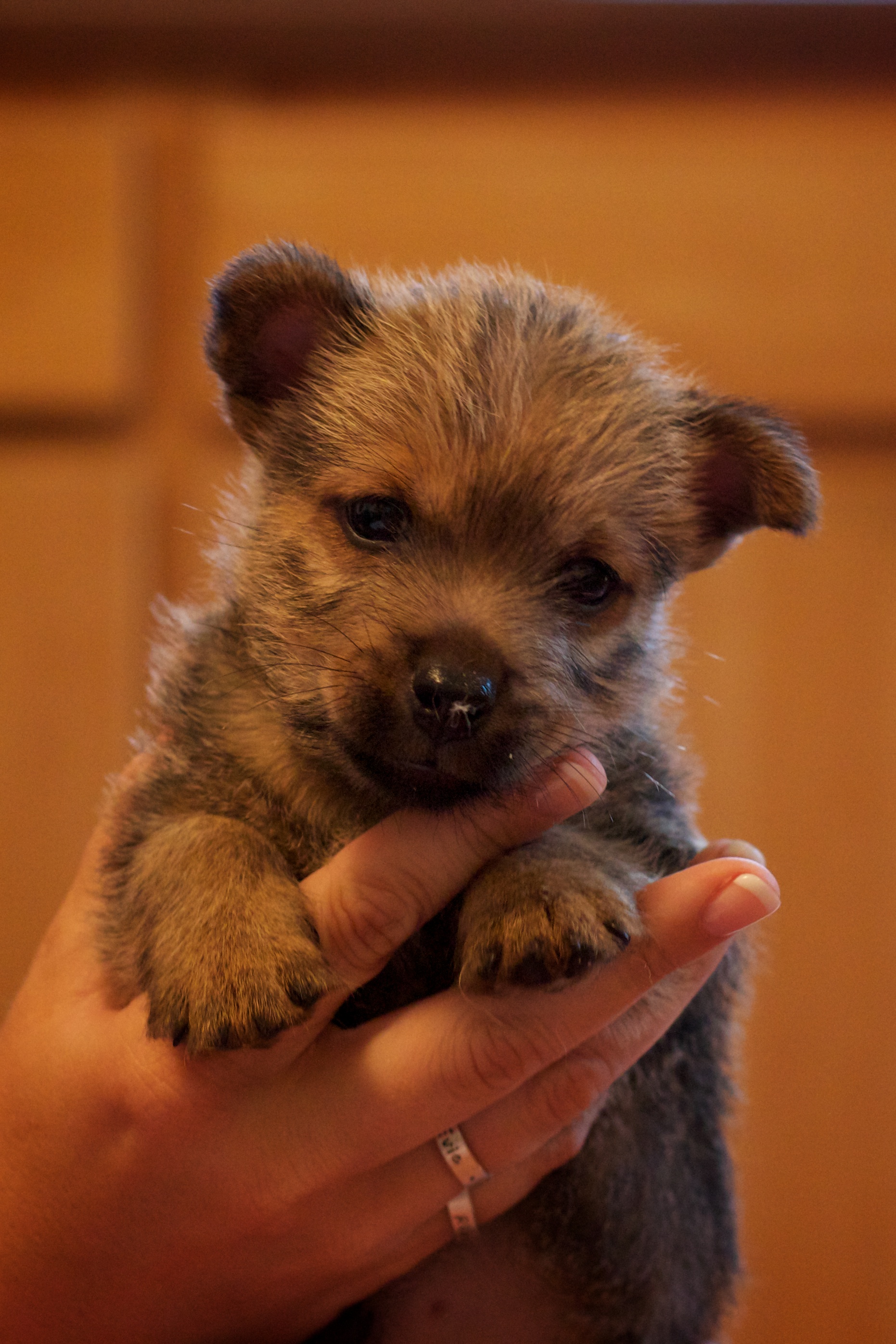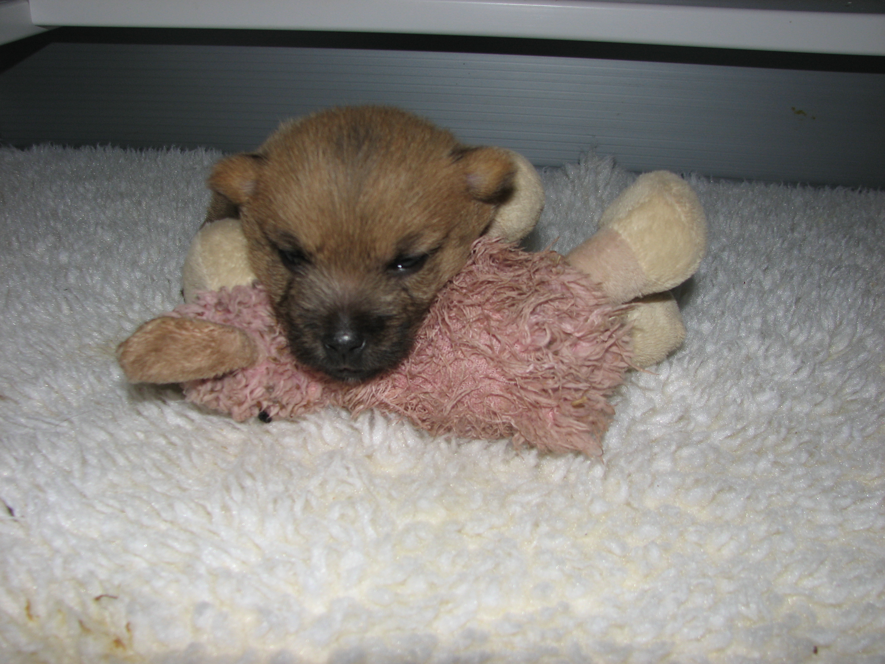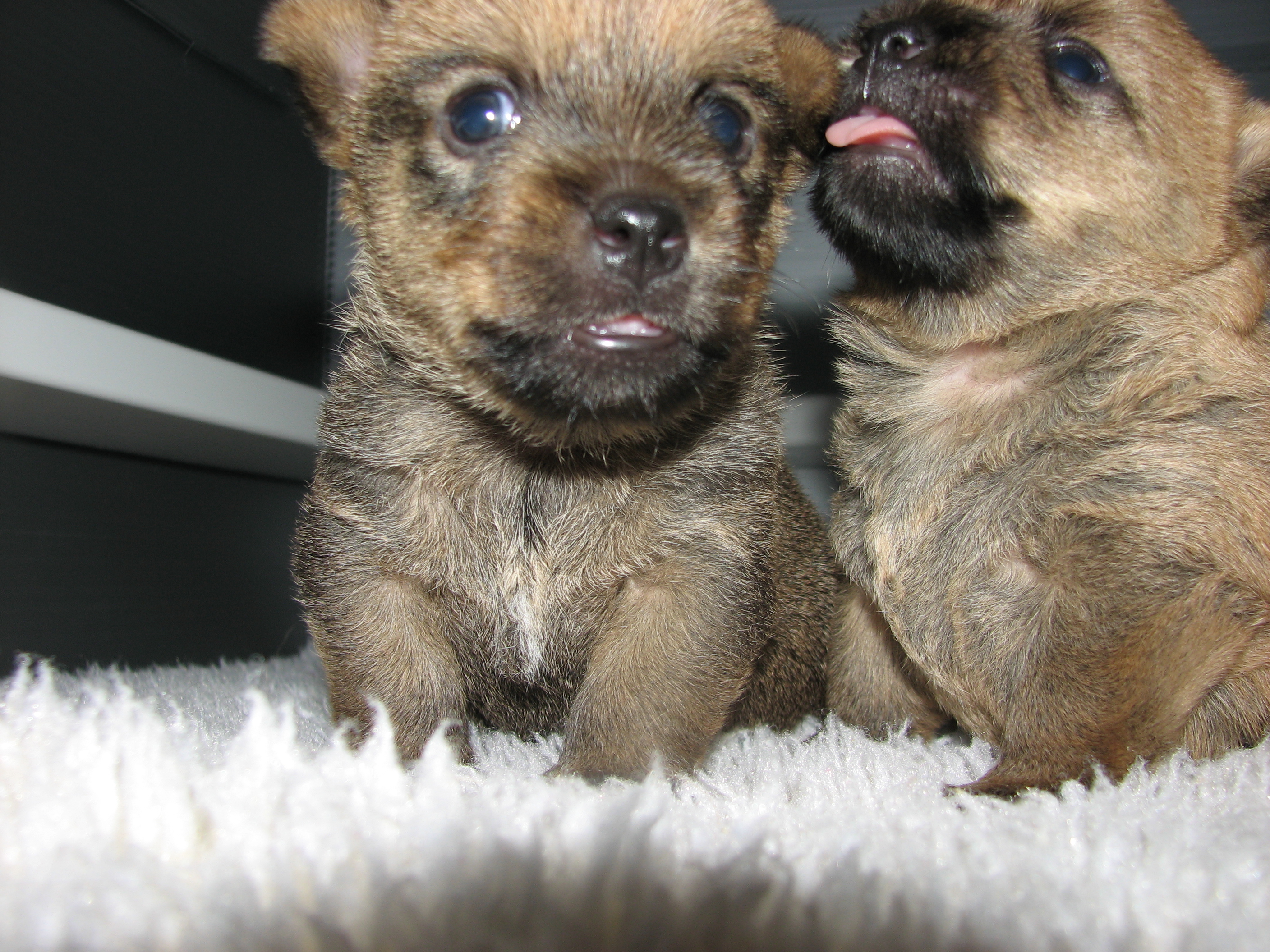 - The puppies can not see or hear yet, only smell.