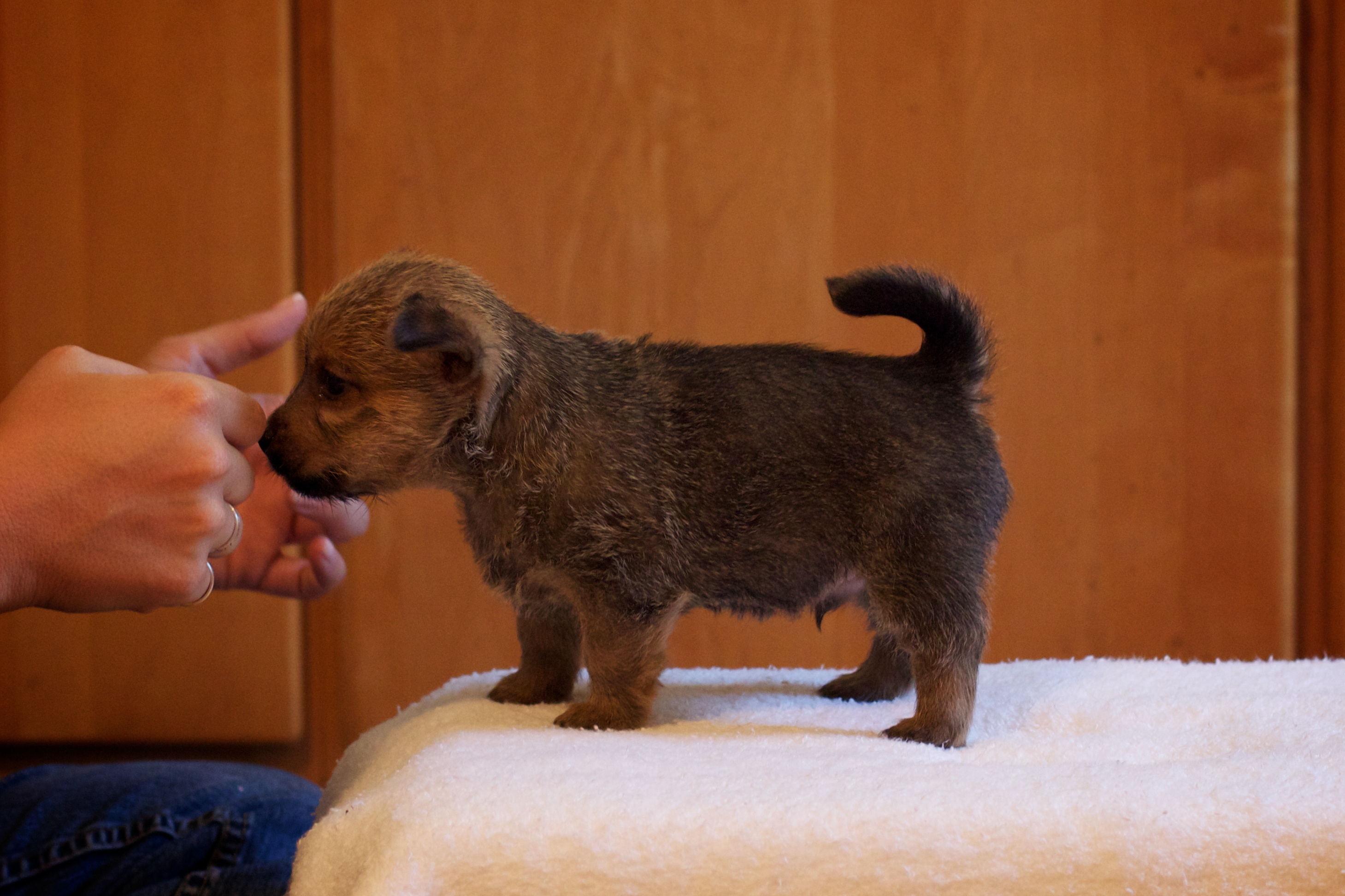 of the puppies. Here the puppies check out Rachael and