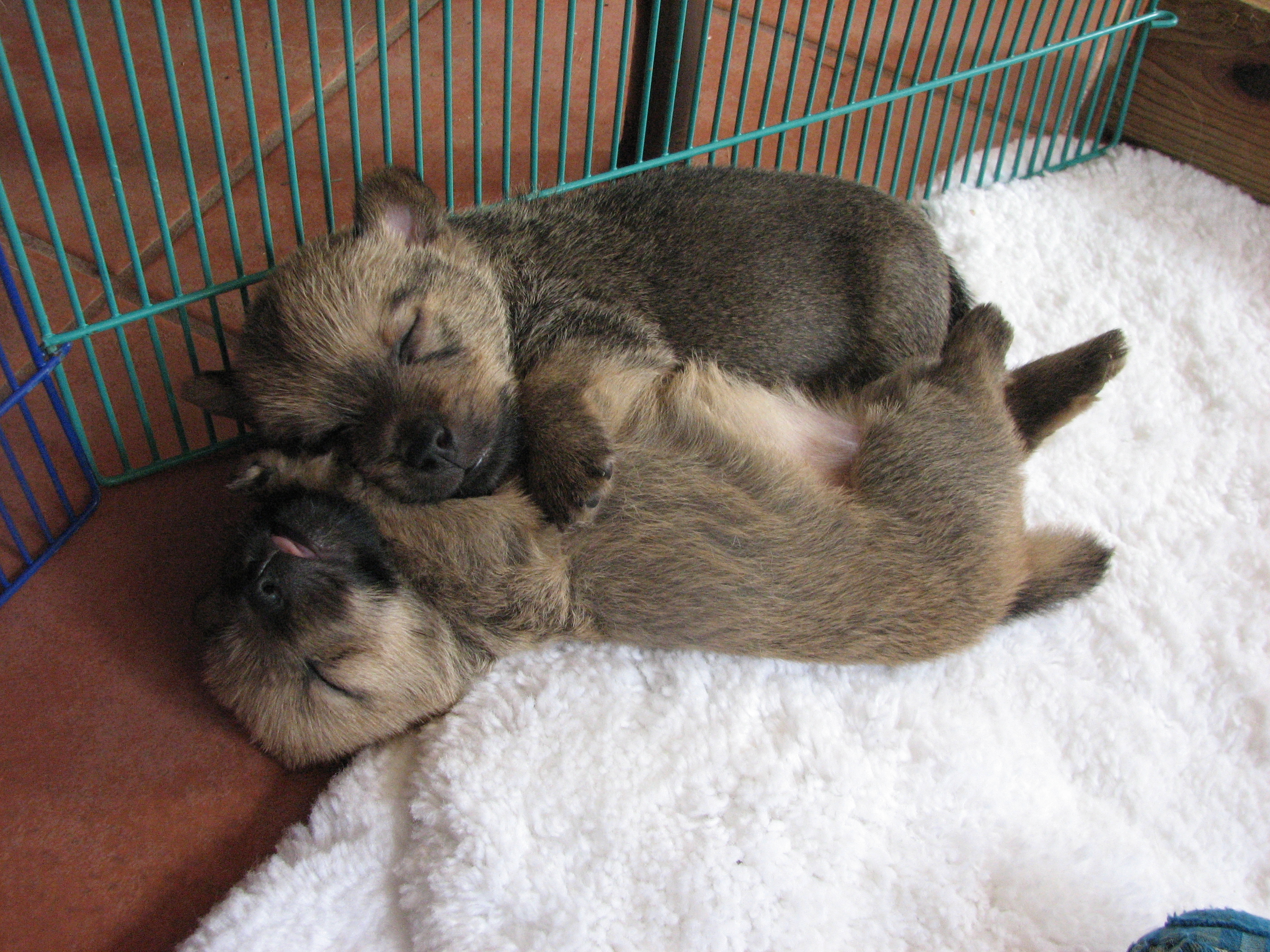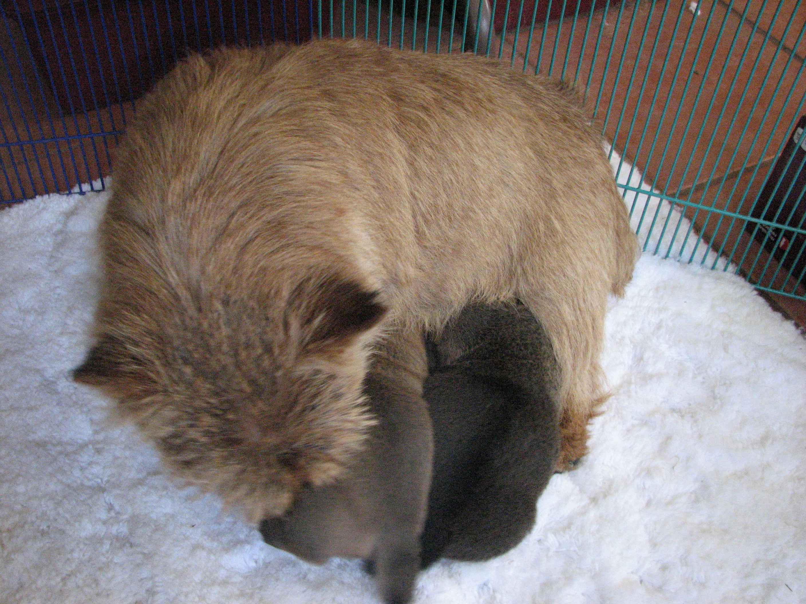 - Titus sleeping while squeezed between an x-pen