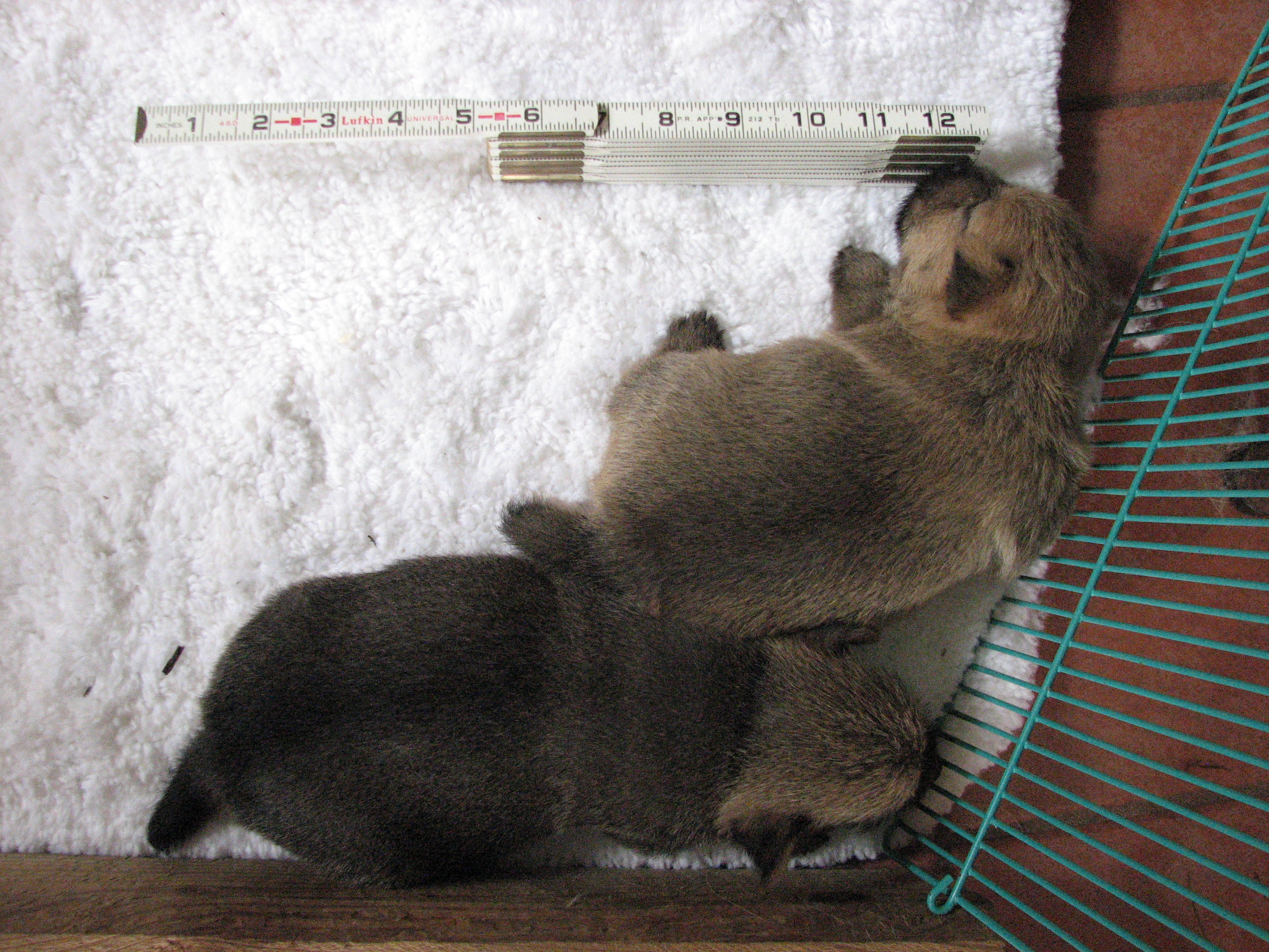 - Titus asleep in mommy's crate,