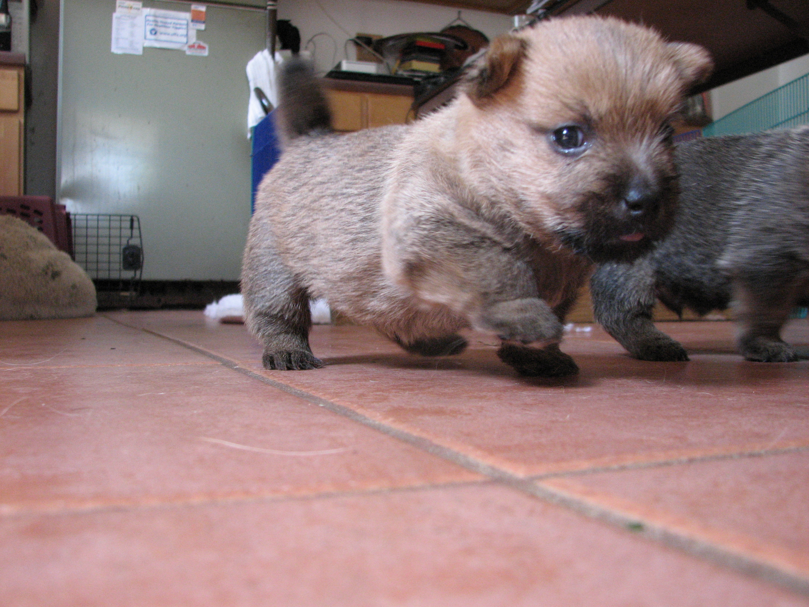 - I have been letting the puppies explore my kitchen.