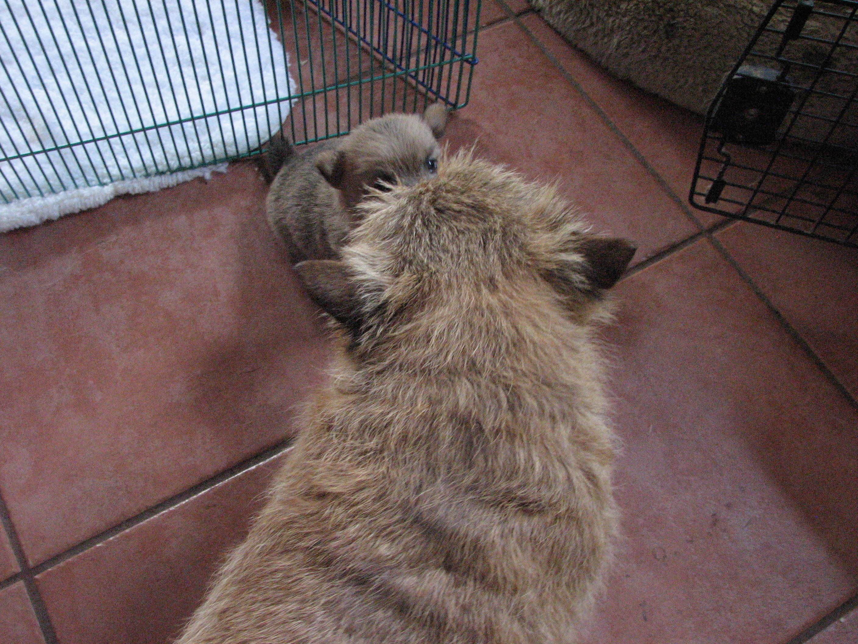 Tami biting mommy's tail.