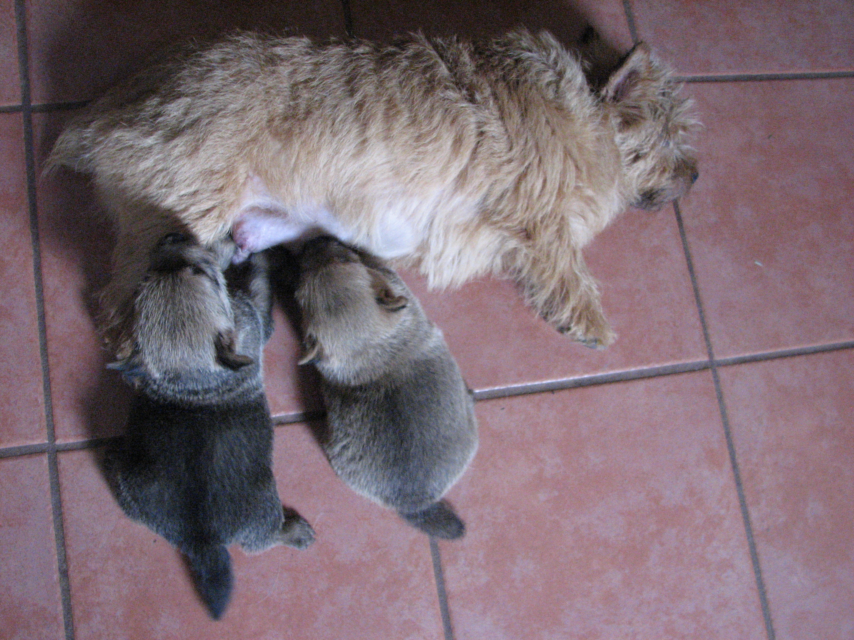 - The puppies are still nursing.