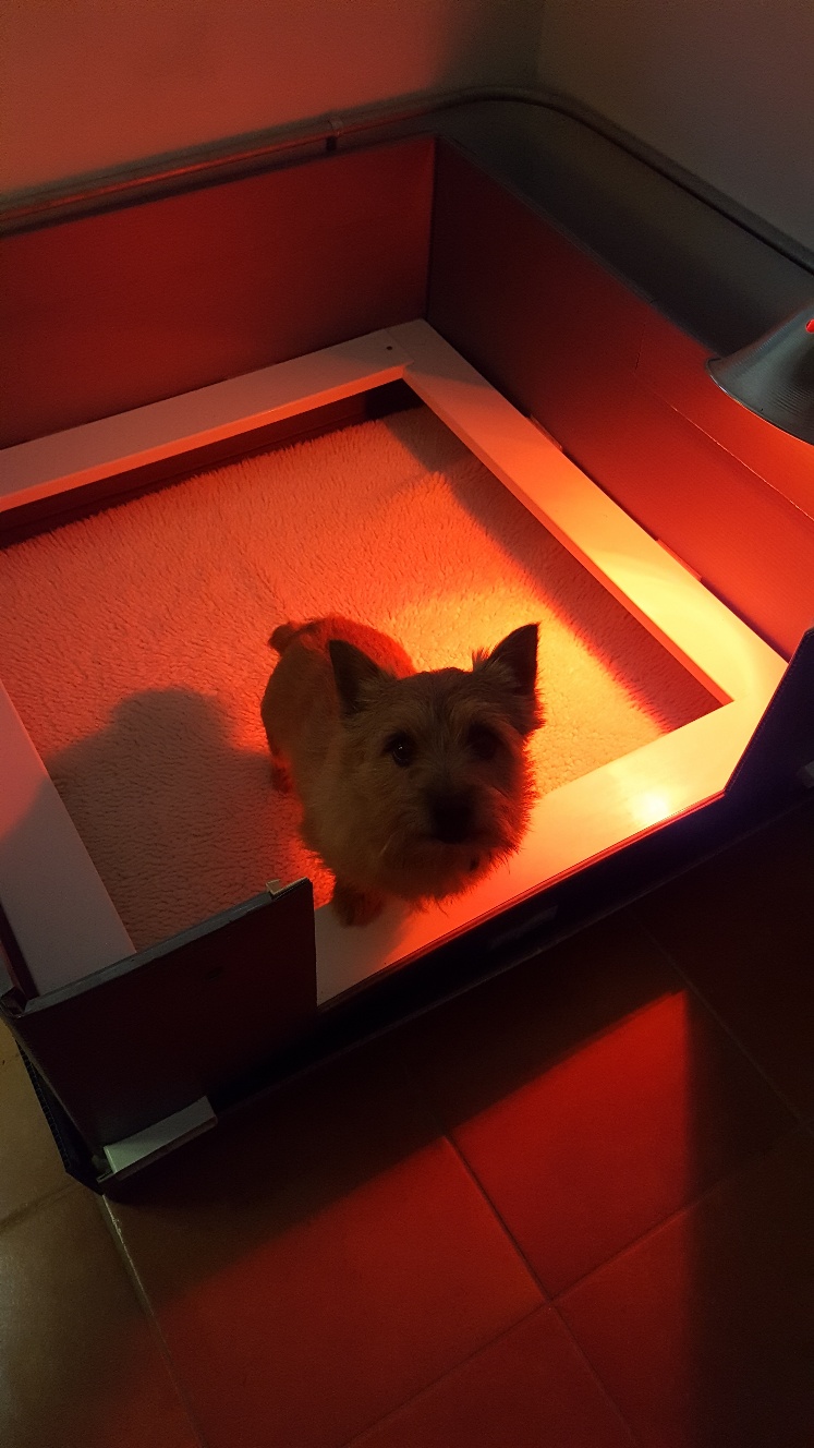 The vets gave Mandy some Metacam for her fever. I was told to watch Mandy carefully, given a long list of things to watch out for, and told to call if there was any problem. By the time we got home, Mandy's temperature was down to 100.7.
