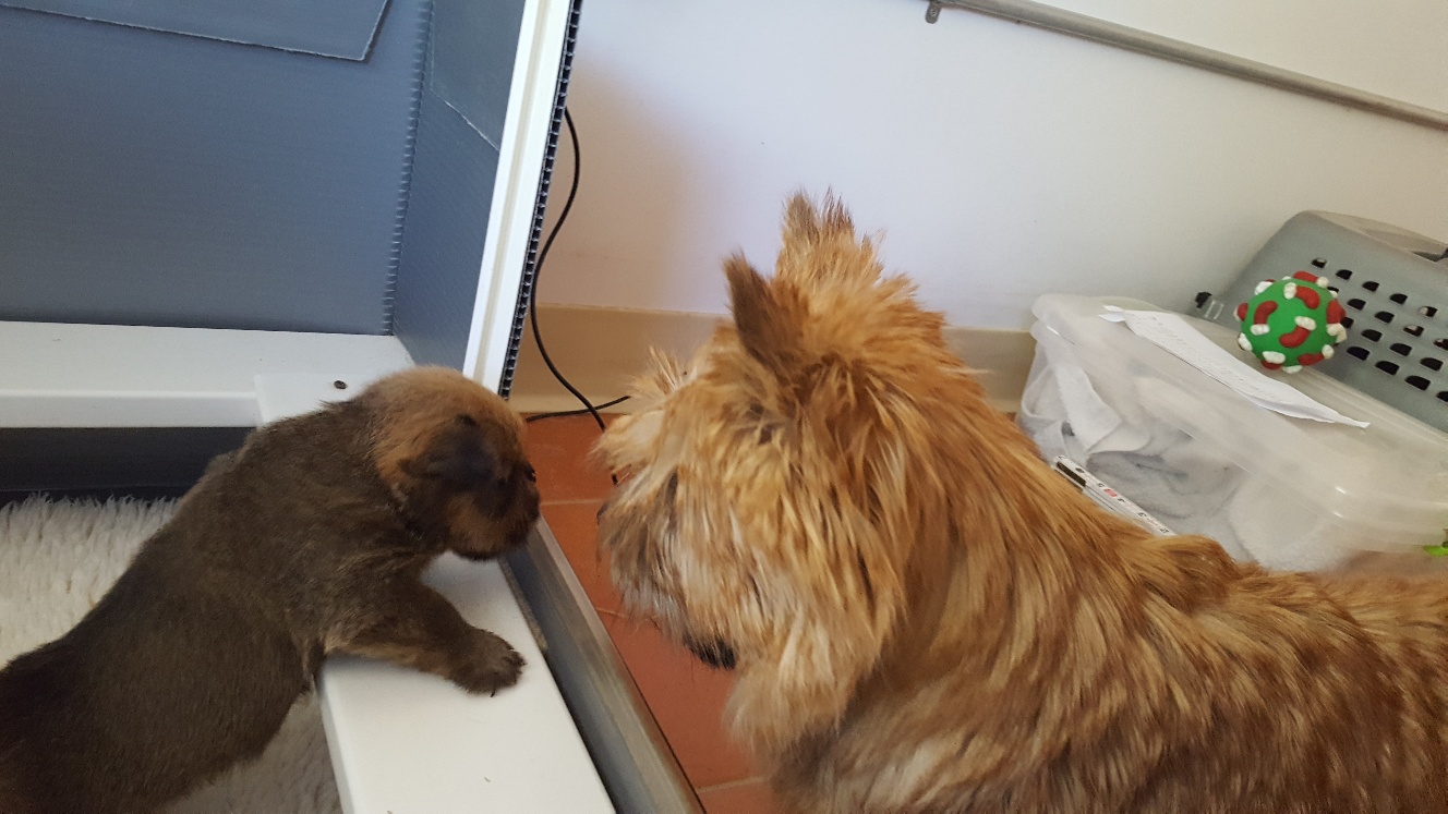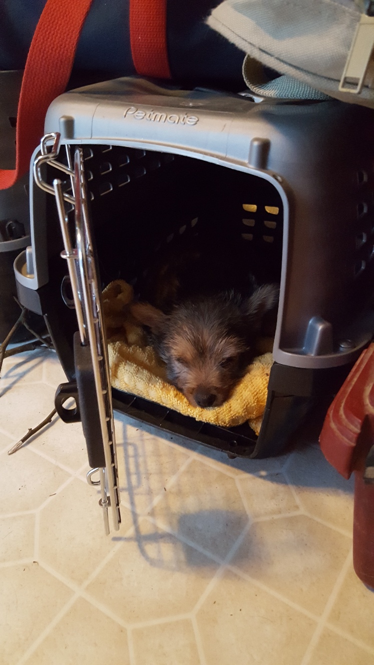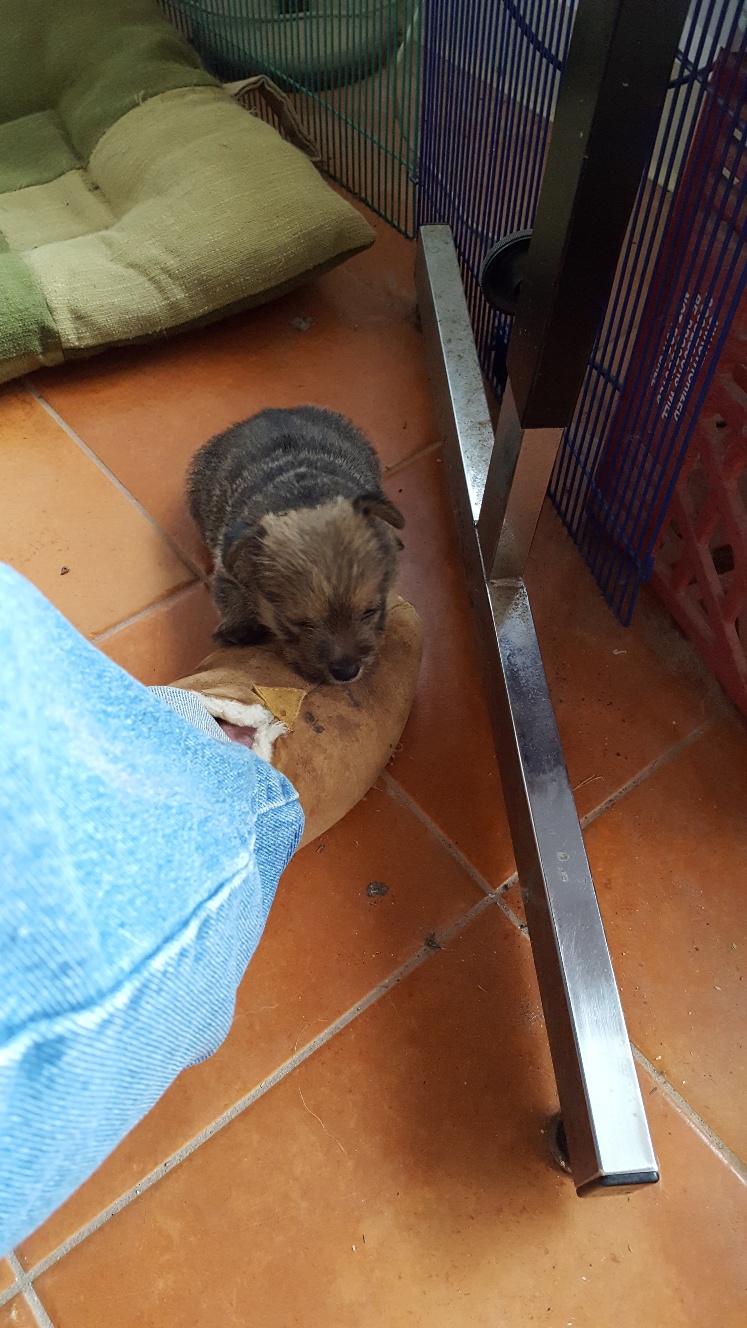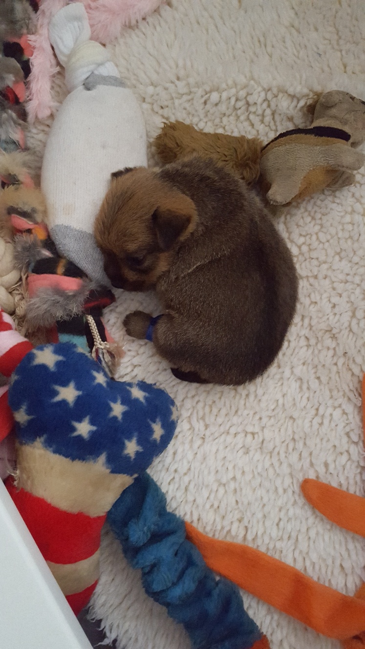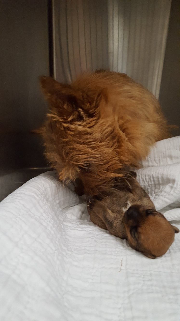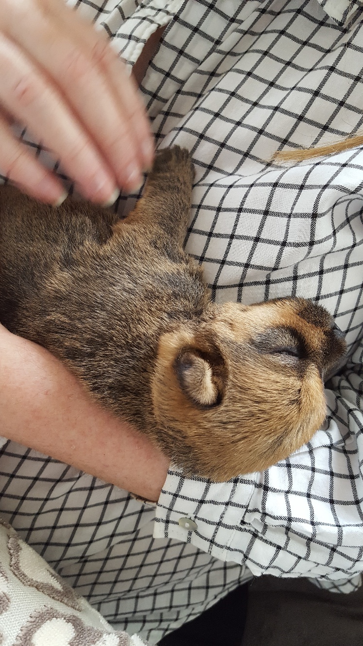 I thought we would only be visiting for a few hours, but it turned out to be the entire day. The puppy got held, did not seemed stressed as evidenced by her yawn, and bottle fed.