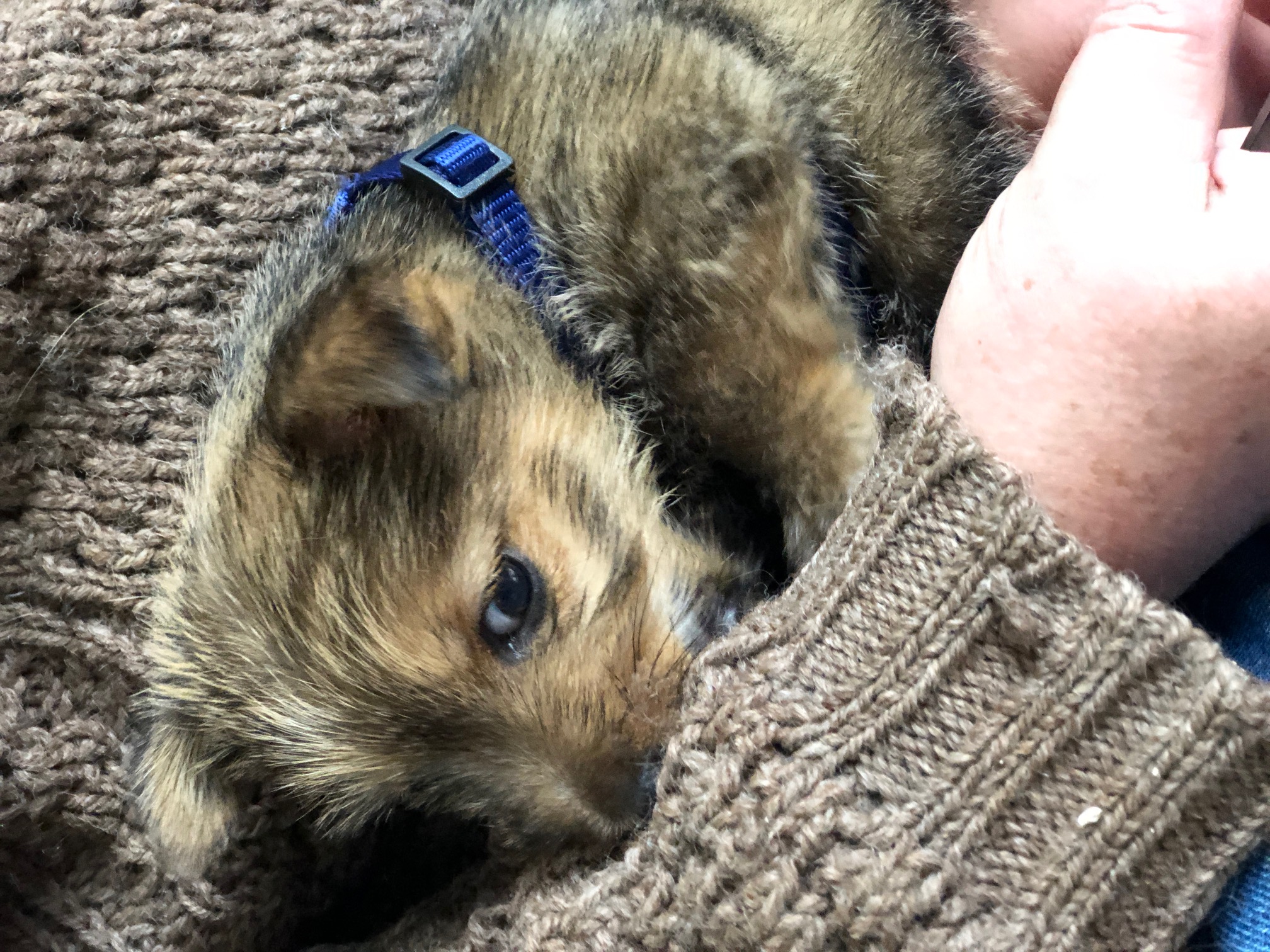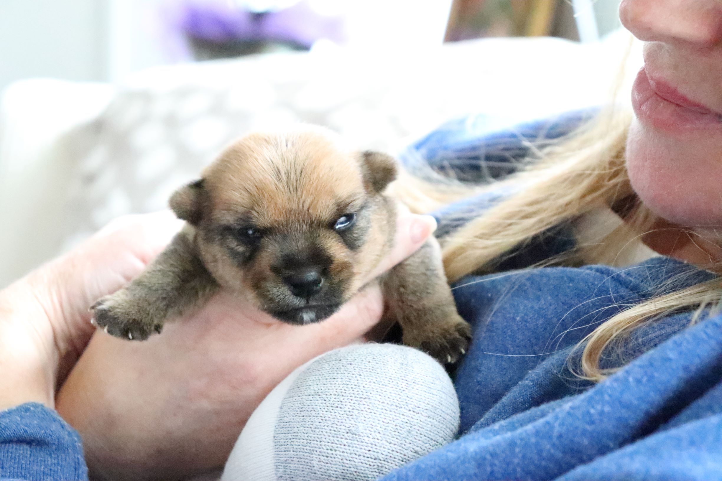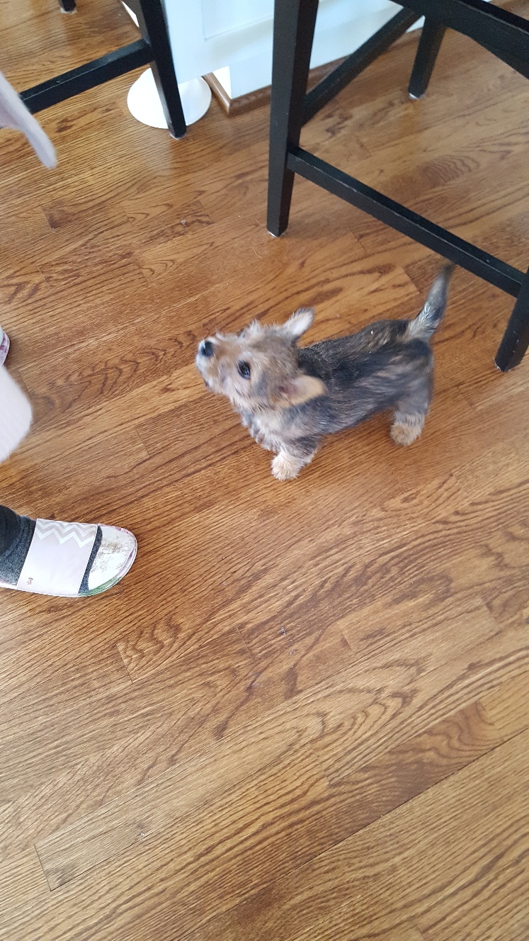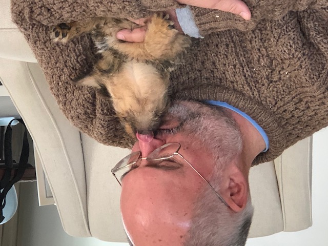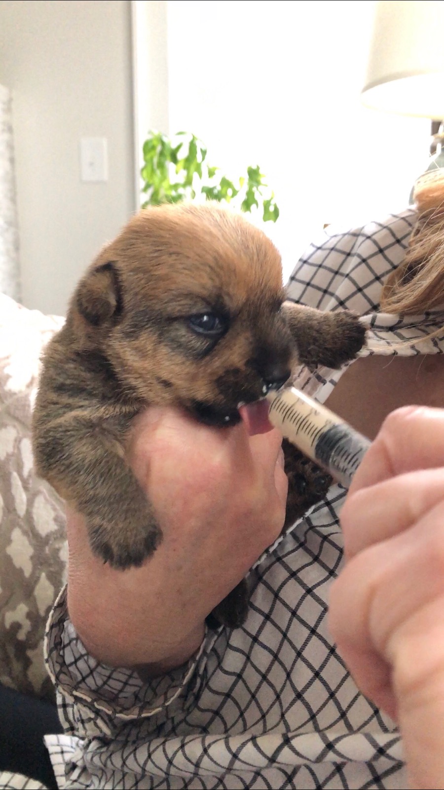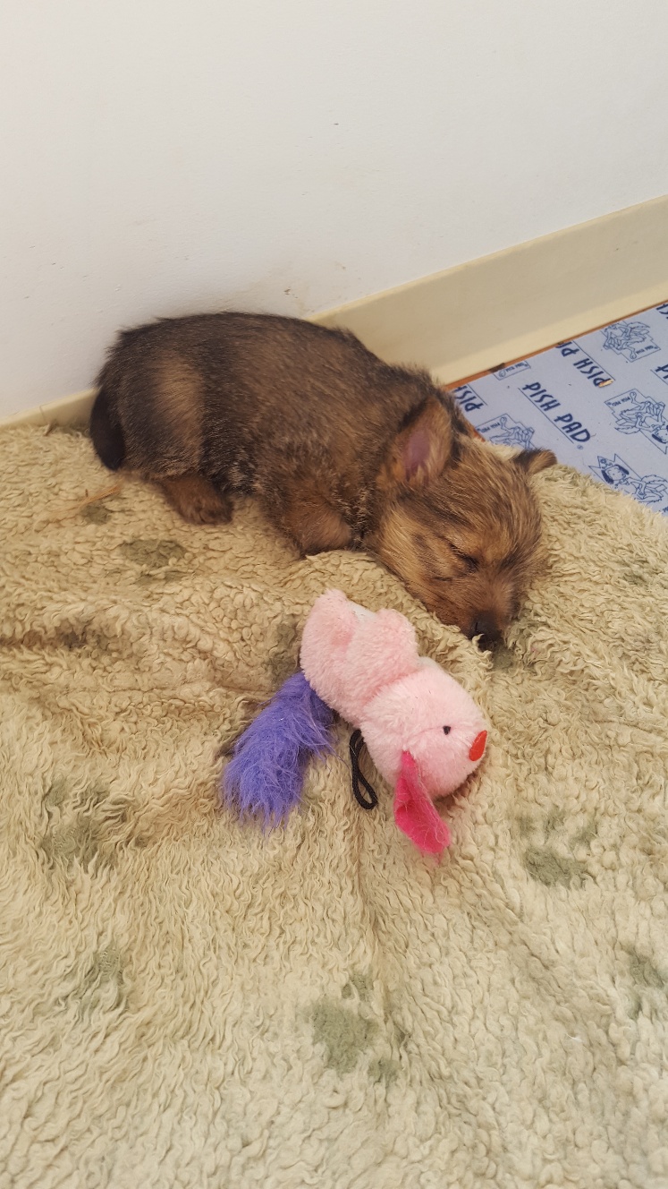I thought we would only be visiting for a few hours, but it turned out to be the entire day. The puppy got held, did not seemed stressed as evidenced by her yawn, and bottle fed.