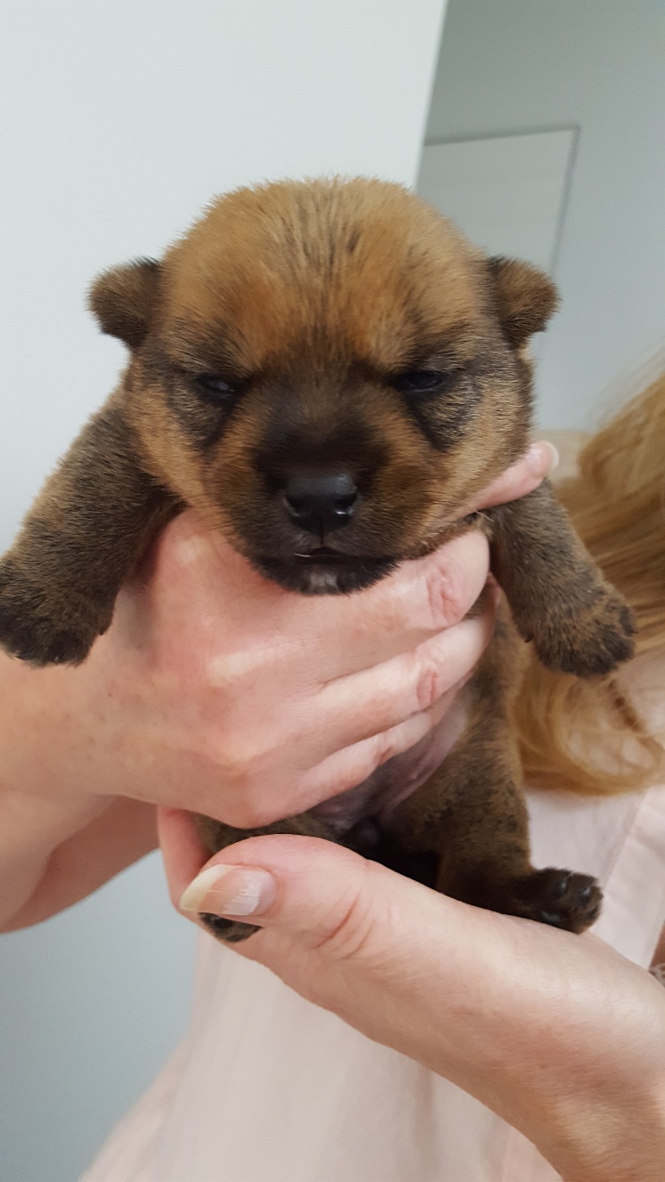 I have not seen the puppy open her eyes yet. That is the next major milestone and should happen any day now.