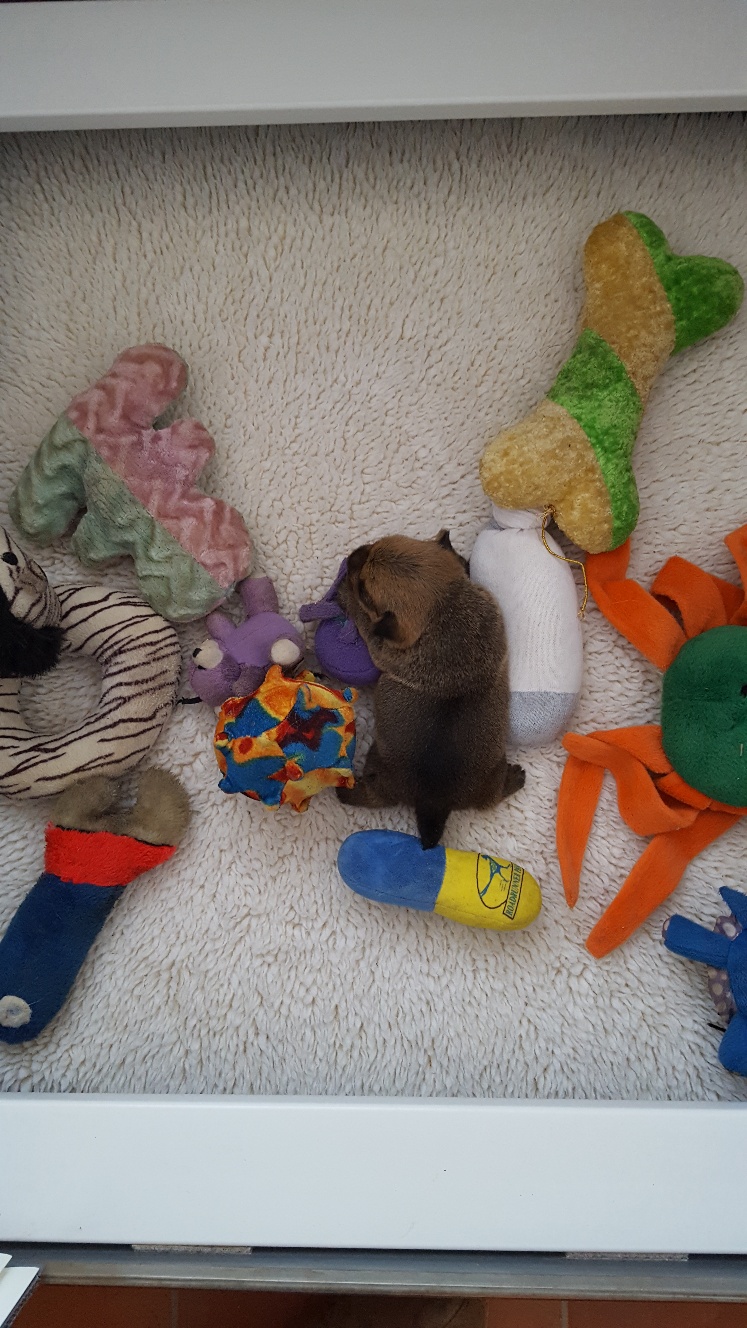 Here is Siri carrying around a little plush toy in her