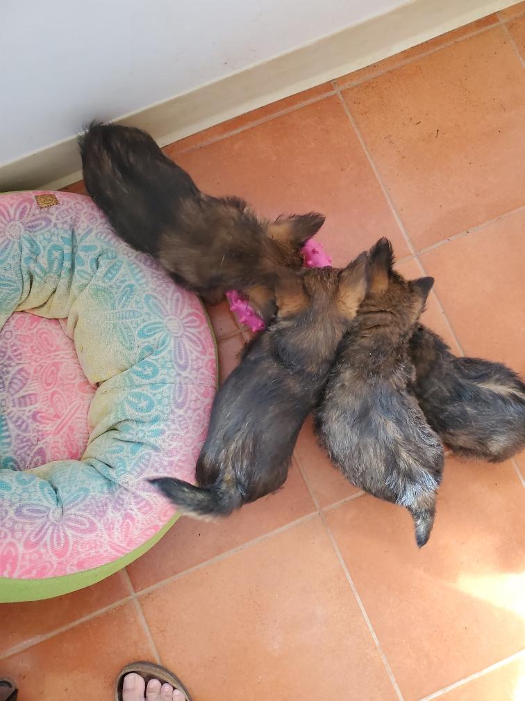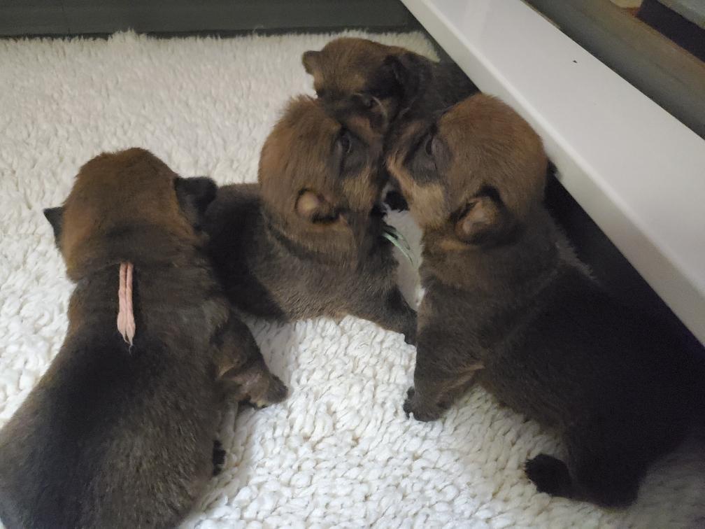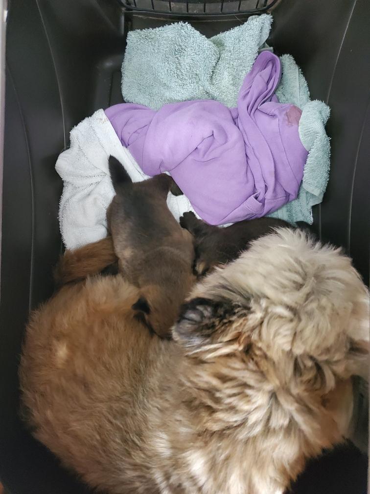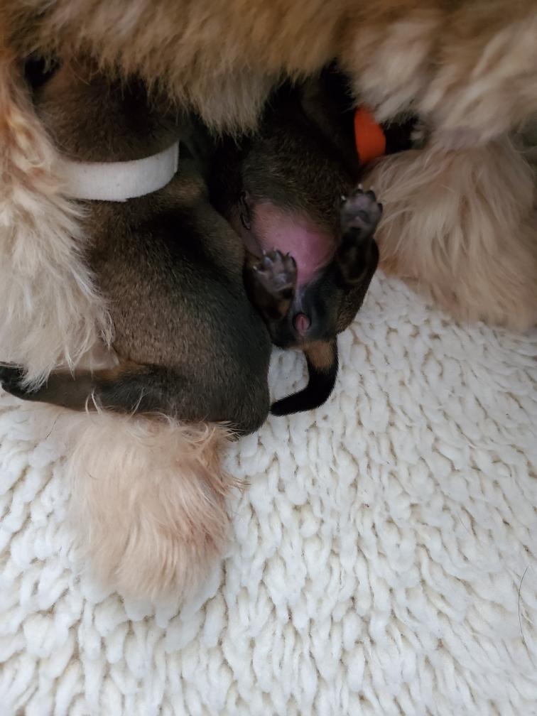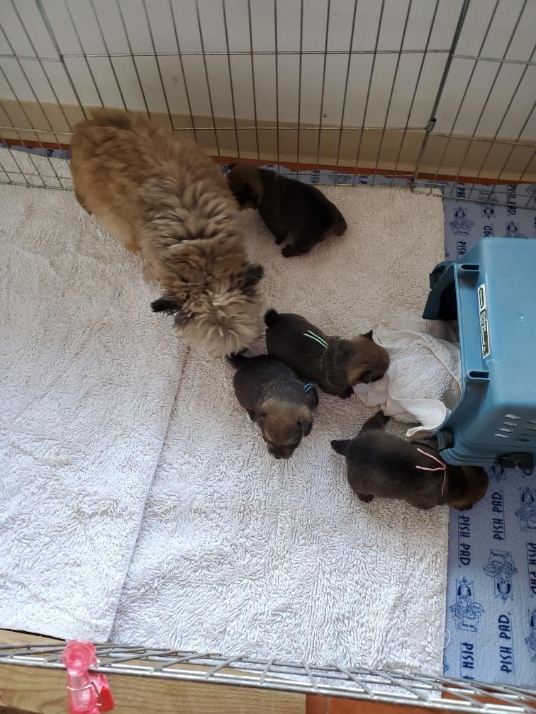 the puppies were born and as soon as Polly was away and