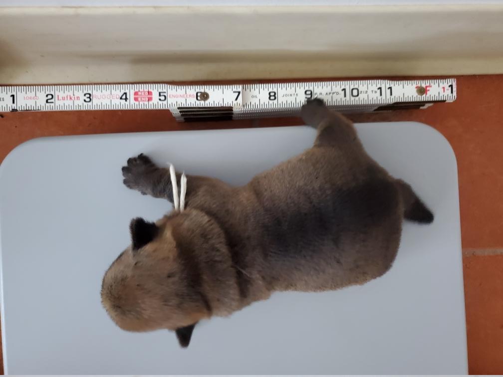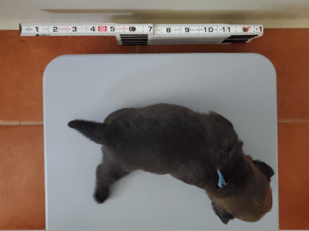 The puppies are not still when they are on the scale, but crawling around in circles looking for mommy.