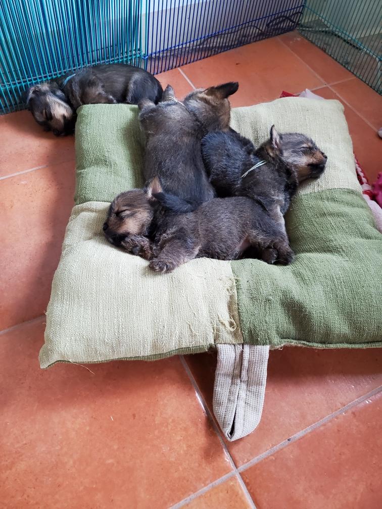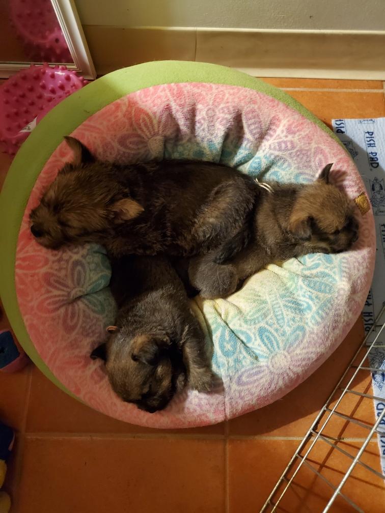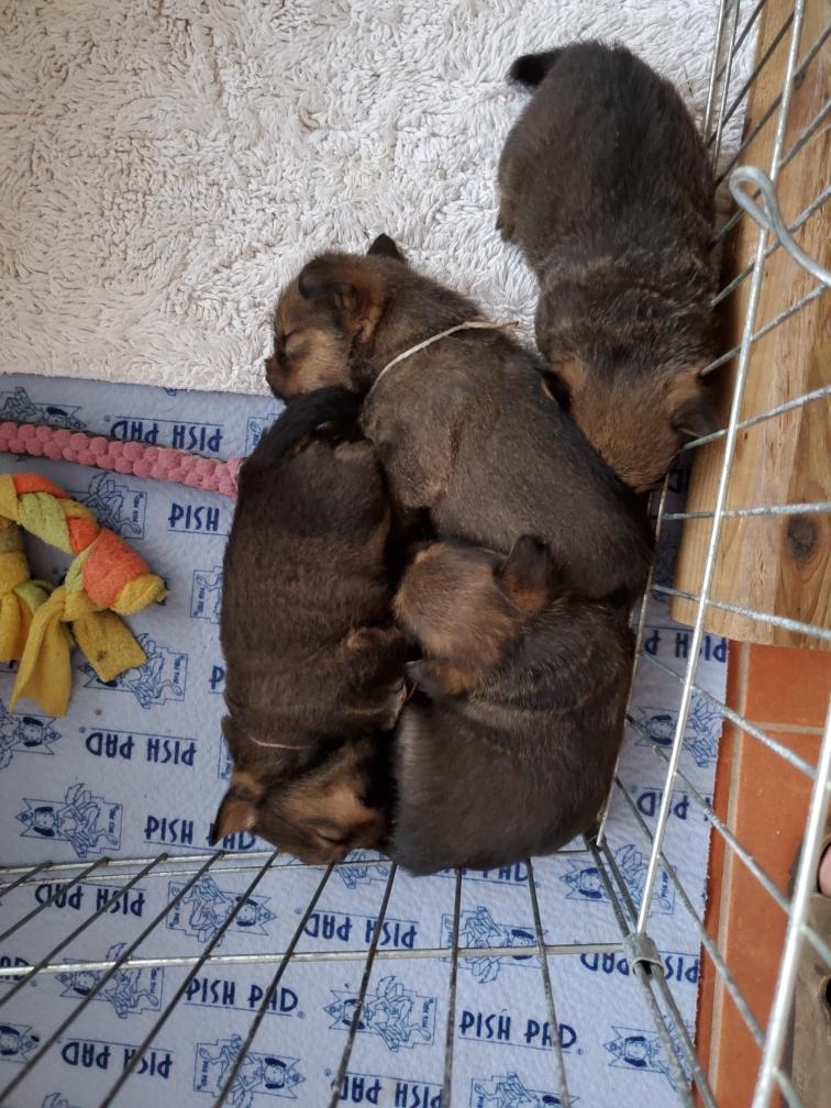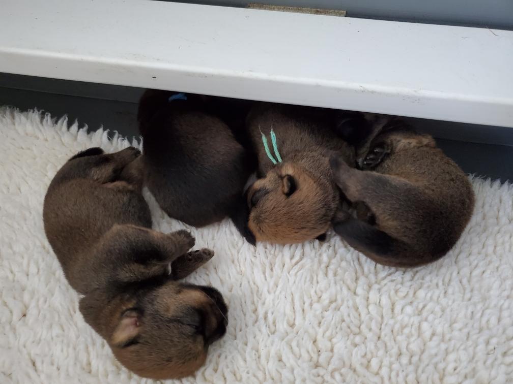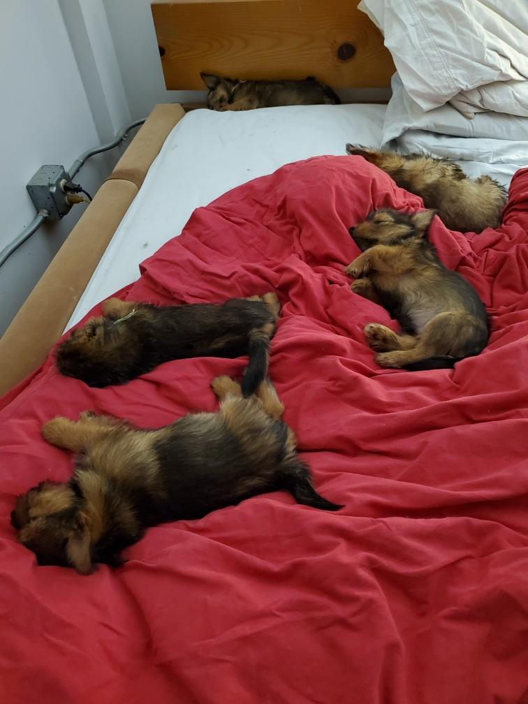 Puppies at bedtime. A few minutes later they had crawled into yet another combination. Until mommy came back and it was time to nurse and sleep again.
