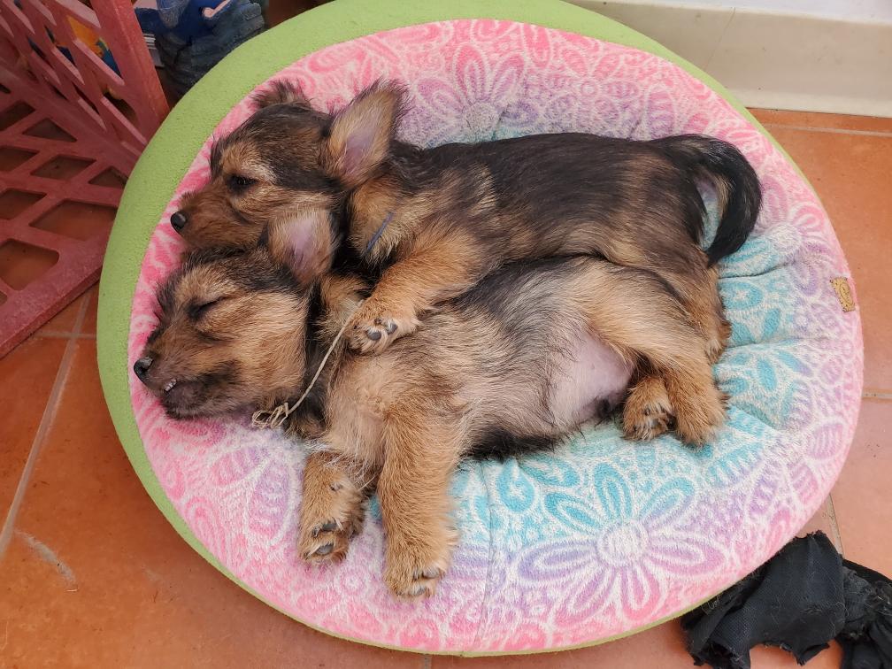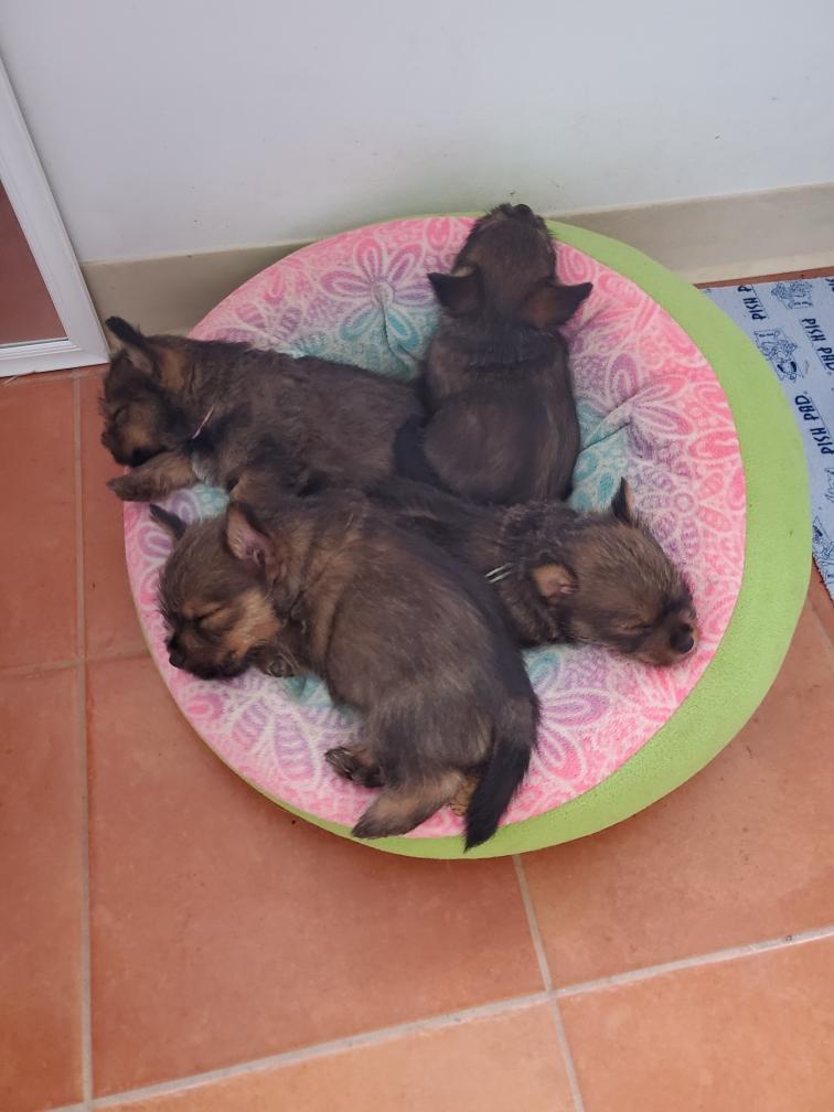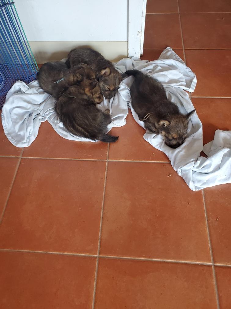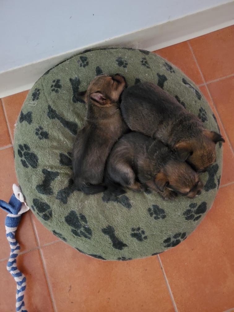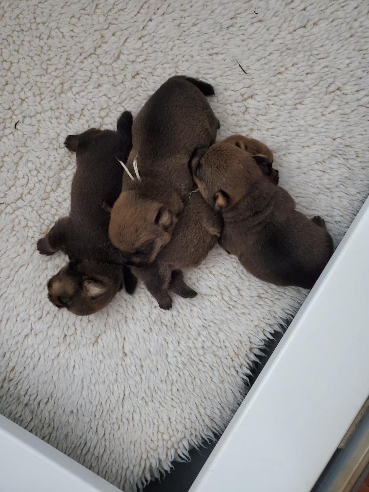 Puppies at bedtime. A few minutes later they had crawled into yet another combination. Until mommy came back and it was time to nurse and sleep again.