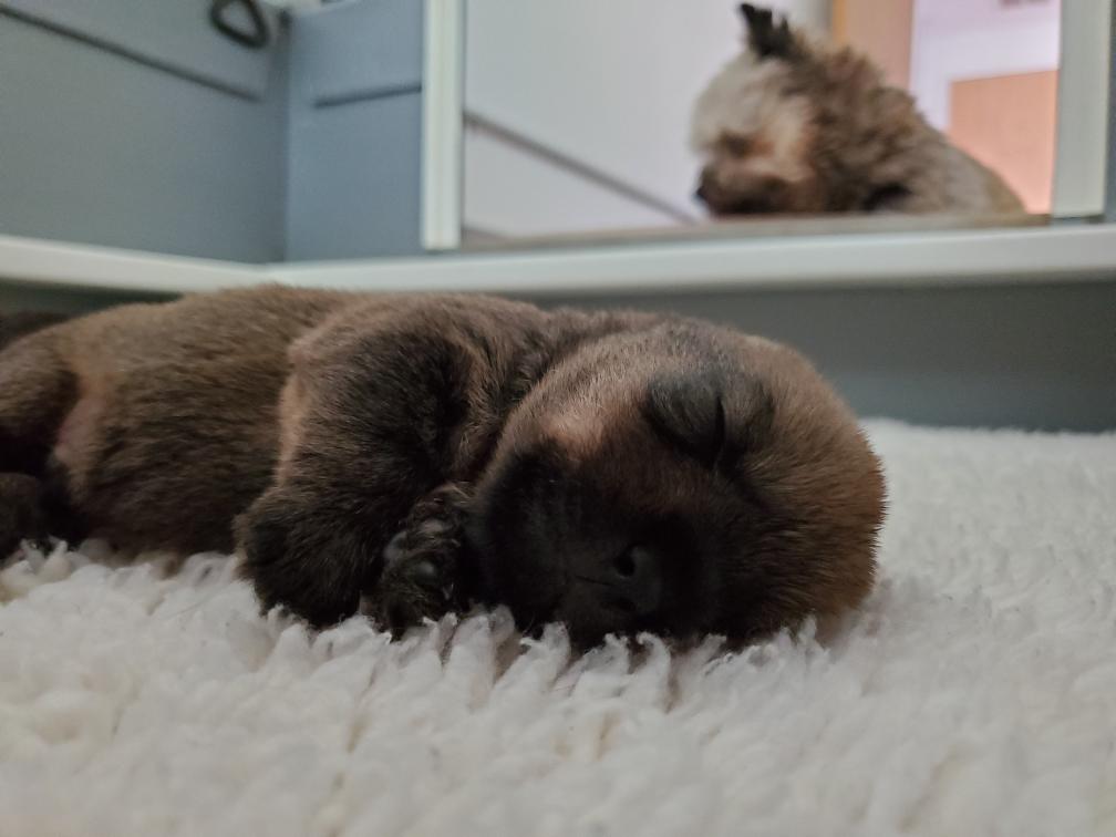 The puppies are now being active for a few minutes before they fall asleep.