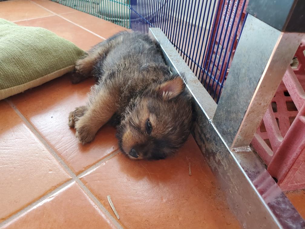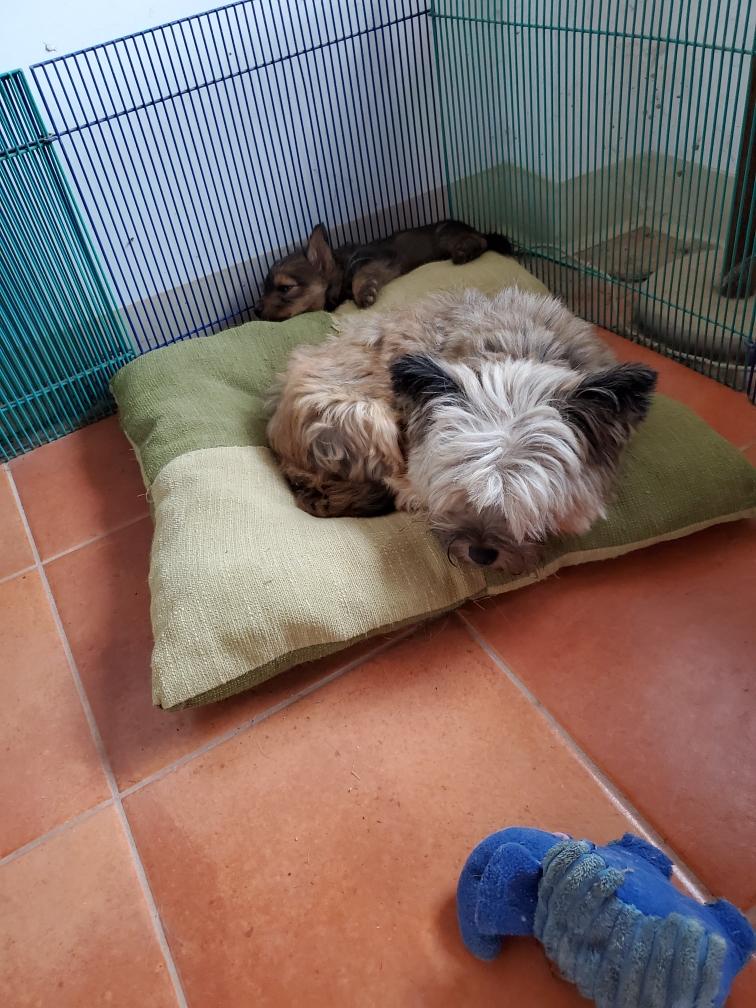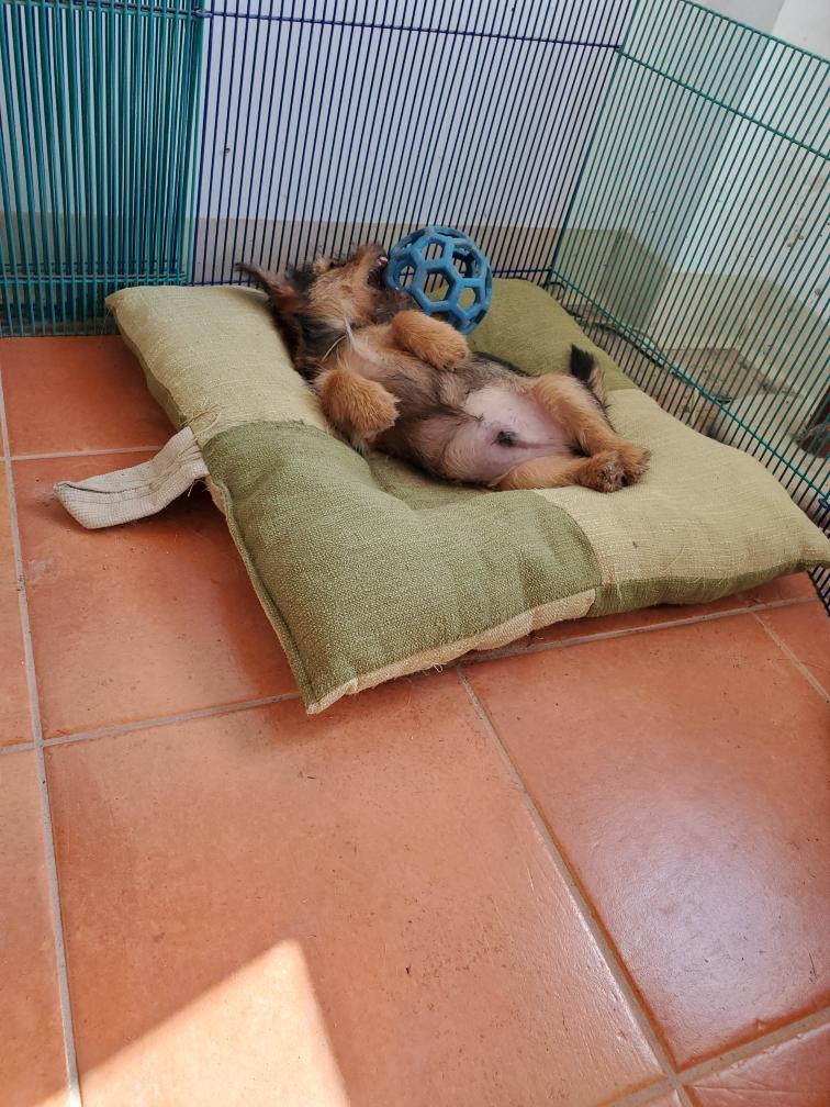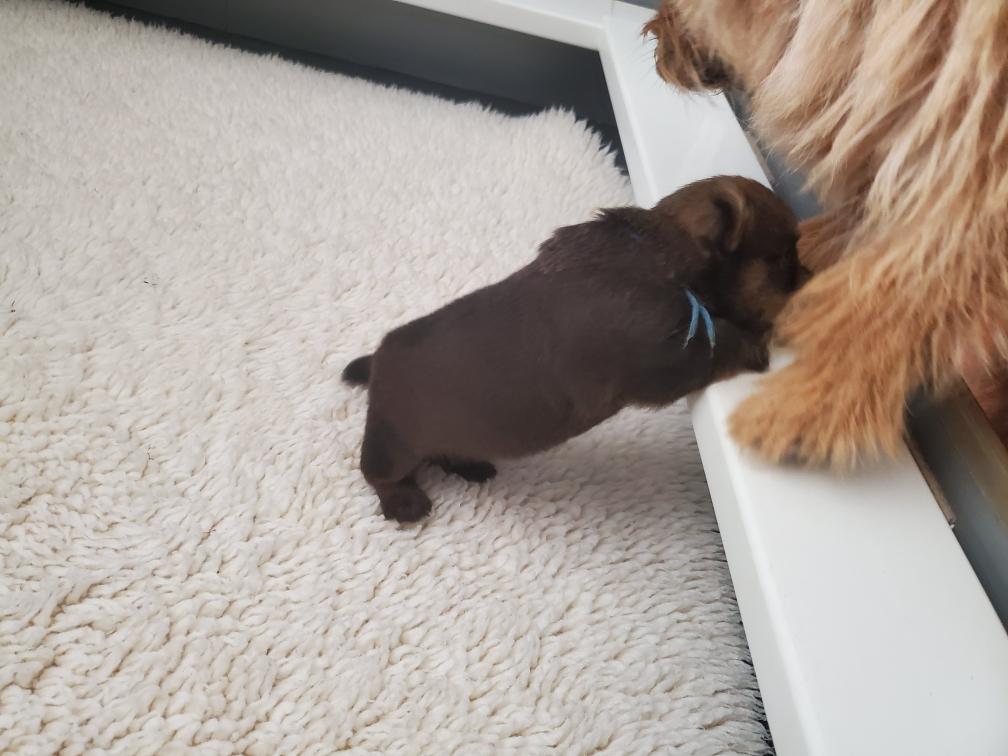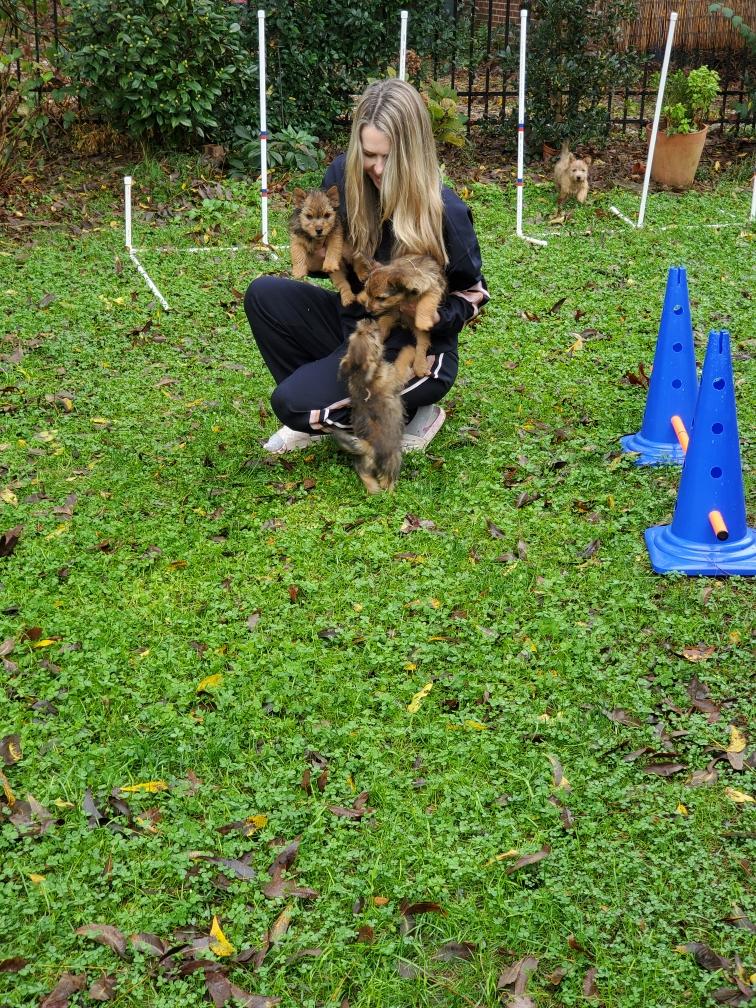 Exploring the new environment is tiring and the puppies quickly feel asleep. Fortunately Gwynie had lots of energy to entertain us.