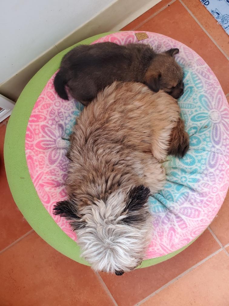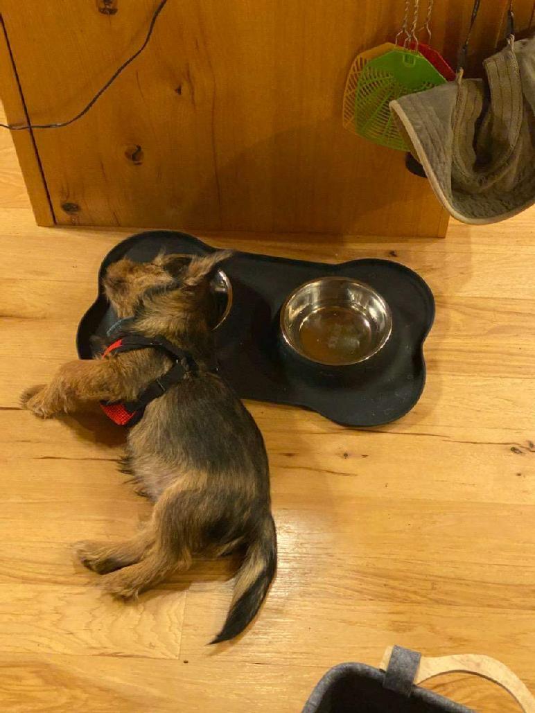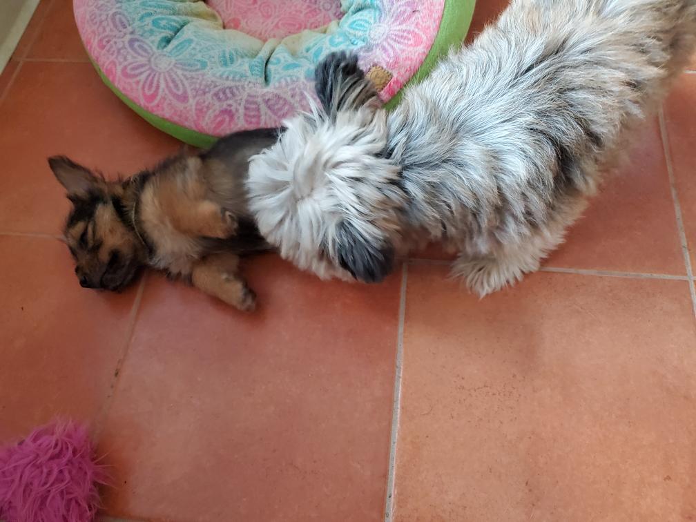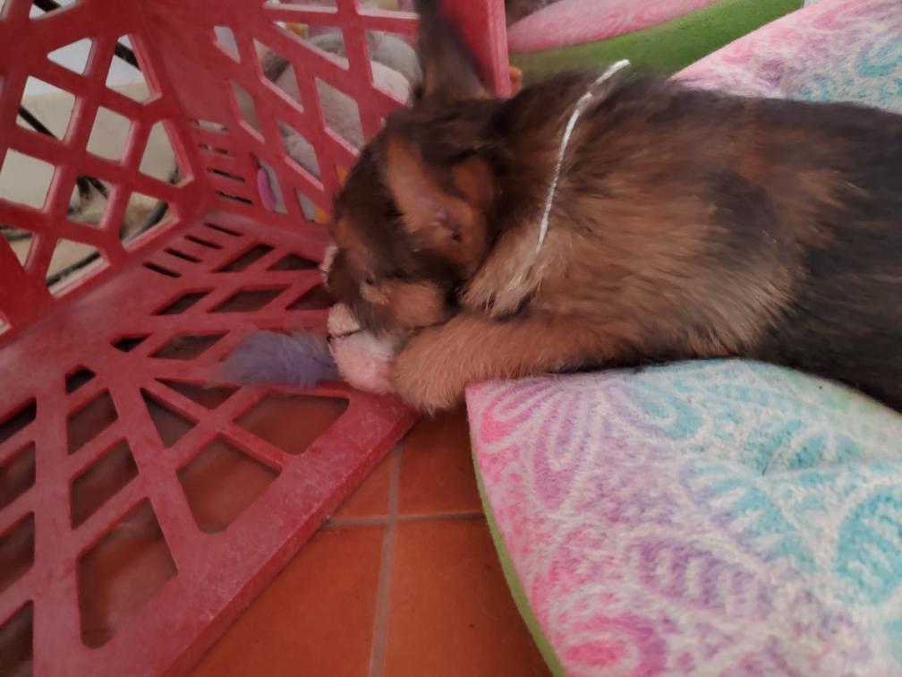 Exploring the new environment is tiring and the puppies quickly feel asleep. Fortunately Gwynie had lots of energy to entertain us.