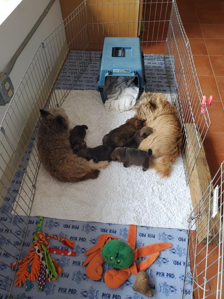 Now that the puppies are one week old, I start to relax about any of the puppies having puppy lung development disease. Babies (and puppies) lungs continue to develop after birth. If a puppy has puppy lung development disease, the puppy initially seem normal but then starts to have difficulty breathing, and goes down hill quickly and dies. It is horrible to watch and no treatment is available. I have had two puppies with puppy lung development disease, and both their bodies were sent off for research. It is thought that puppy lung development disease may be related to alveolar capillary dysplasia in humans. The scientists are excited about possibly finding an animal model for this rare fatal disorder in human infants. Genetic studies are underway.