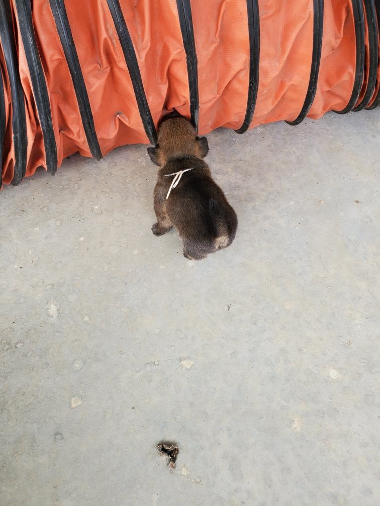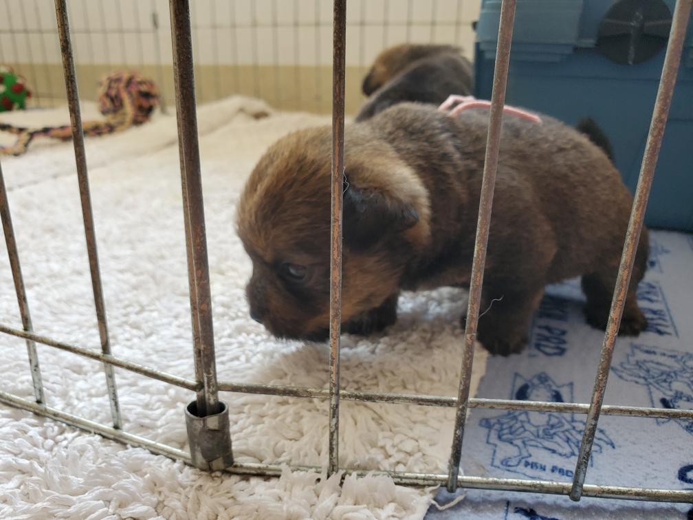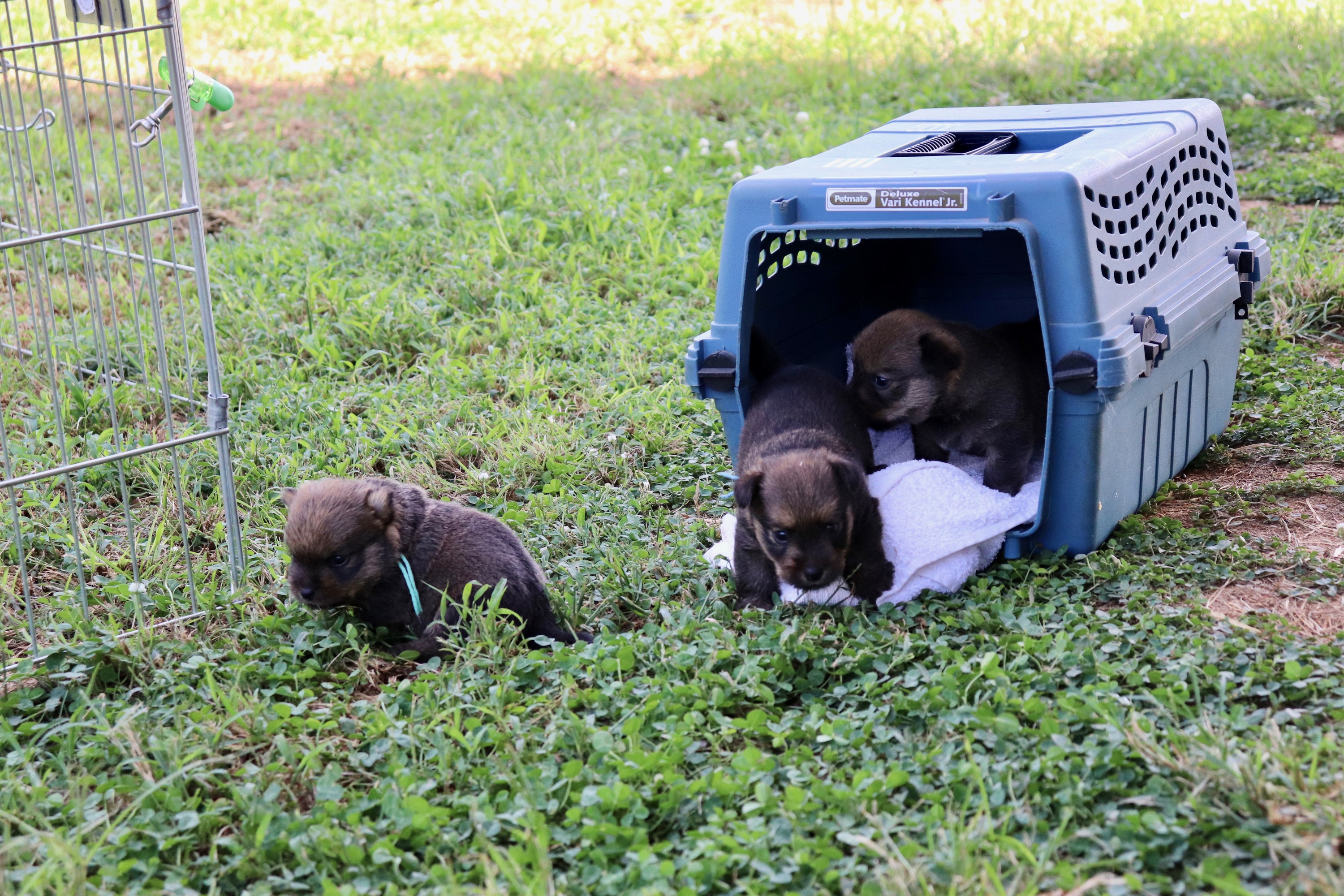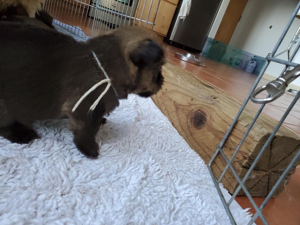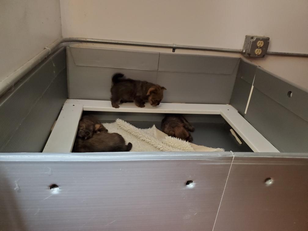 The puppies are much more active. Mortimer even began planning his escape from the whelping box.
