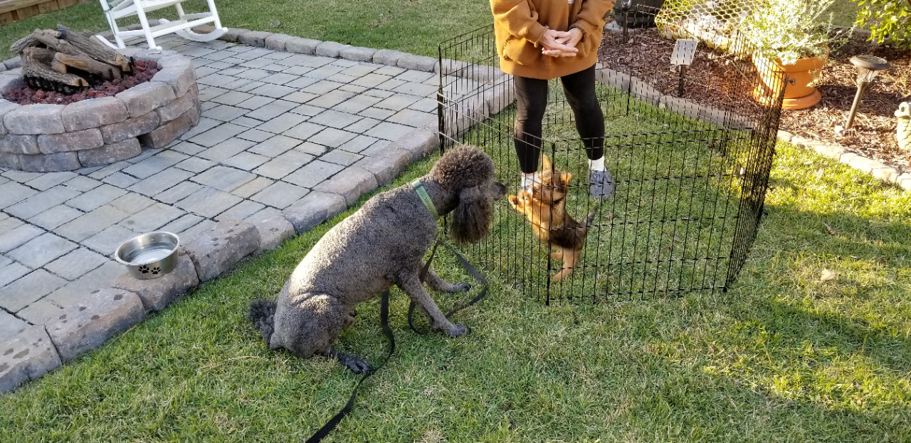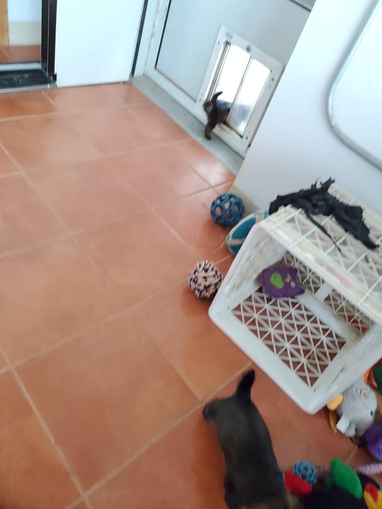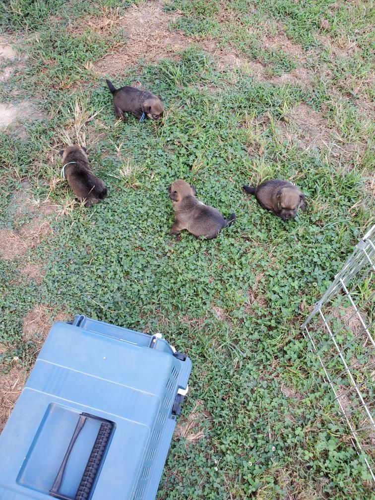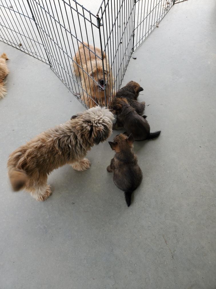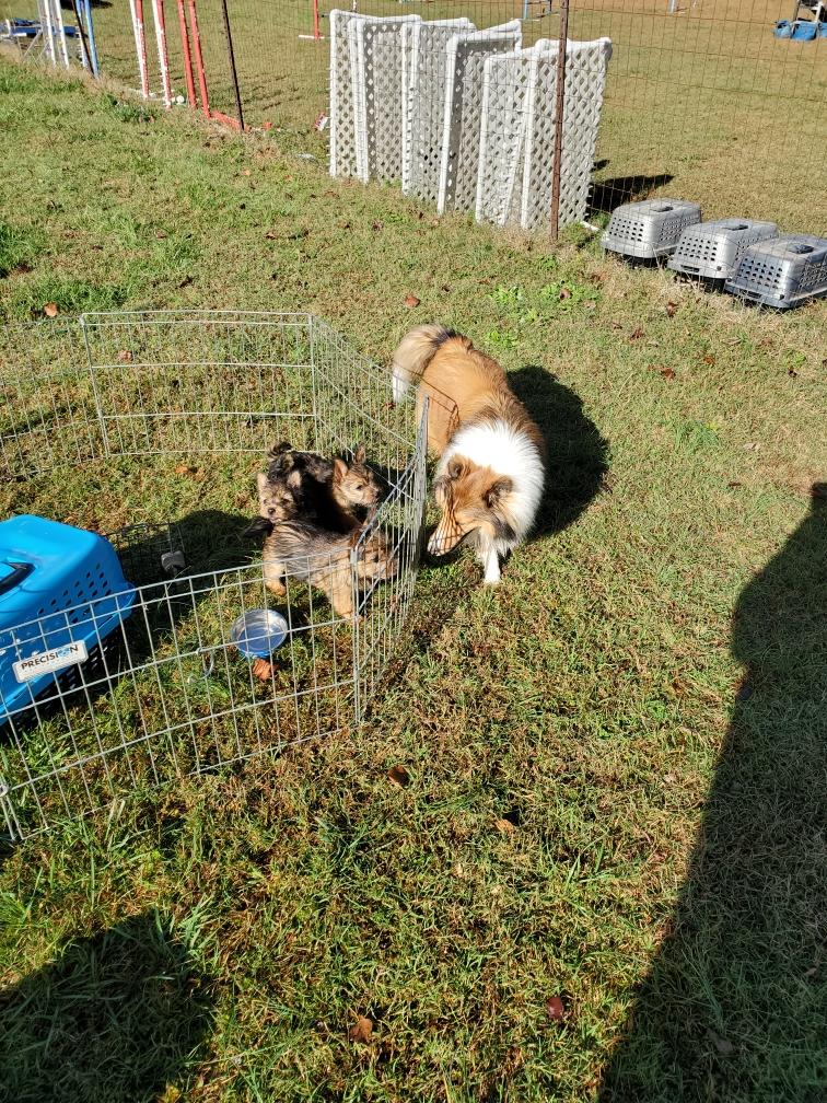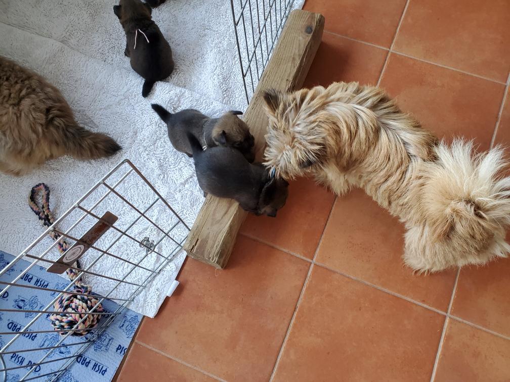 Polly is spending much more time away from the puppies now.
