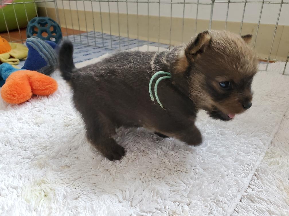 Blue trying to walk. All the puppies are trying to walk; coordination of four legs just needs to be worked out.