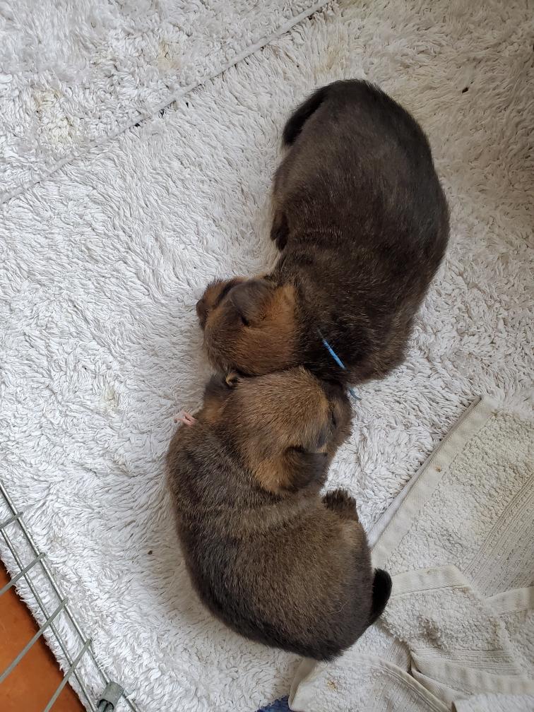 Puppies nursing. Blue has already had enough and fallen asleep.