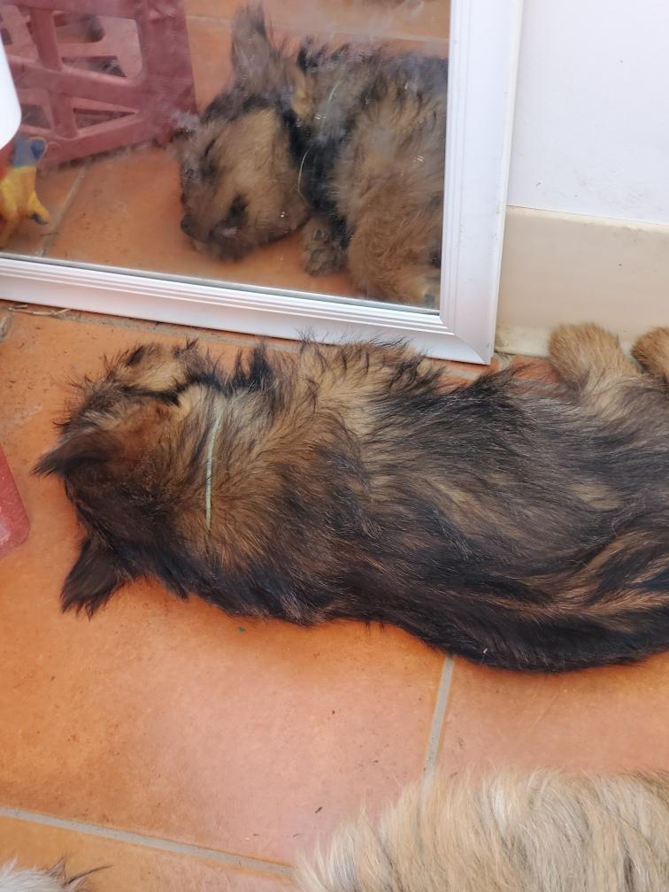 the fur of one of my older dogs who is partially under