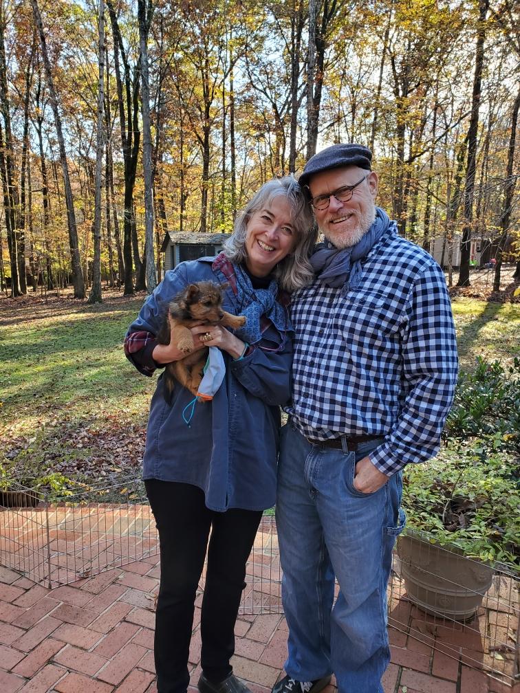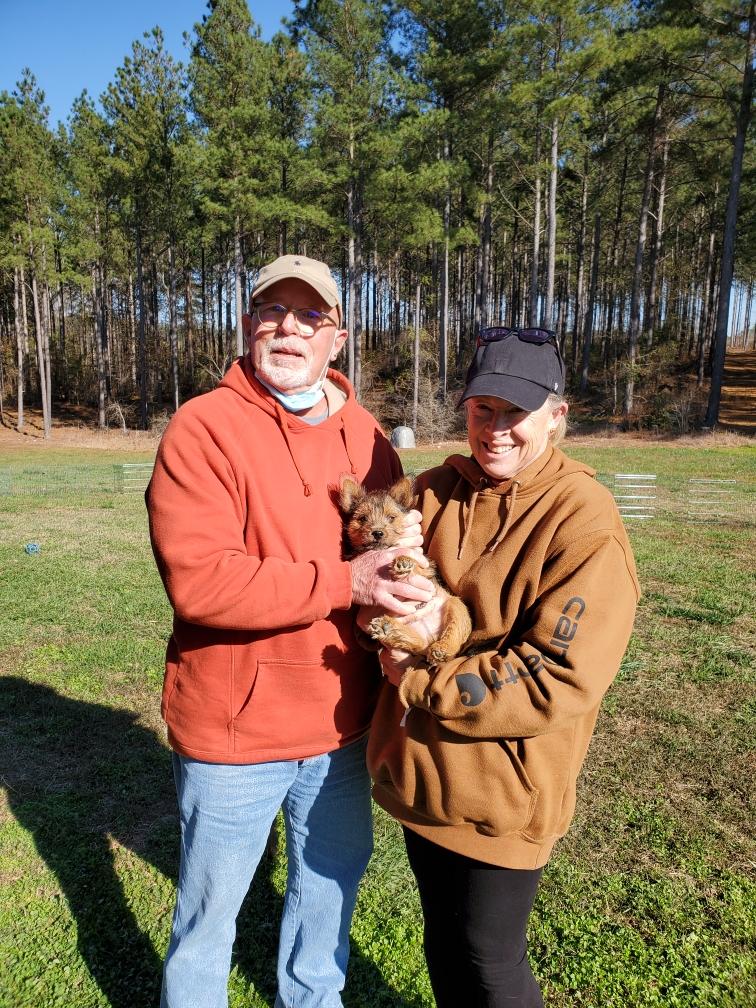 her new owners, Terry and Ian.