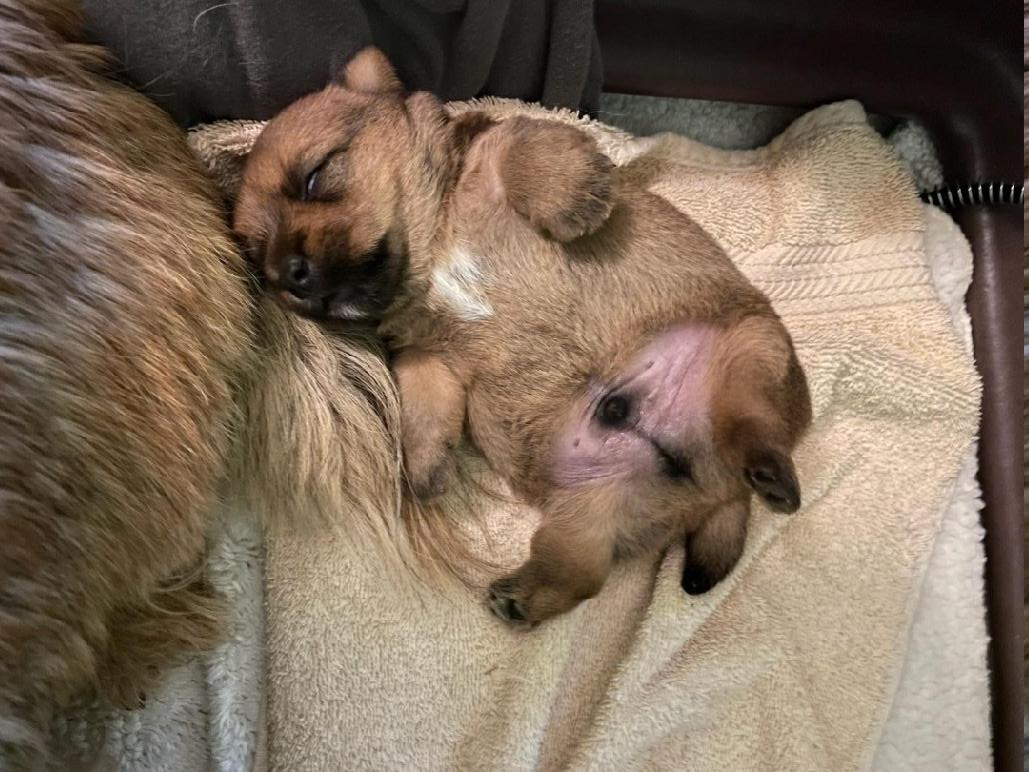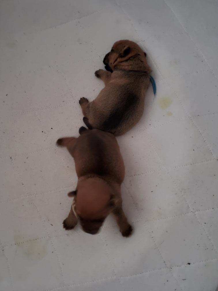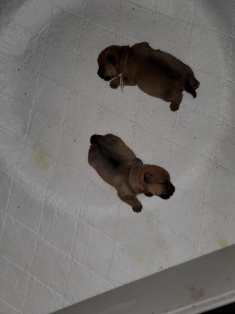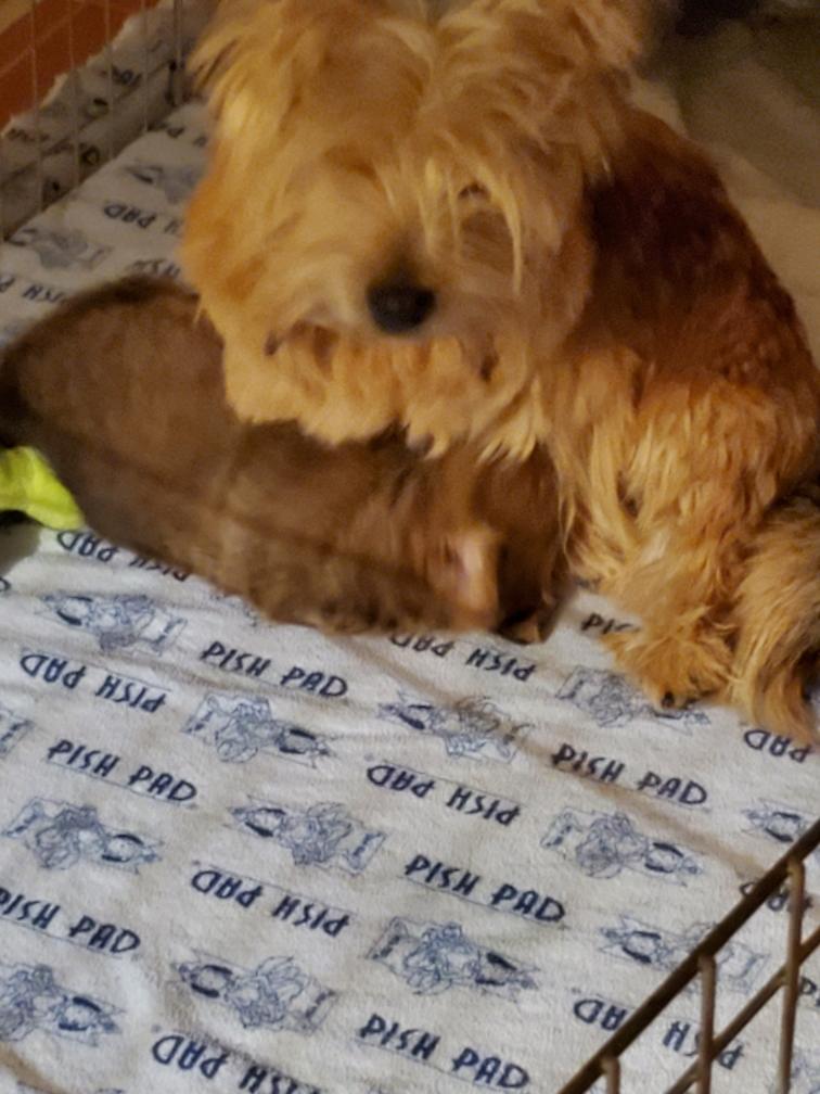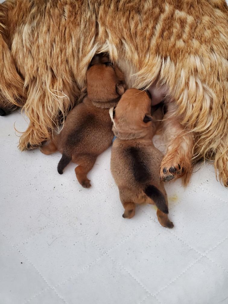 Mostly Siri has the puppies tucked underneath. I only getting a good look at the puppies when Siri goes outside to potty. The puppies are starting to loose that wrinkly look that newborns have.