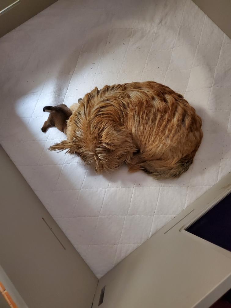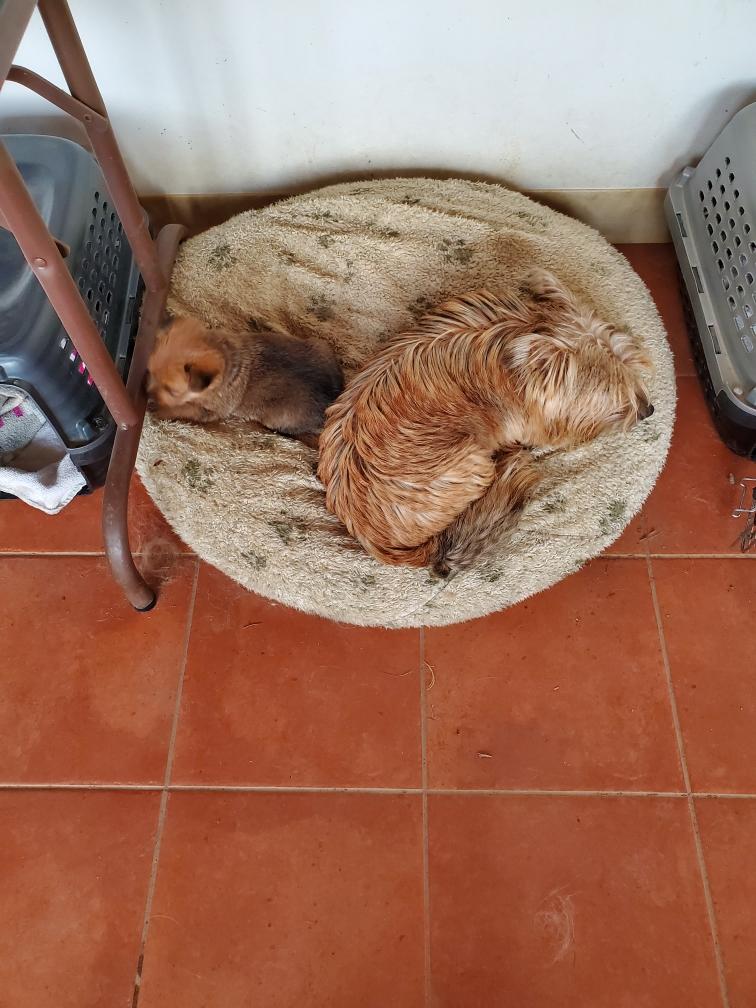 Morning picture. A moment after I took this picture, mommy Siri came and laid with Blue.