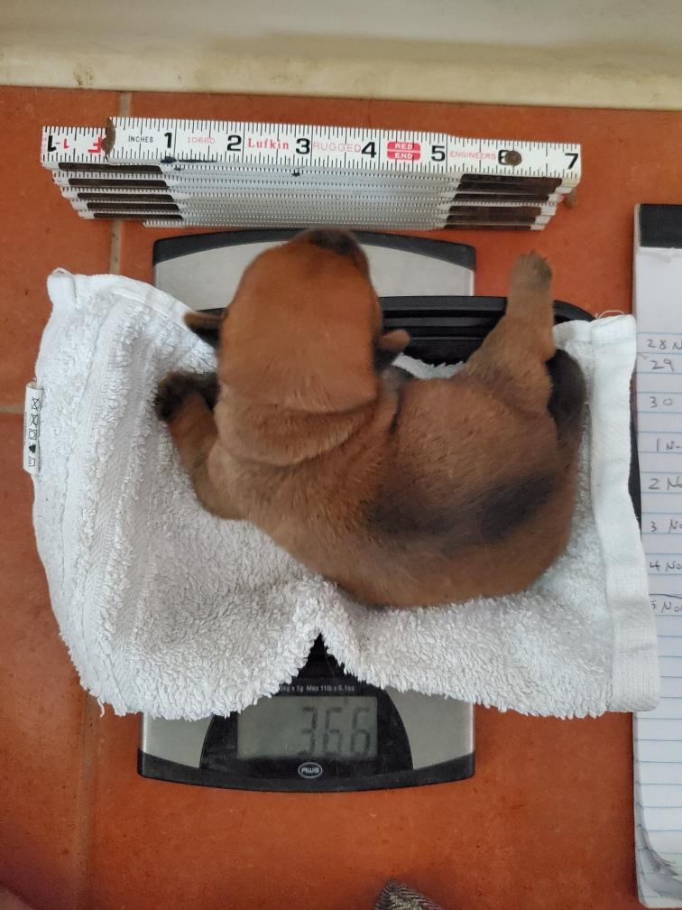 The puppies are one week old today and weigh as follows: