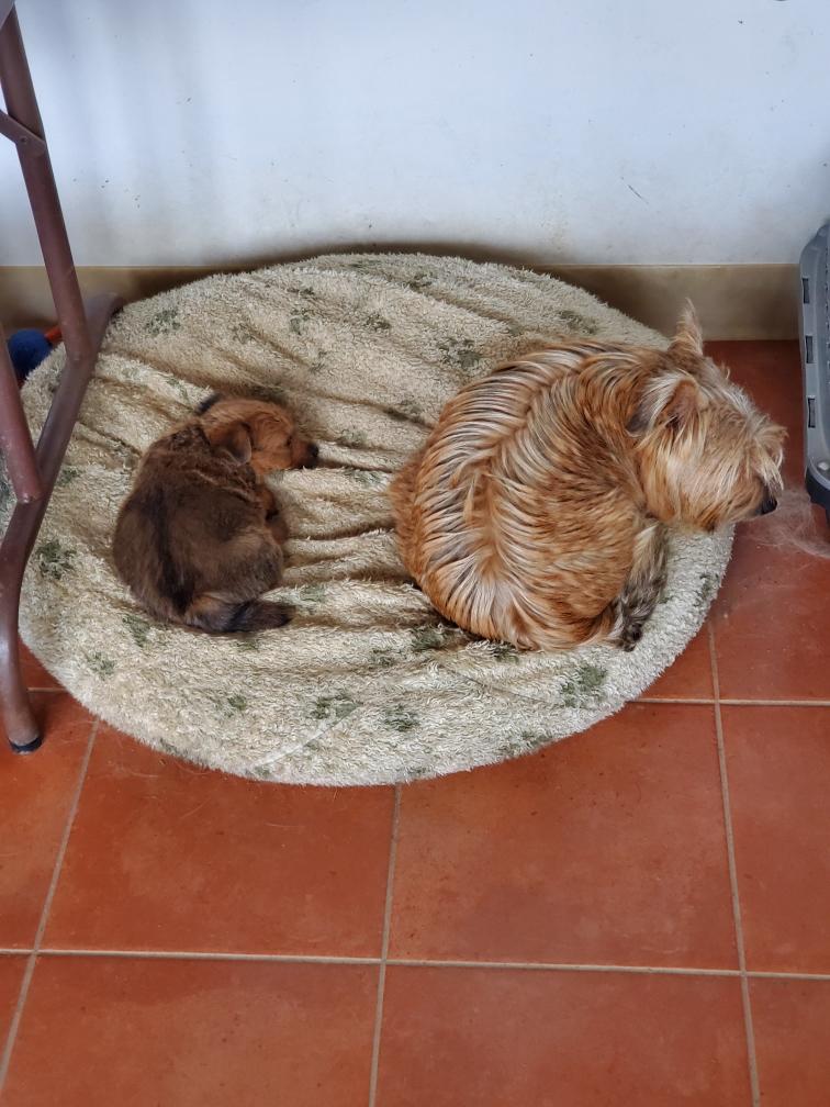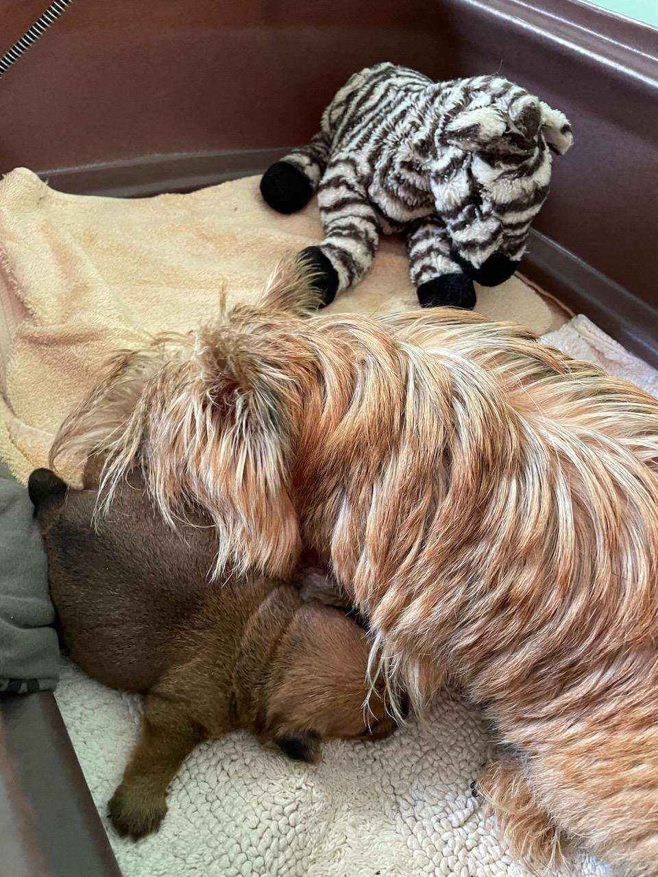 White using Blue as a pillow. I took White off Blue as I did not want Blue to have any difficulty breathing.