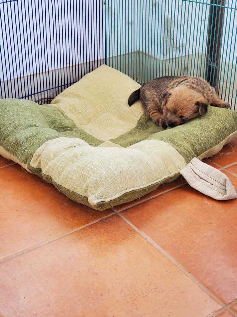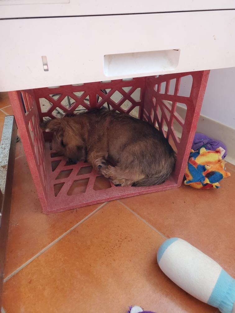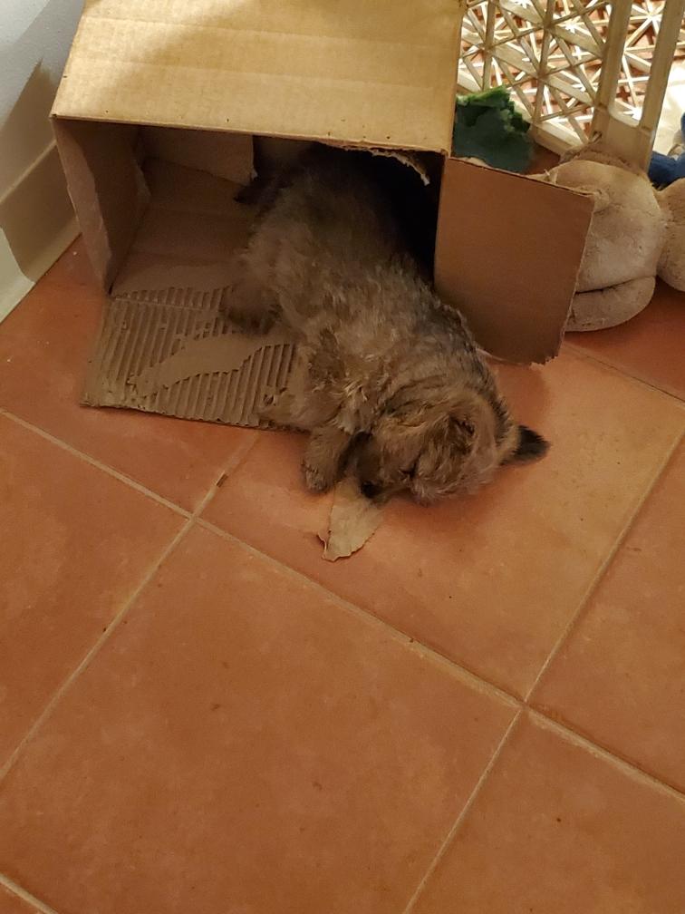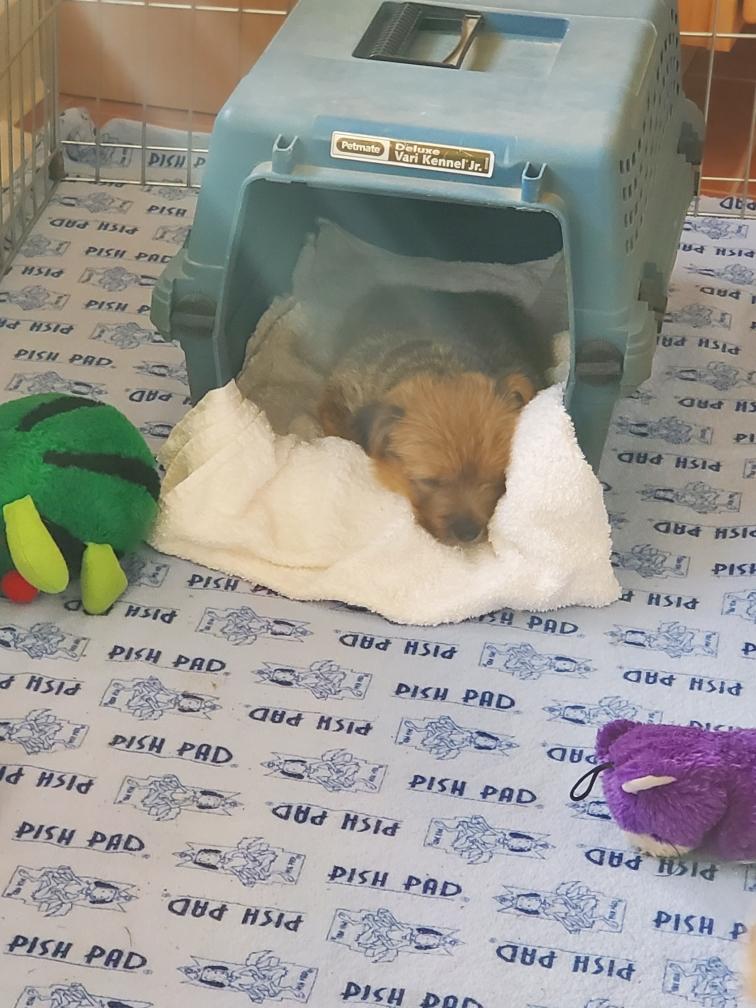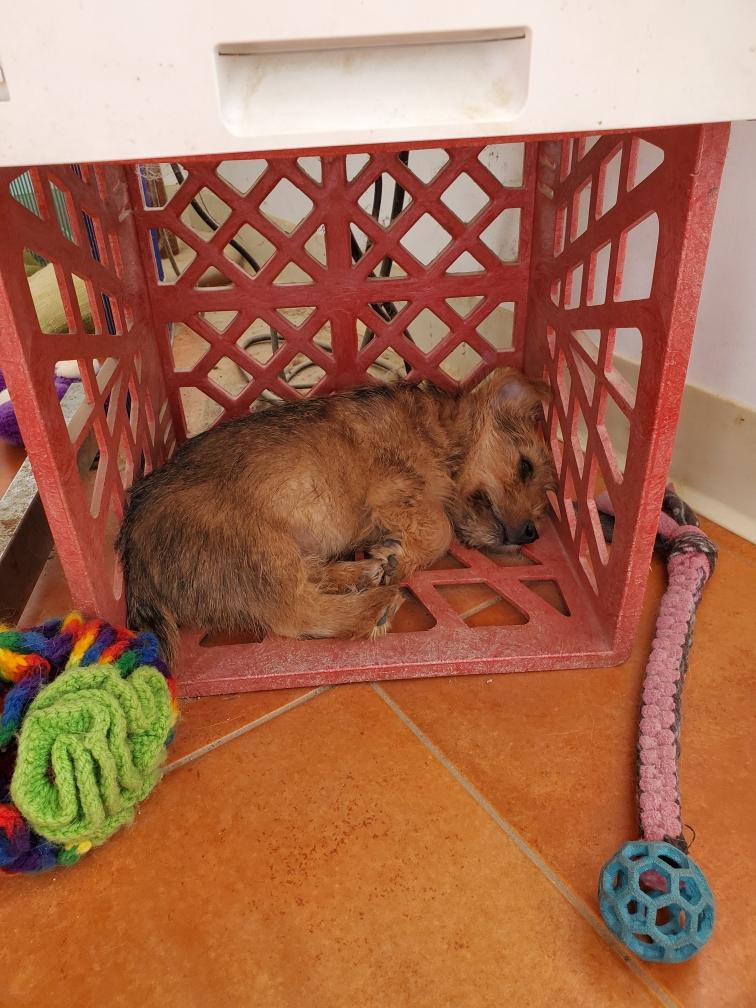 Chang napping in one of my big dog crates. I leave the crates open and my adult dogs often go inside to take a nap.