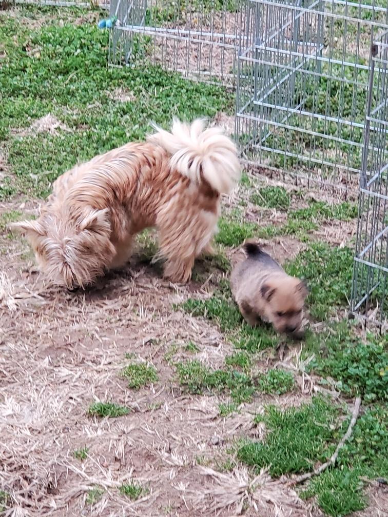 For some reason, puppies always like to circumnavigate the outside of the playpen, going between the x-pen and the wall.